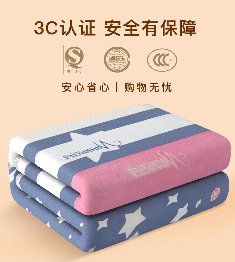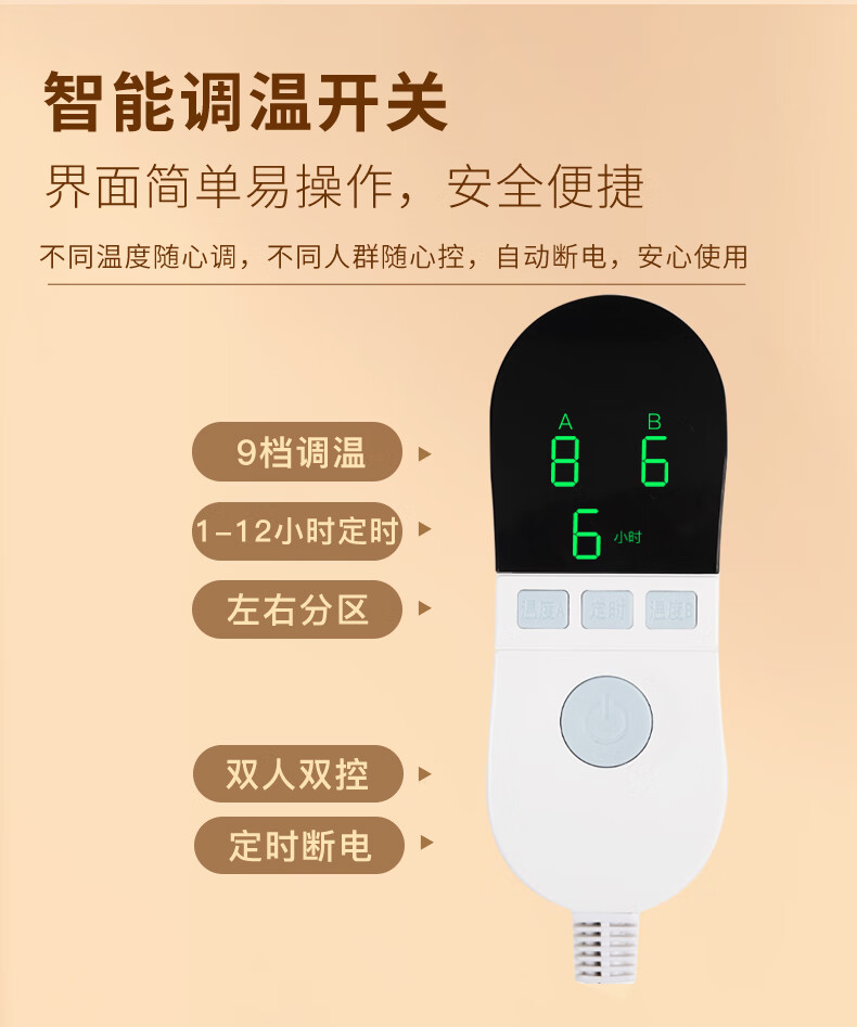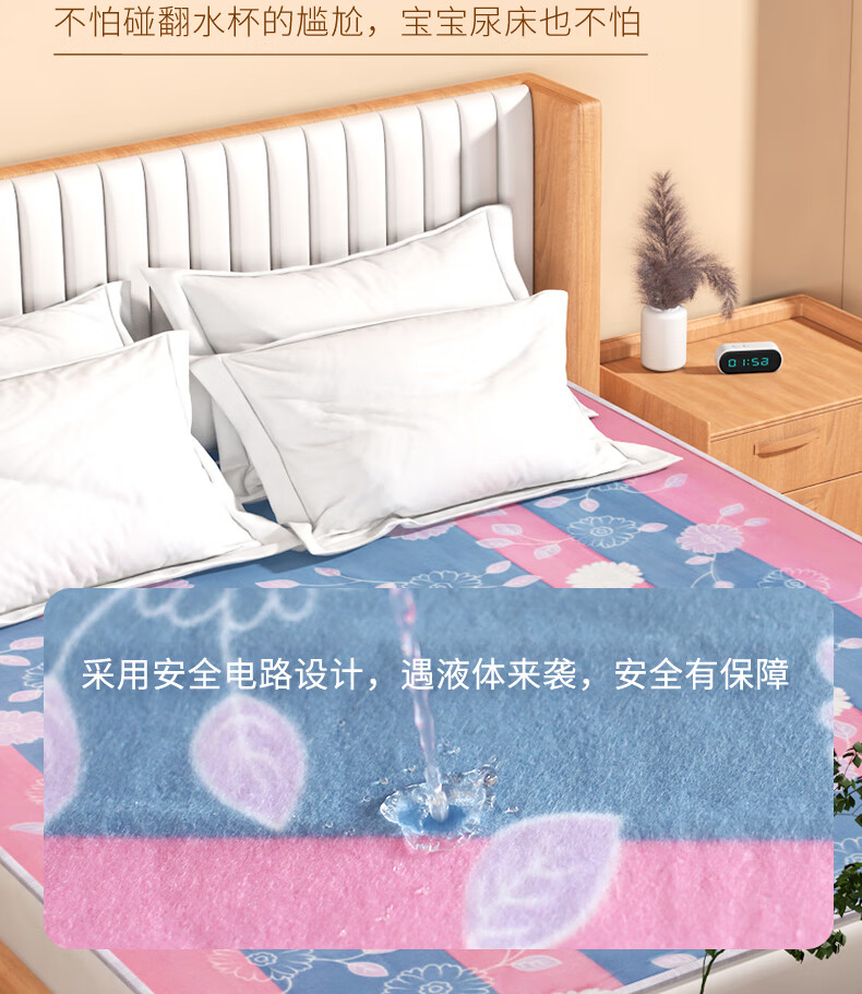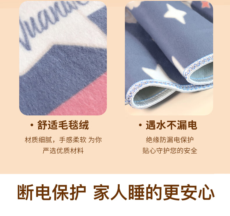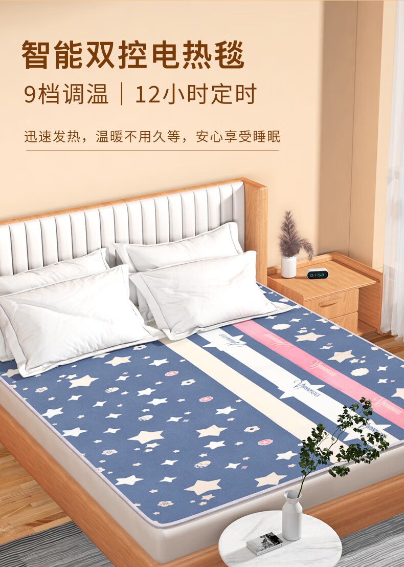 暧倍尔 电热毯双人双控电褥子智能定时180*150cm加厚家用(花色随机)