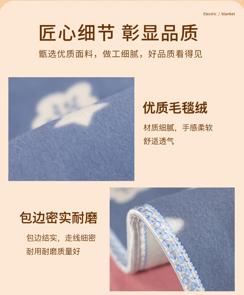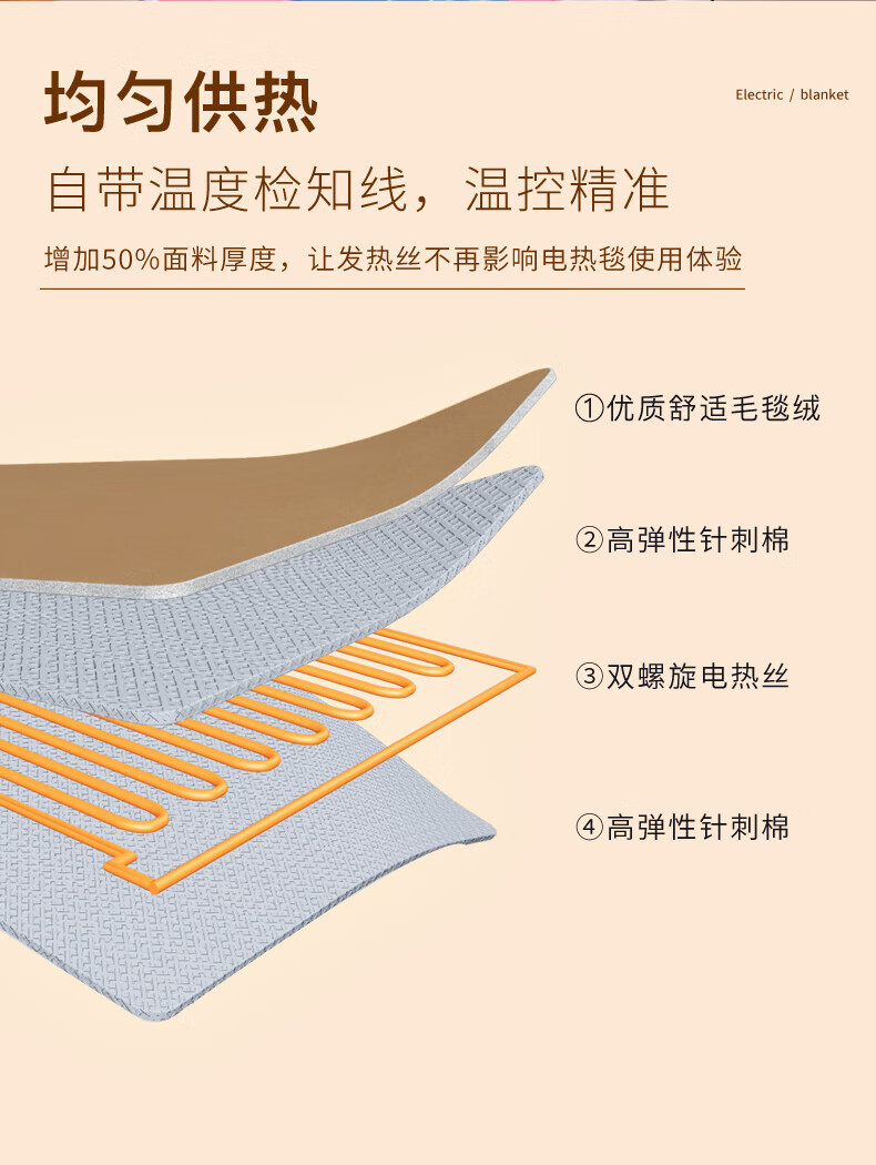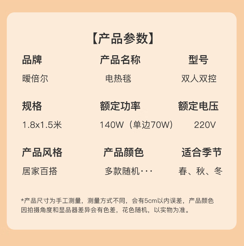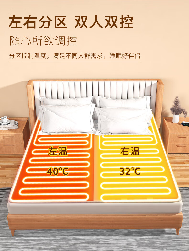暧倍尔 电热毯双人双控电褥子智能定时180*150cm加厚家用(花色随机)