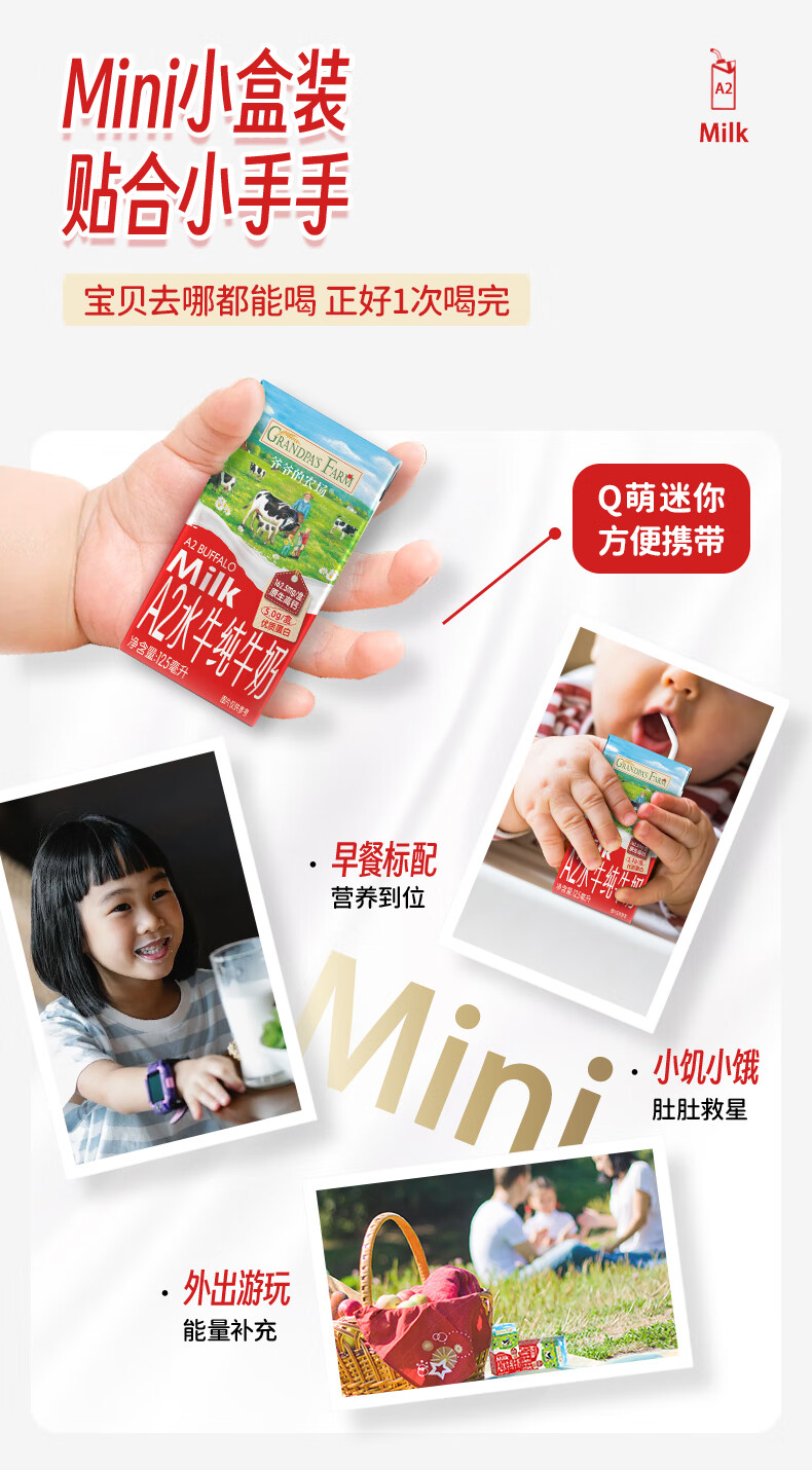 爷爷的农场儿童高钙水牛奶5.0g/盒 优质蛋白童宝宝营养饮品早餐奶 2箱125ml*18盒