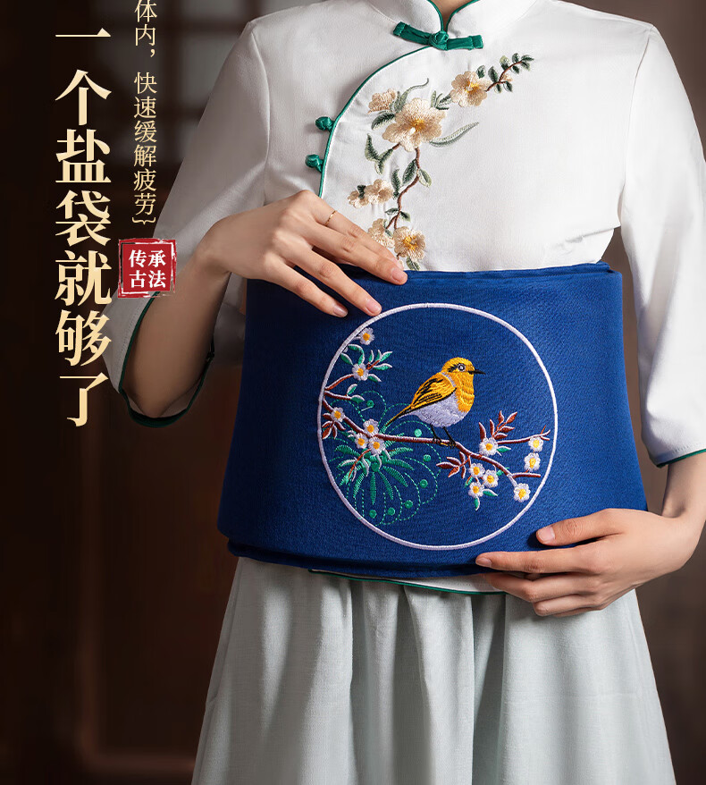 海盐热敷包盐袋电加热艾草袋热敷袋艾草护腰护膝肩颈椎全身 【常规款蓝色】+高低档+双层海盐+2艾草包
