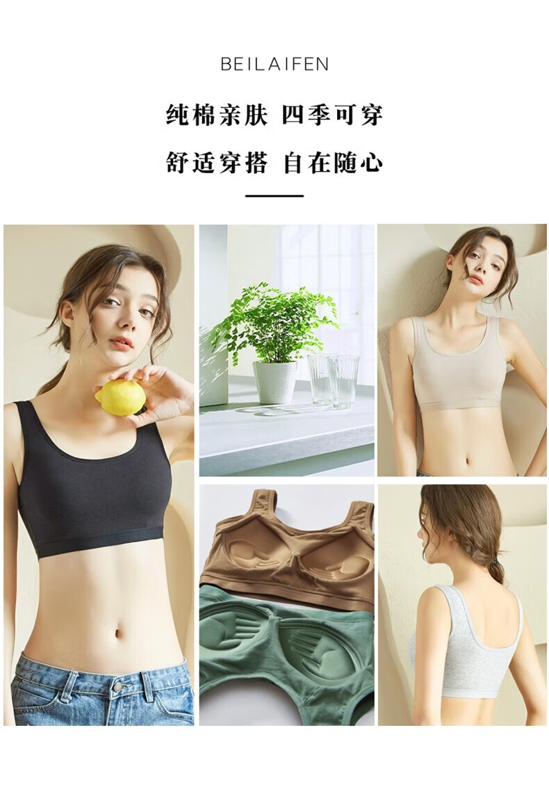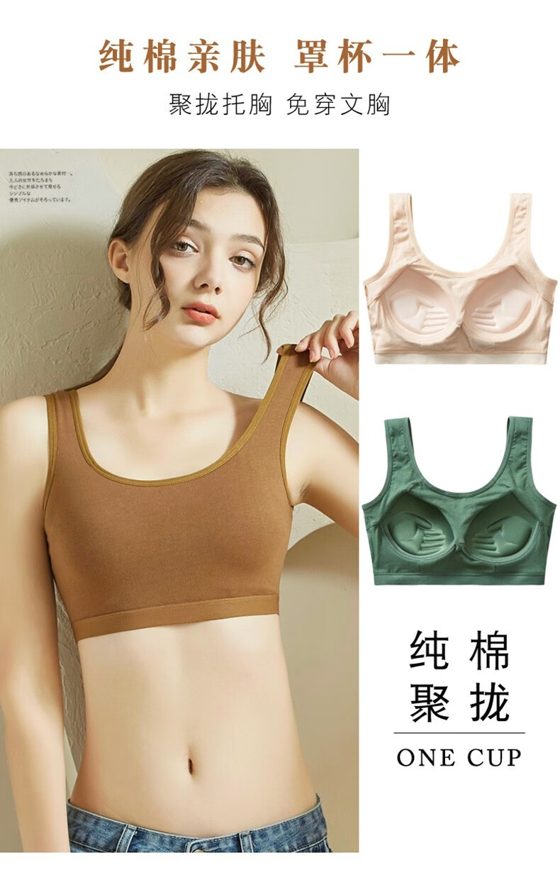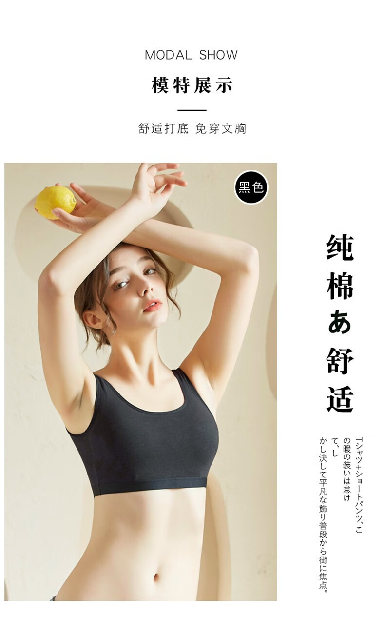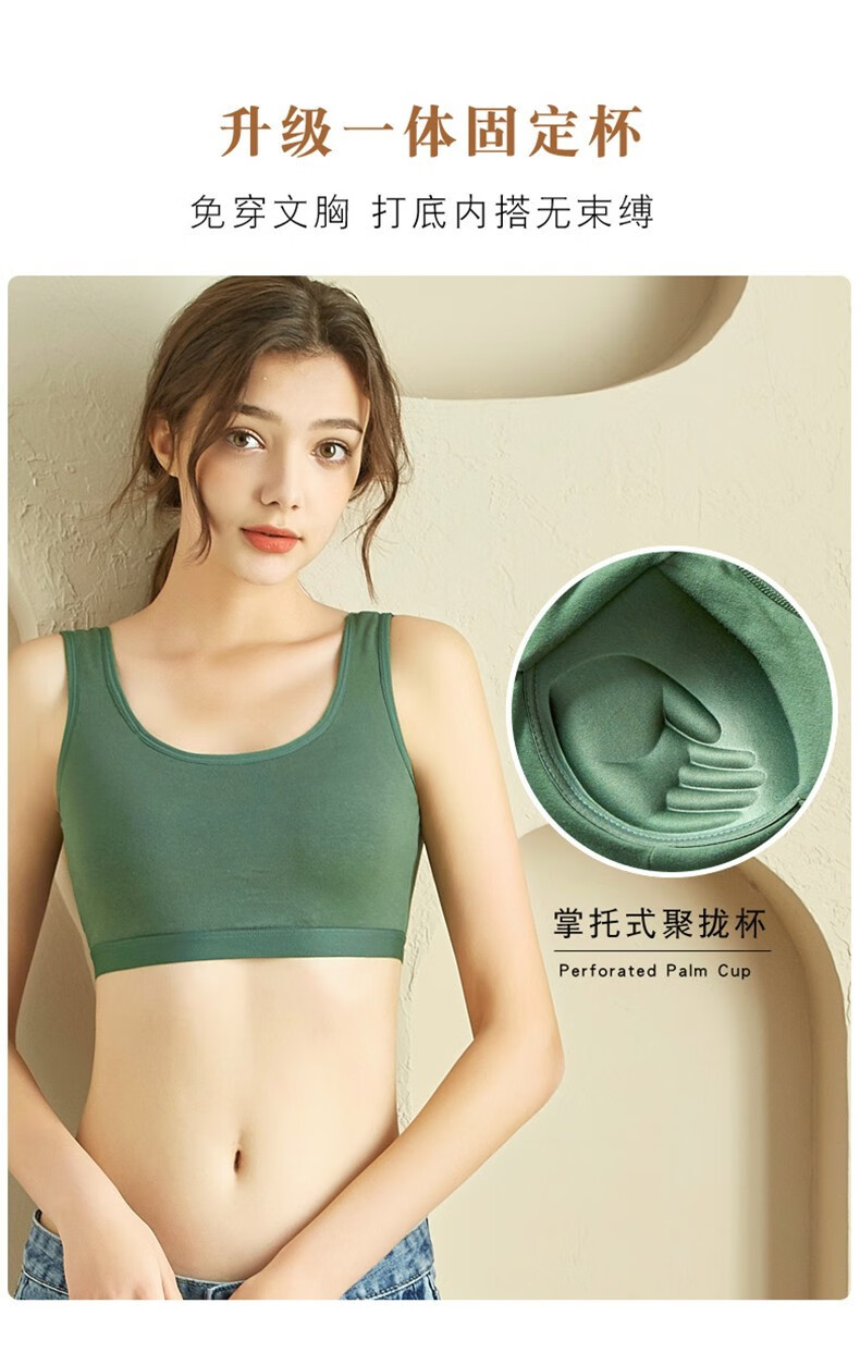 甜蜜邂逅2件装文胸美背少女高中学生无痕无钢圈背心式女生运动内衣 黑色+绿色 XL(120-145斤)