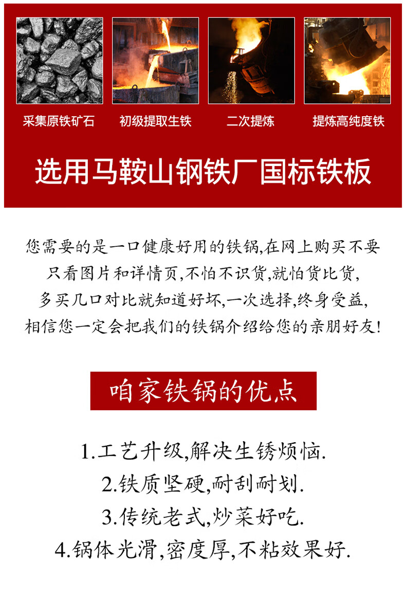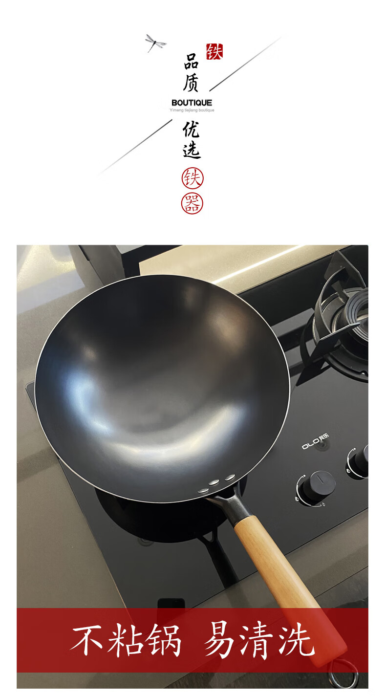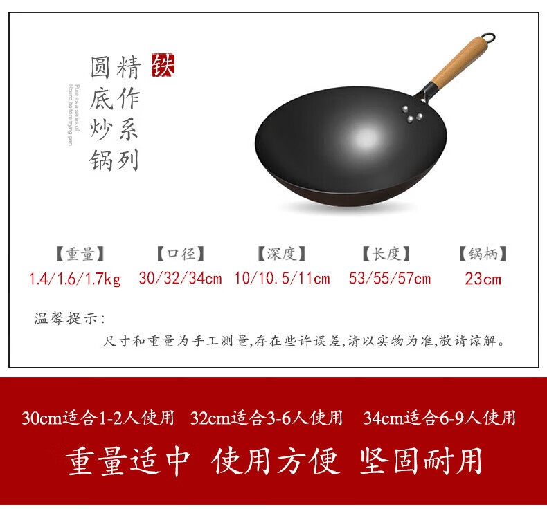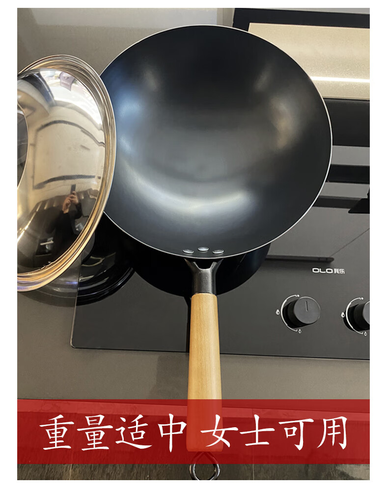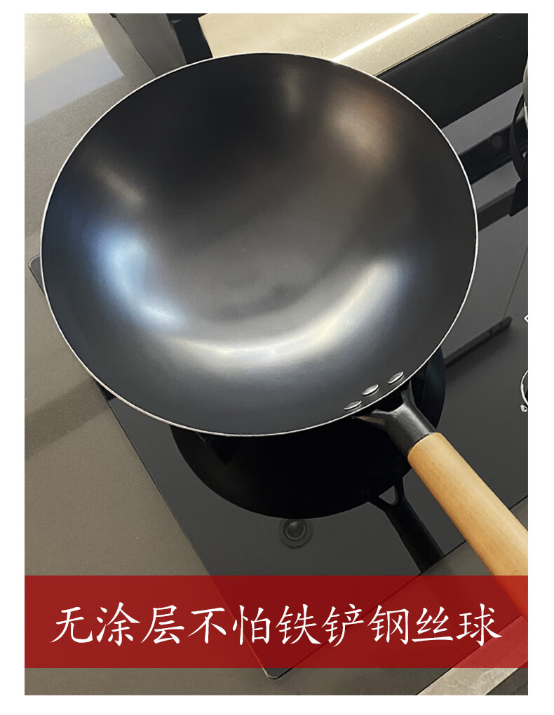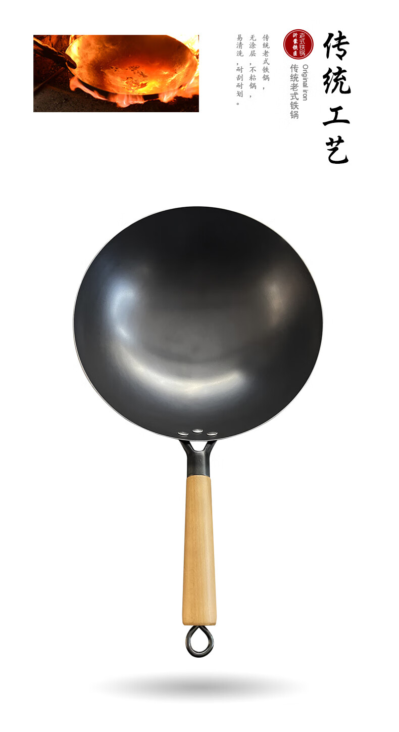 舌尖上的匠人传统老式铁锅不粘锅无涂层家用炒菜锅适用燃气灶煤气灶专用炒锅 32cm含盖(适合3-6人使用)