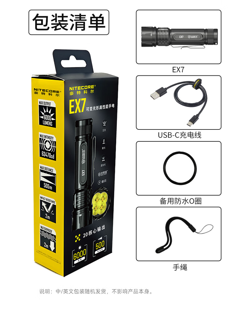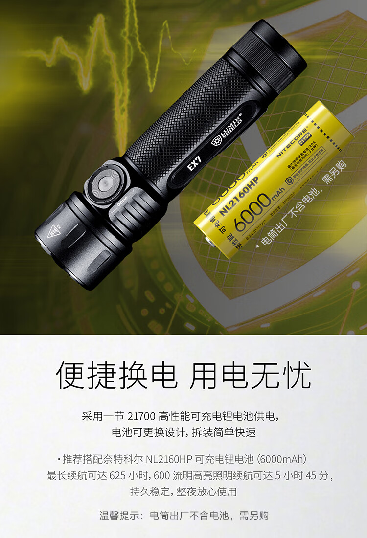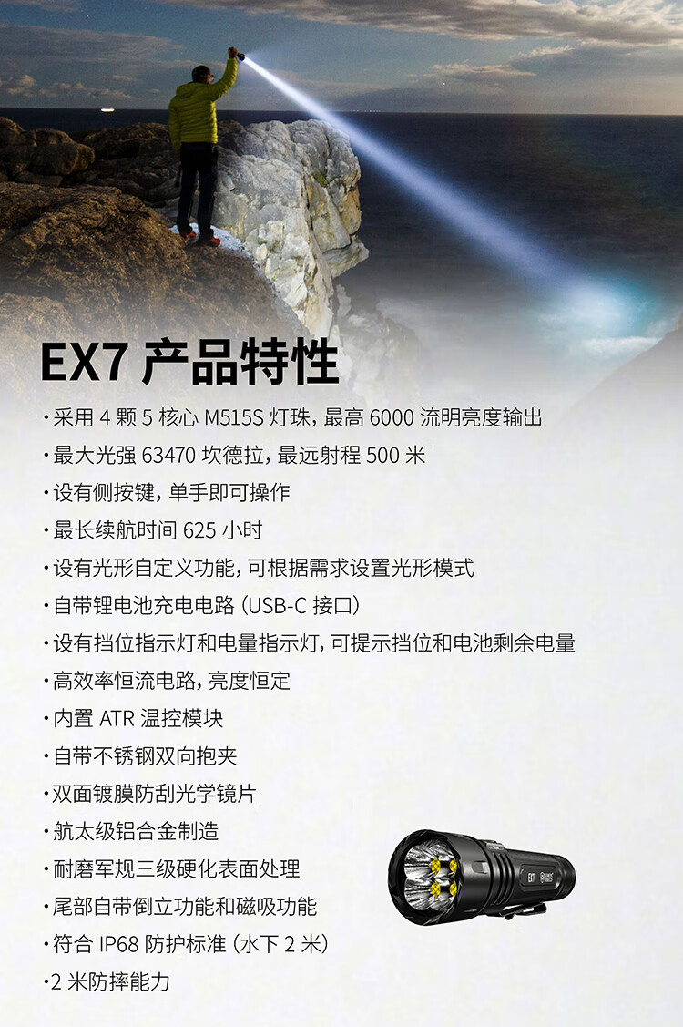 奈特科尔ex7可变光型6000流明强光超亮聚/泛光双兼容usb便携磁吸工具手电 【EX7新品上市】+6000mAh电池
