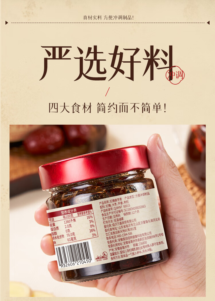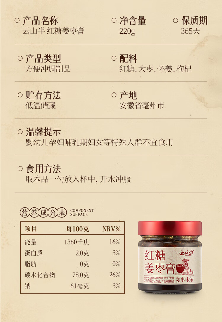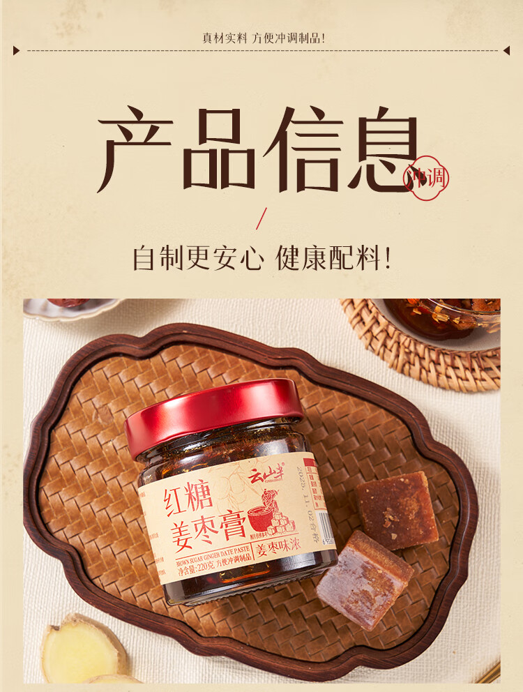 云山半红糖怀姜枣膏220g 姜茶姜汁大姨妈痛经枸杞红枣暖身茶驱寒热饮
