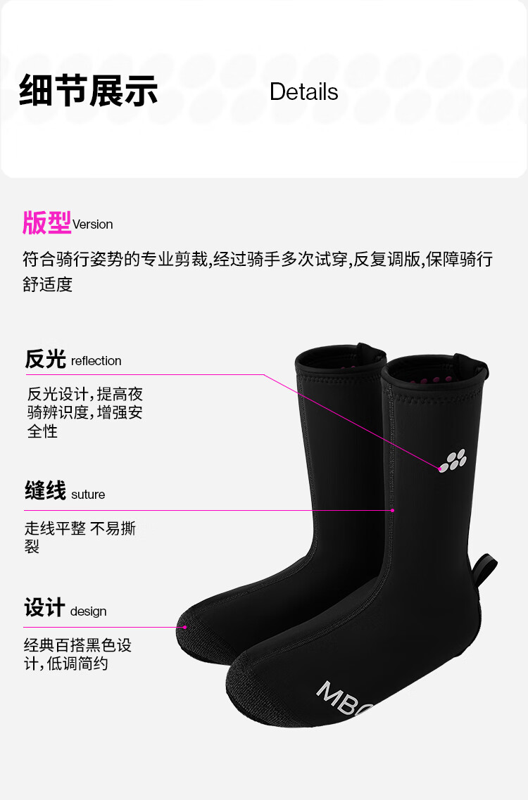 MBO男女通用冬季保暖防风防水骑行鞋套 紧致贴合 AS180 黑色 L