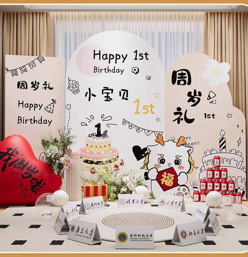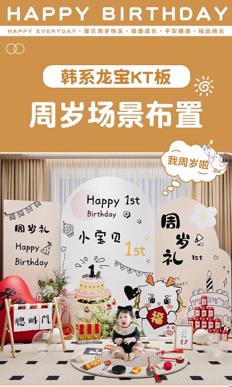 抓周韩式龙宝宝ins风周岁生日布置装饰背景墙场景氛围感女孩抓周kt板1 【高1.2】韩系龙宝套餐+毯+26件+手足印+锣+木架聪明门