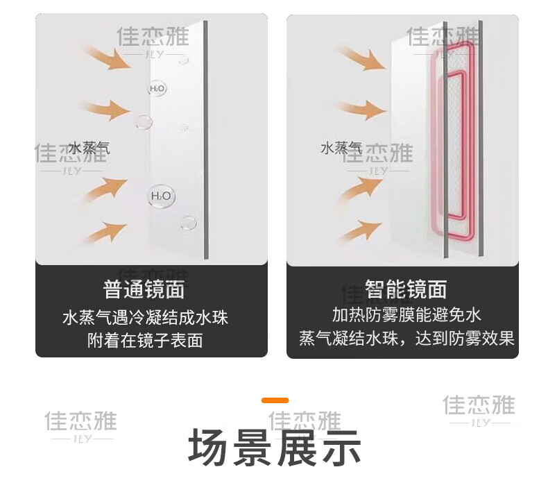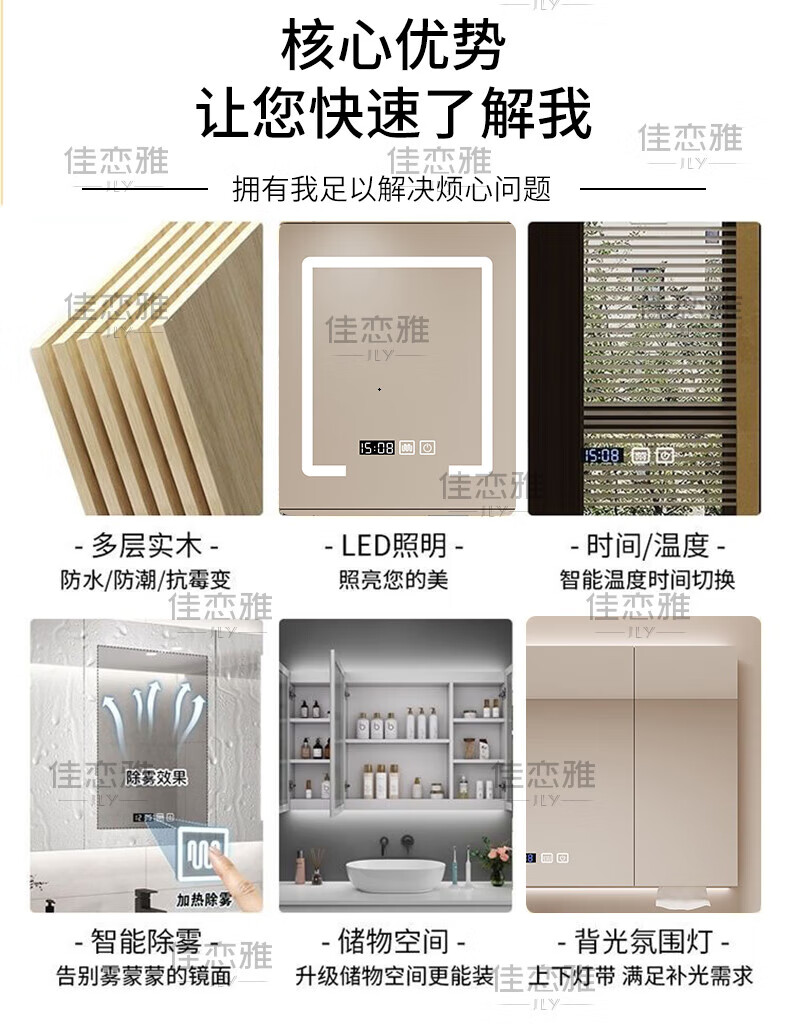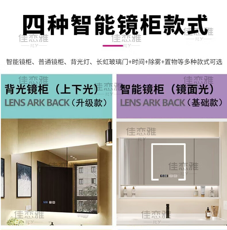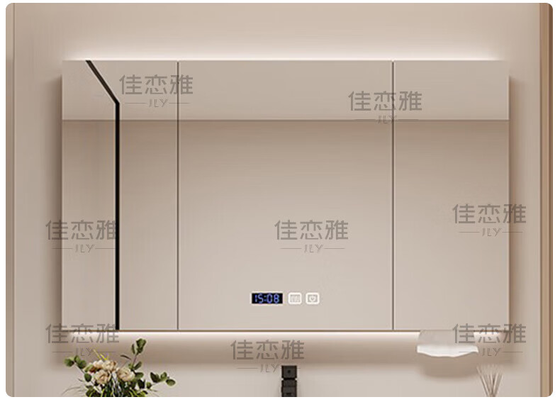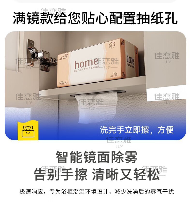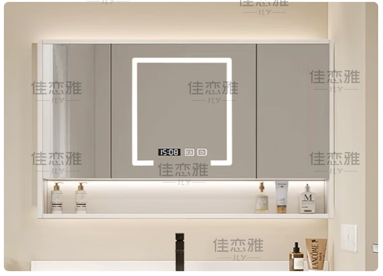 佳恋雅(JIALIANYA)奶油风挂墙式浴室柜智能多层实木镜柜高清镜子壁挂收纳置物单镜柜 85cm圆弧智能镜柜-卡其色
