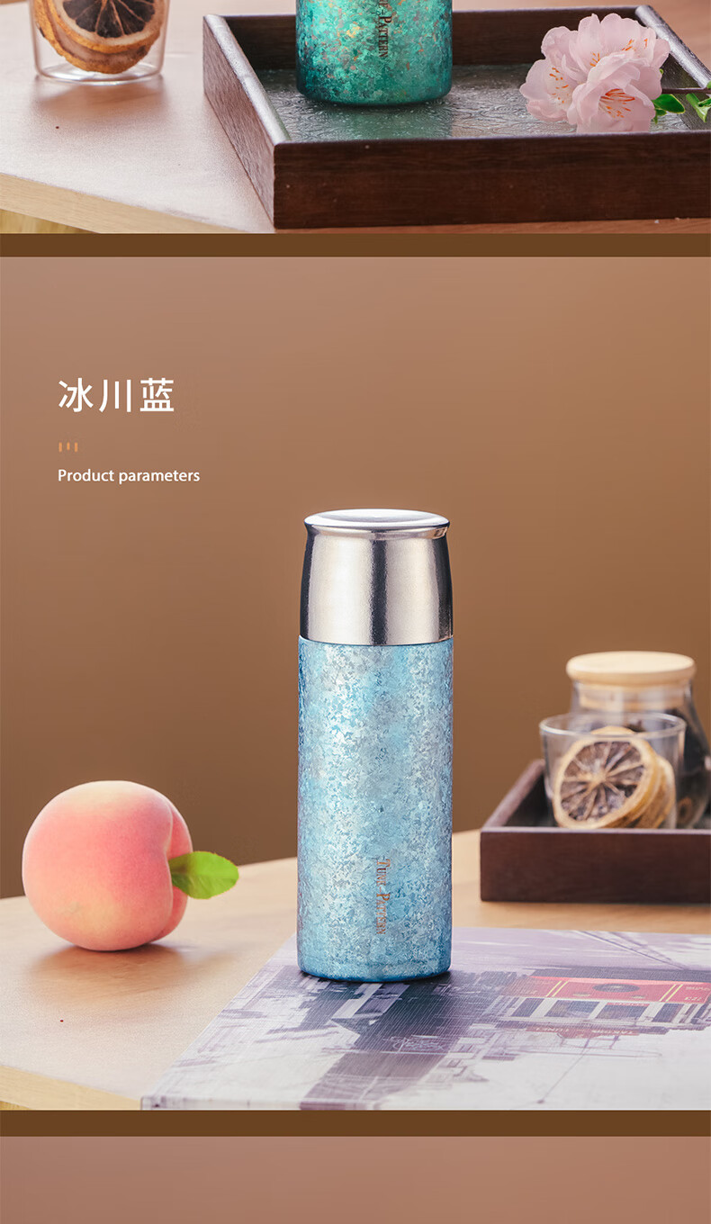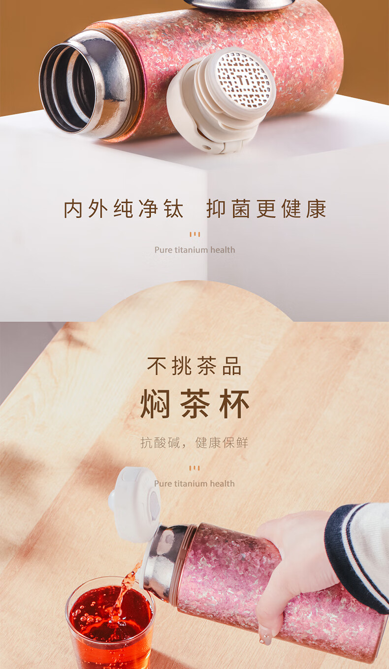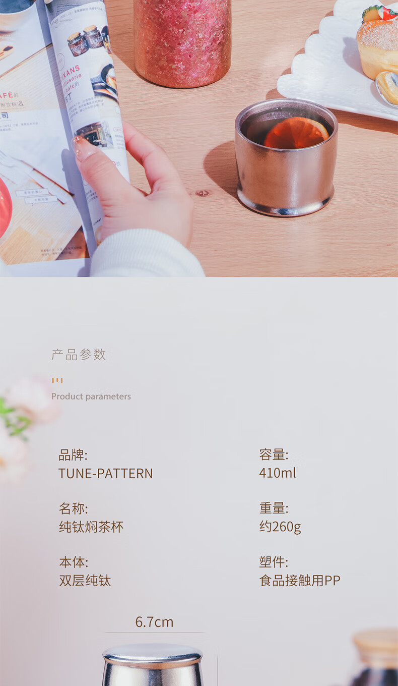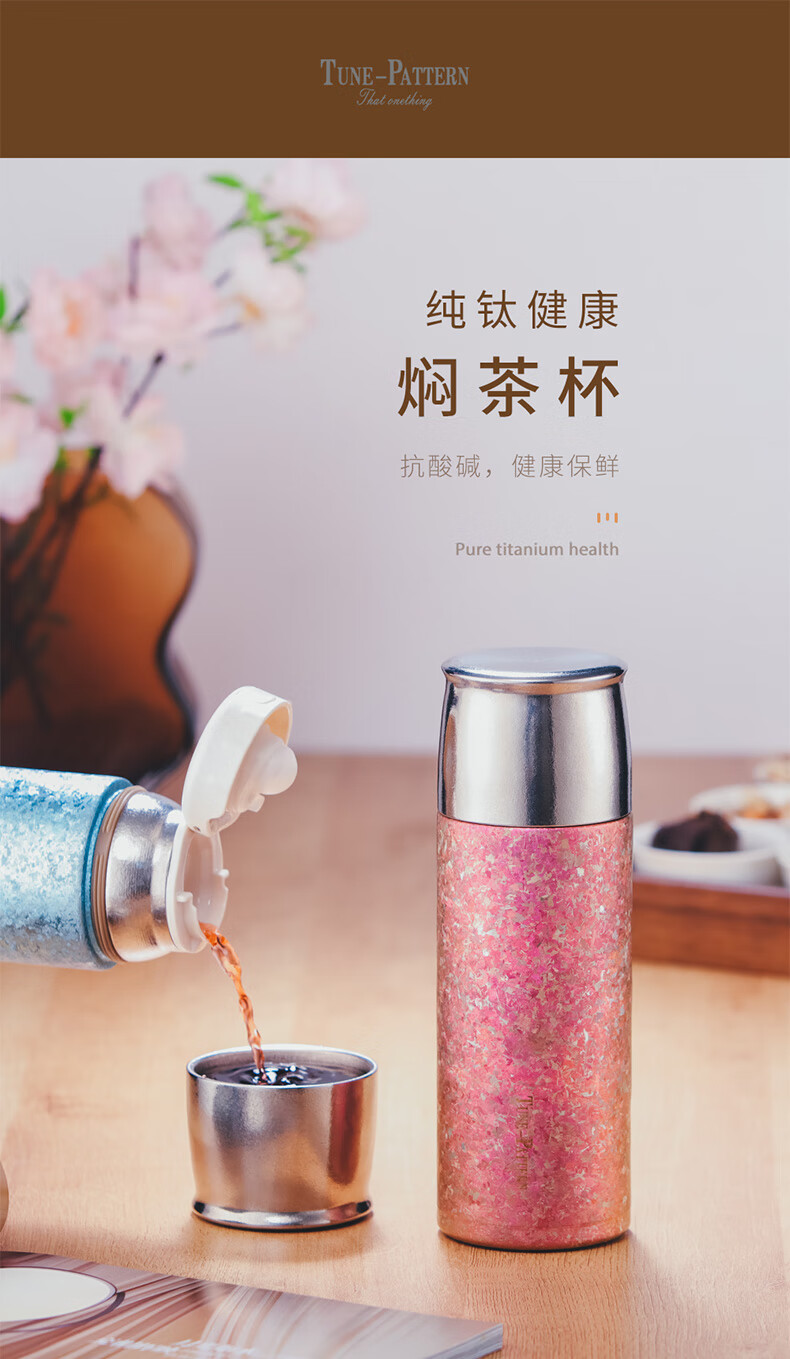 TUNE-PATTERN汀派纯钛叠彩焖泡杯保温杯茶水分离泡茶杯男女士高端送礼钛杯杯子 翡翠绿【送杯套+定制杯刷】410ml