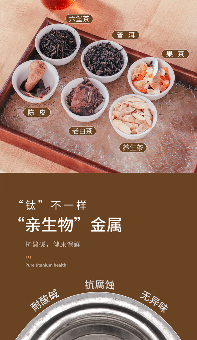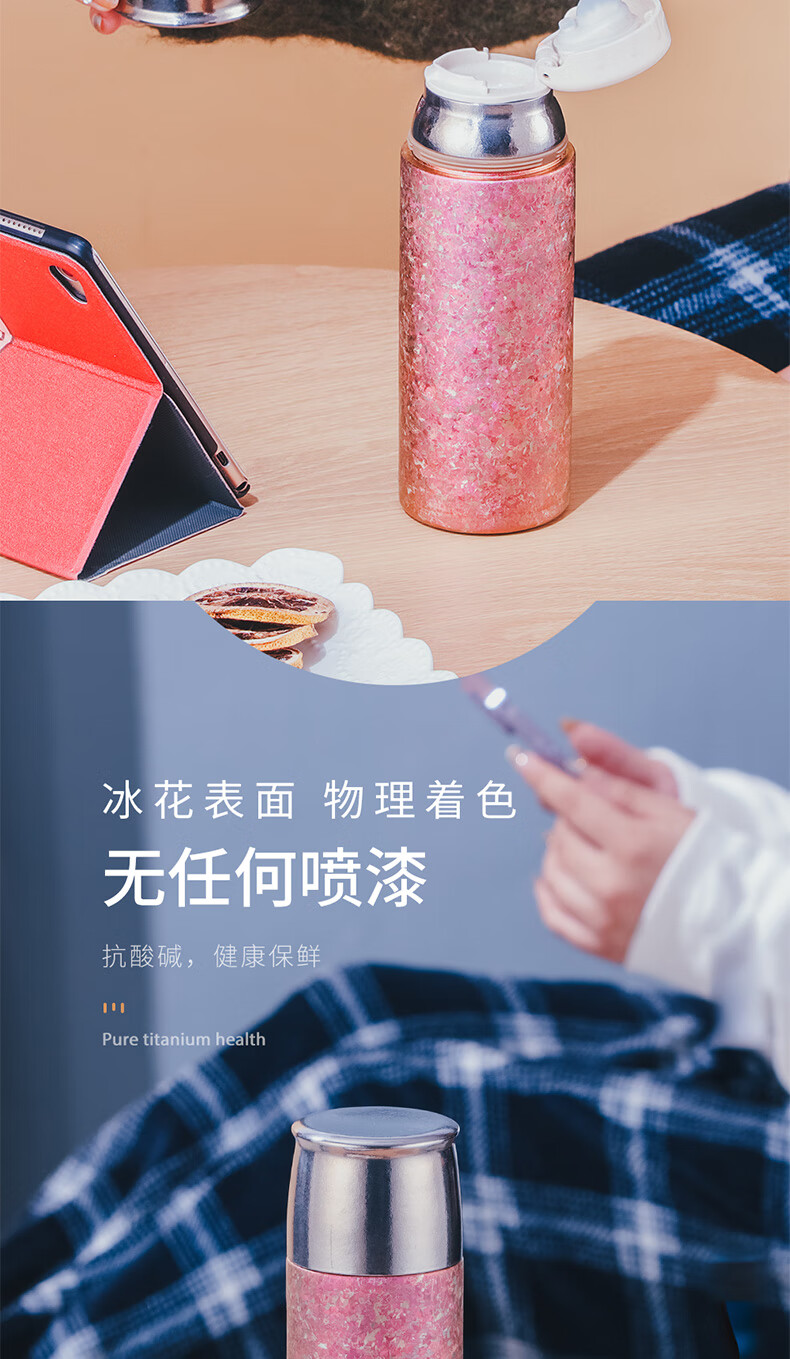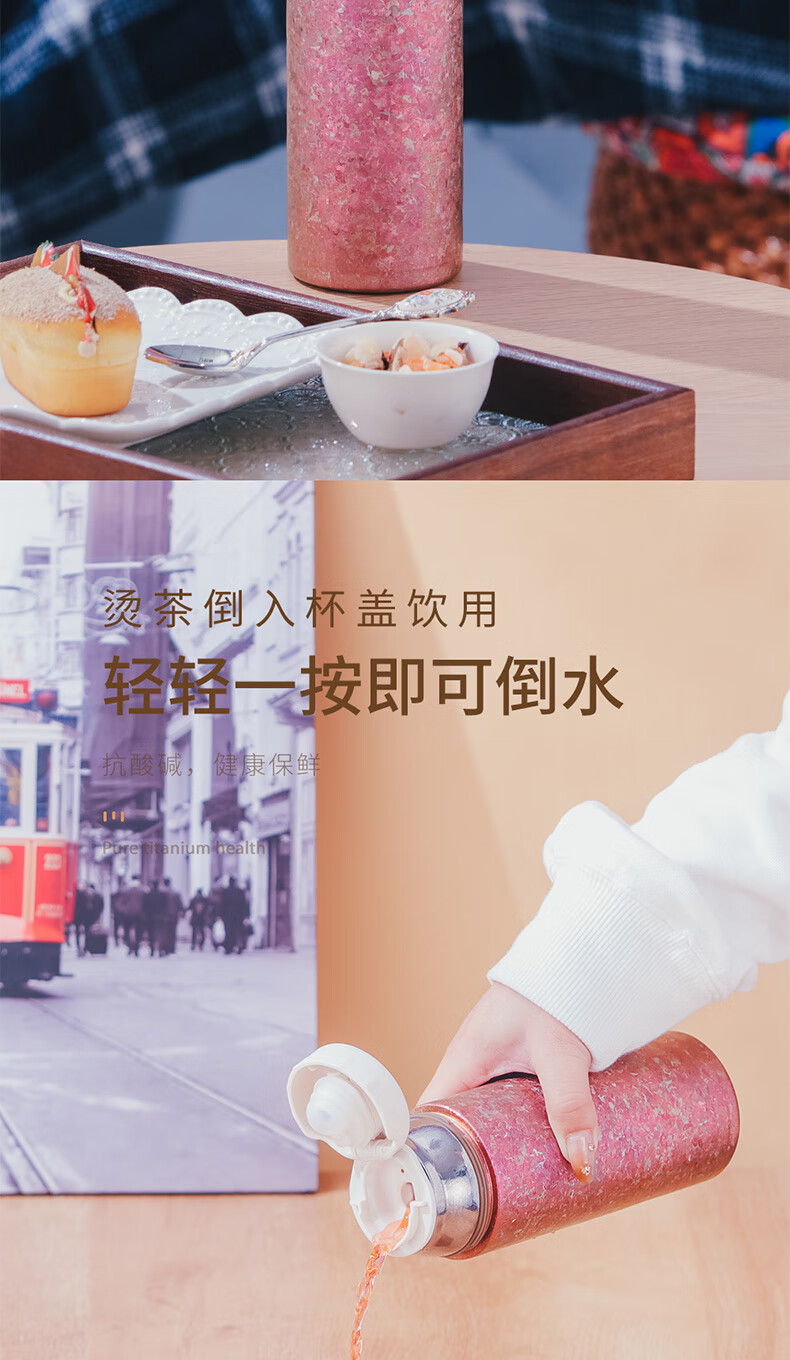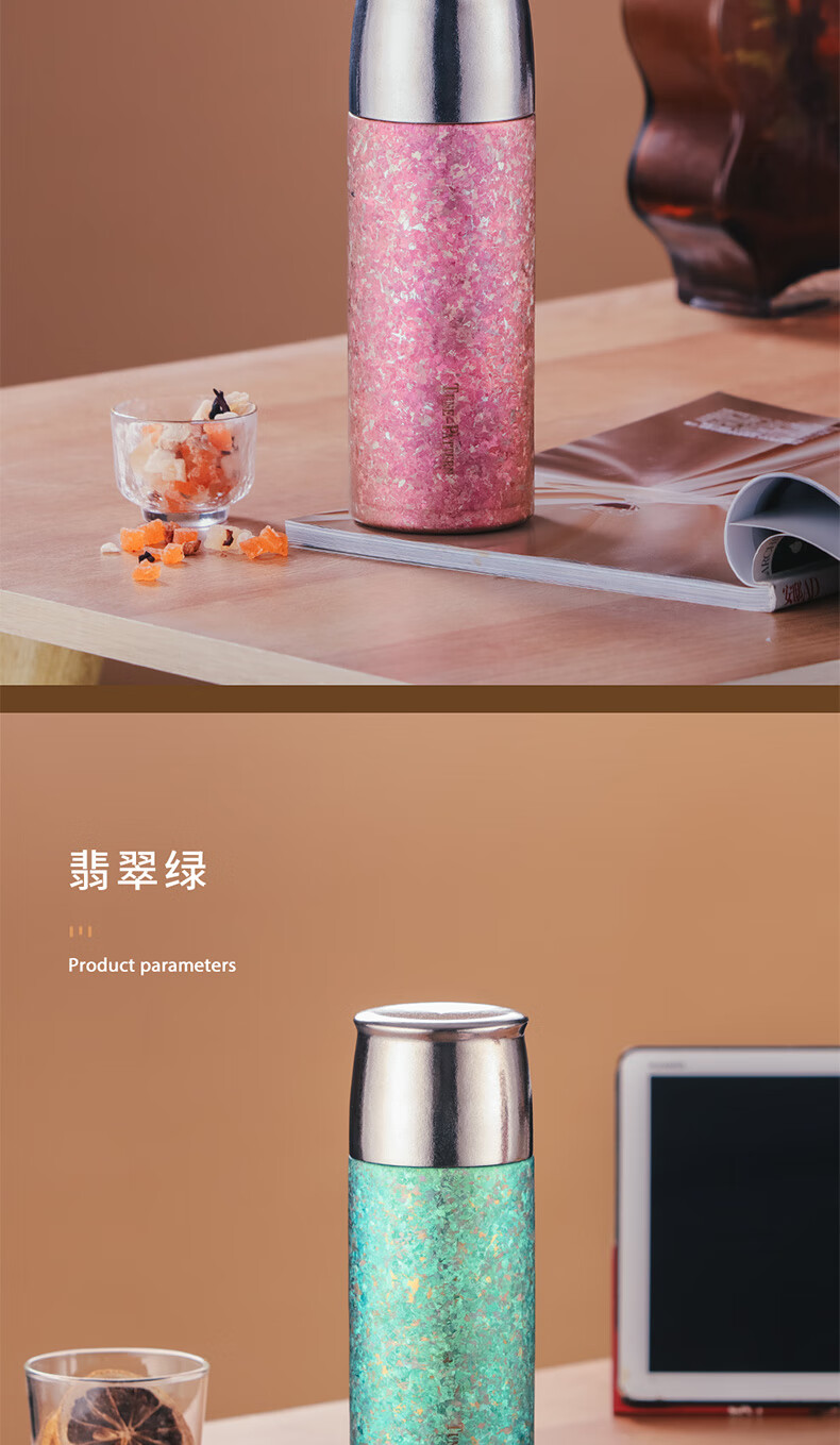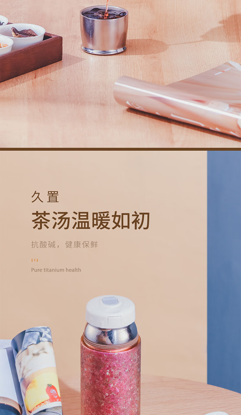 TUNE-PATTERN汀派纯钛叠彩焖泡杯保温杯茶水分离泡茶杯男女士高端送礼钛杯杯子 翡翠绿【送杯套+定制杯刷】410ml