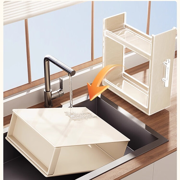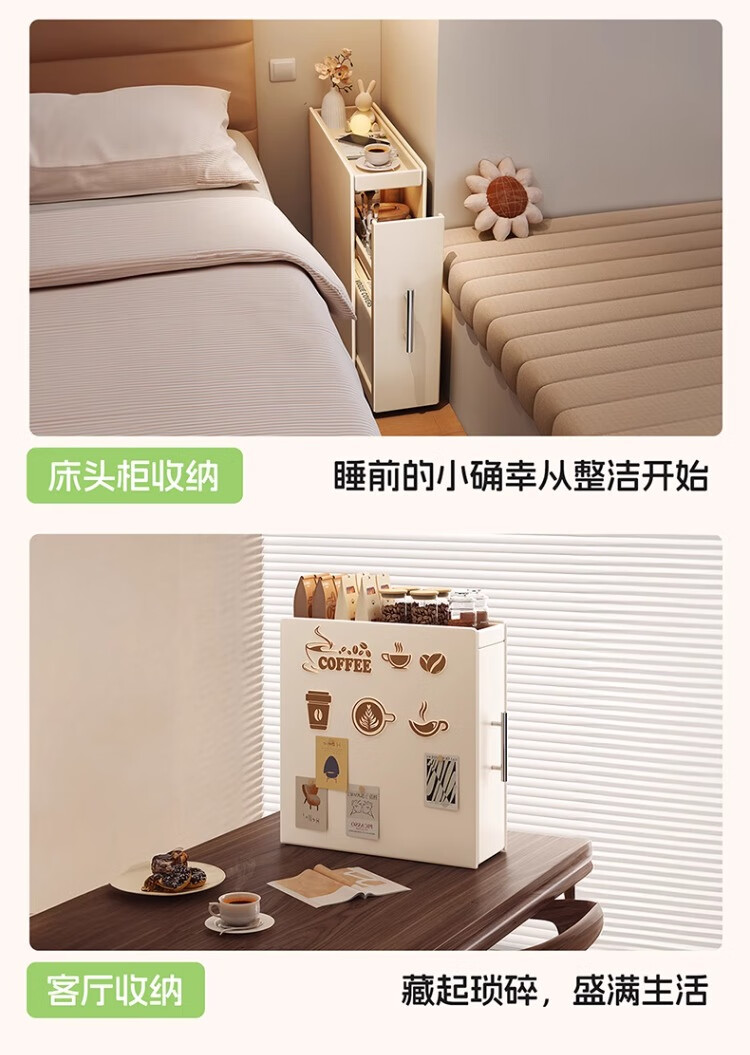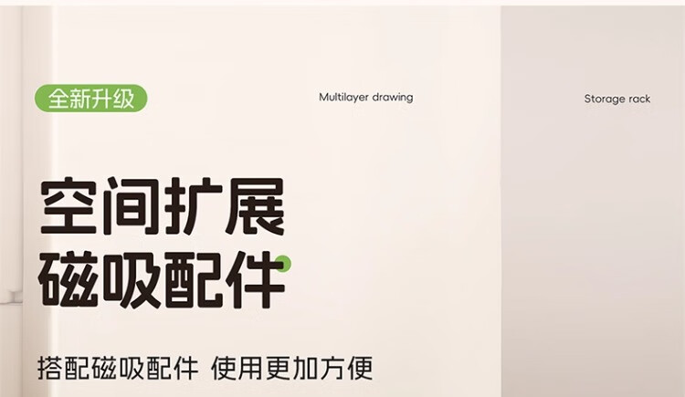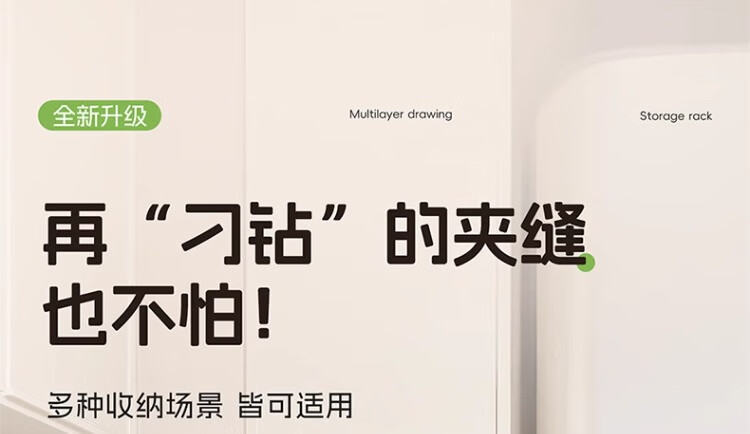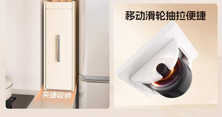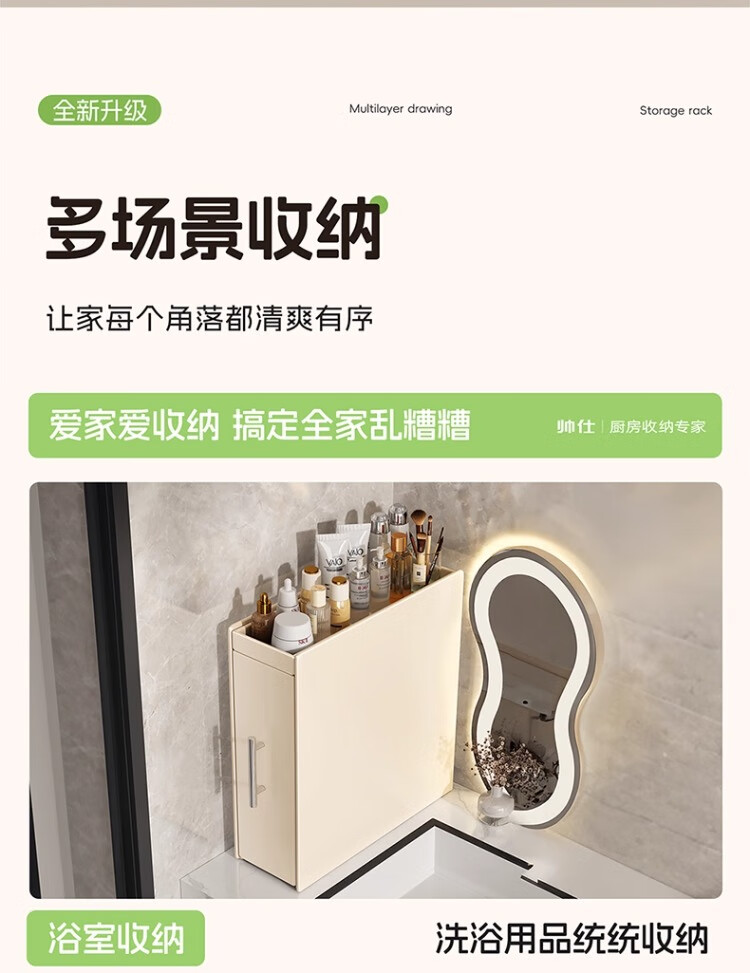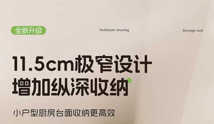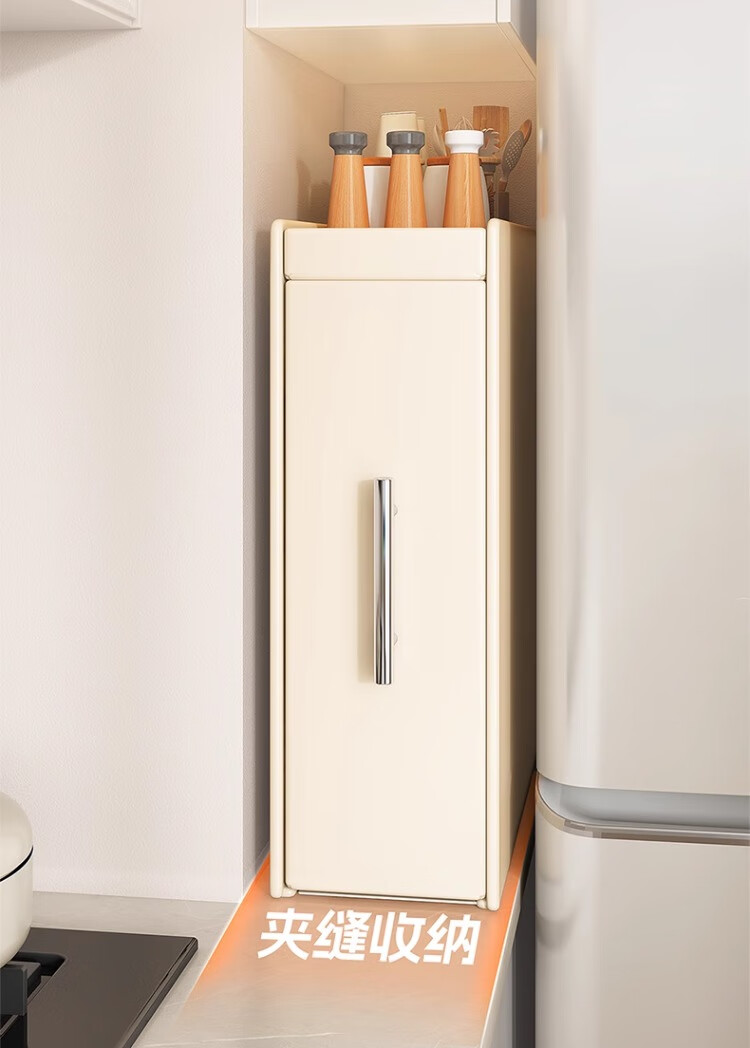 衣炫防尘抽拉式调料品置物架厨房多功能调味料台面收纳柜架子盒窄边 奶油白-三层小号(带磁吸挂钩+砧板架)