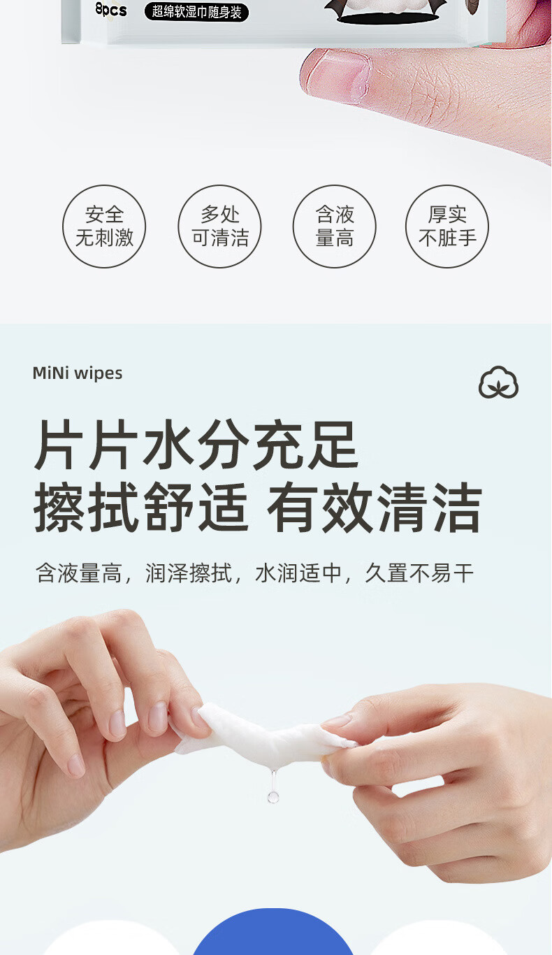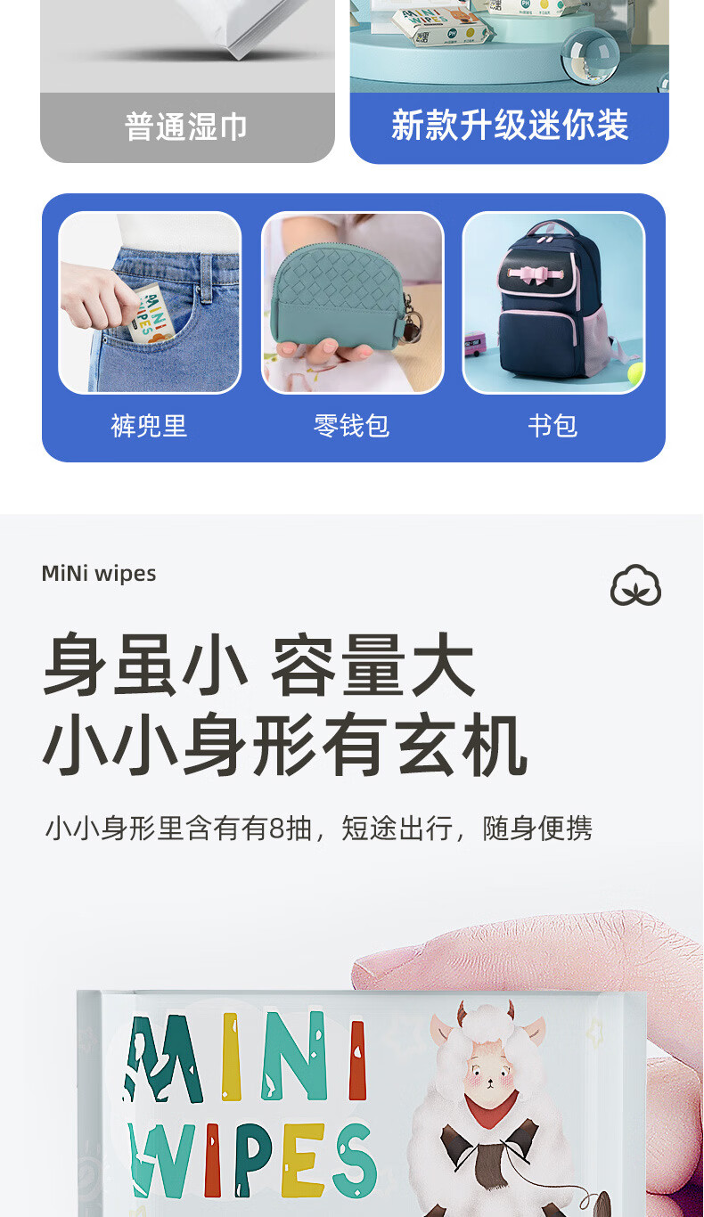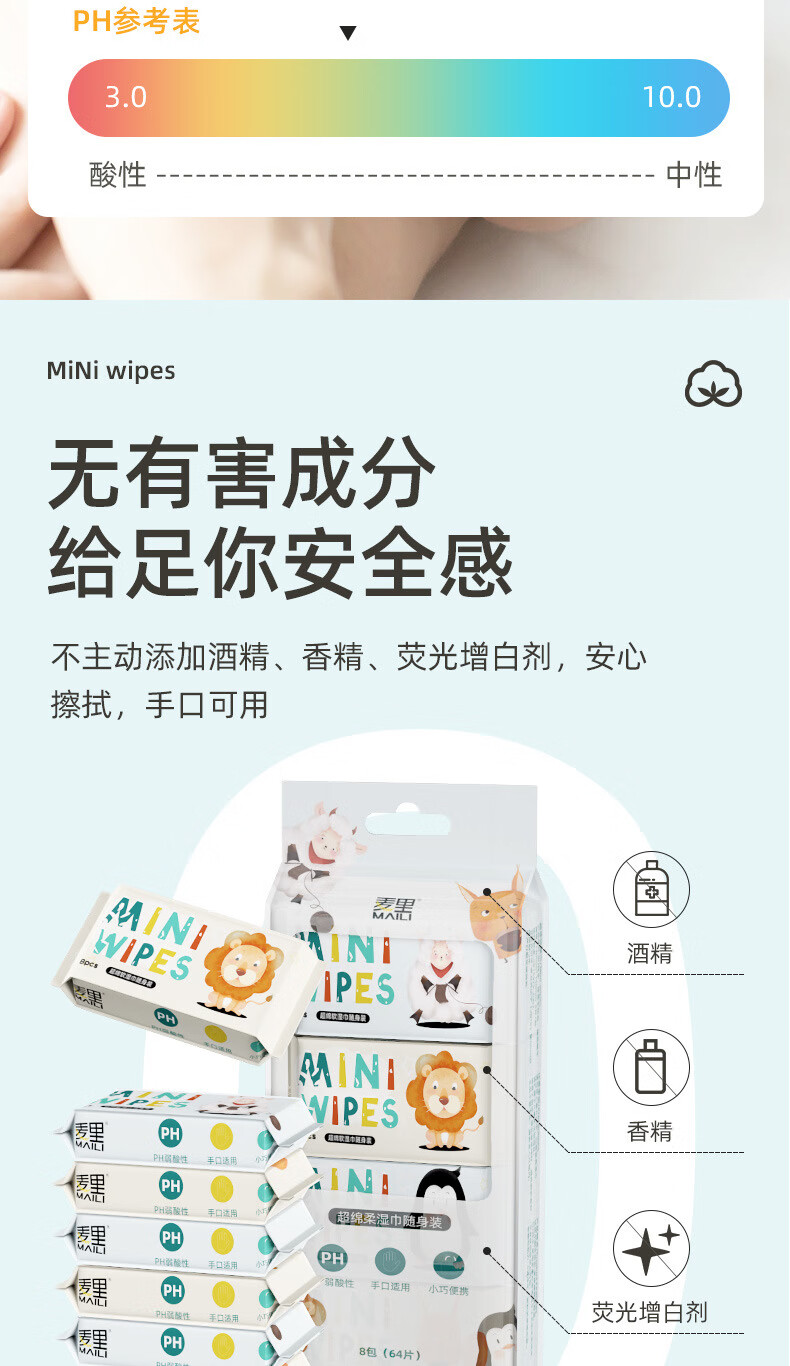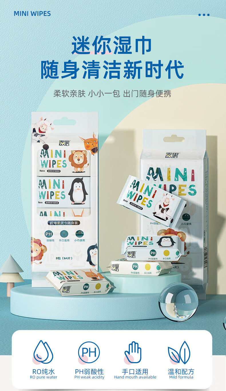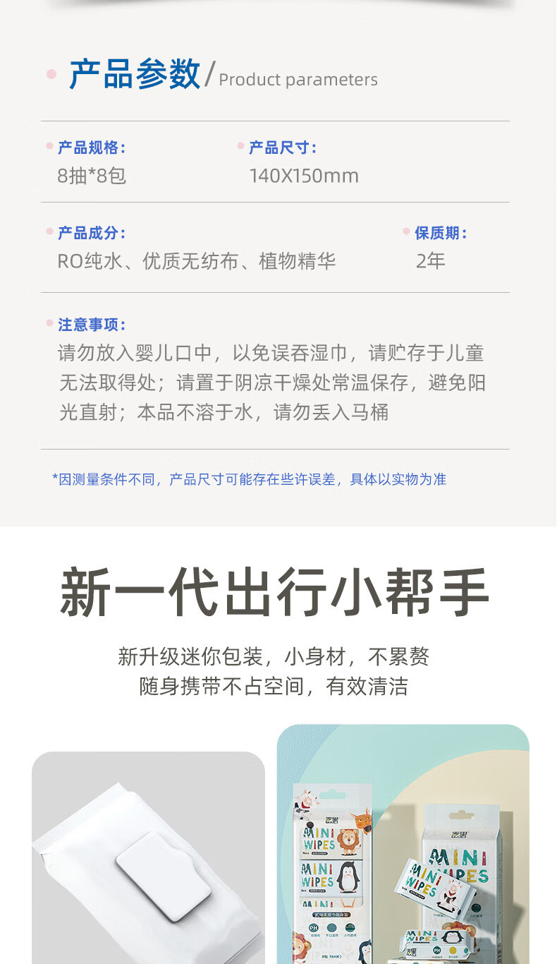 迷你小包湿巾袋装小包装便携式婴幼儿清洁手口湿巾小包随身携带 64片*【动物派对】迷你湿巾 1提