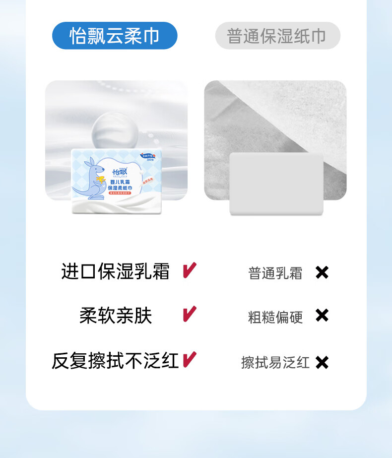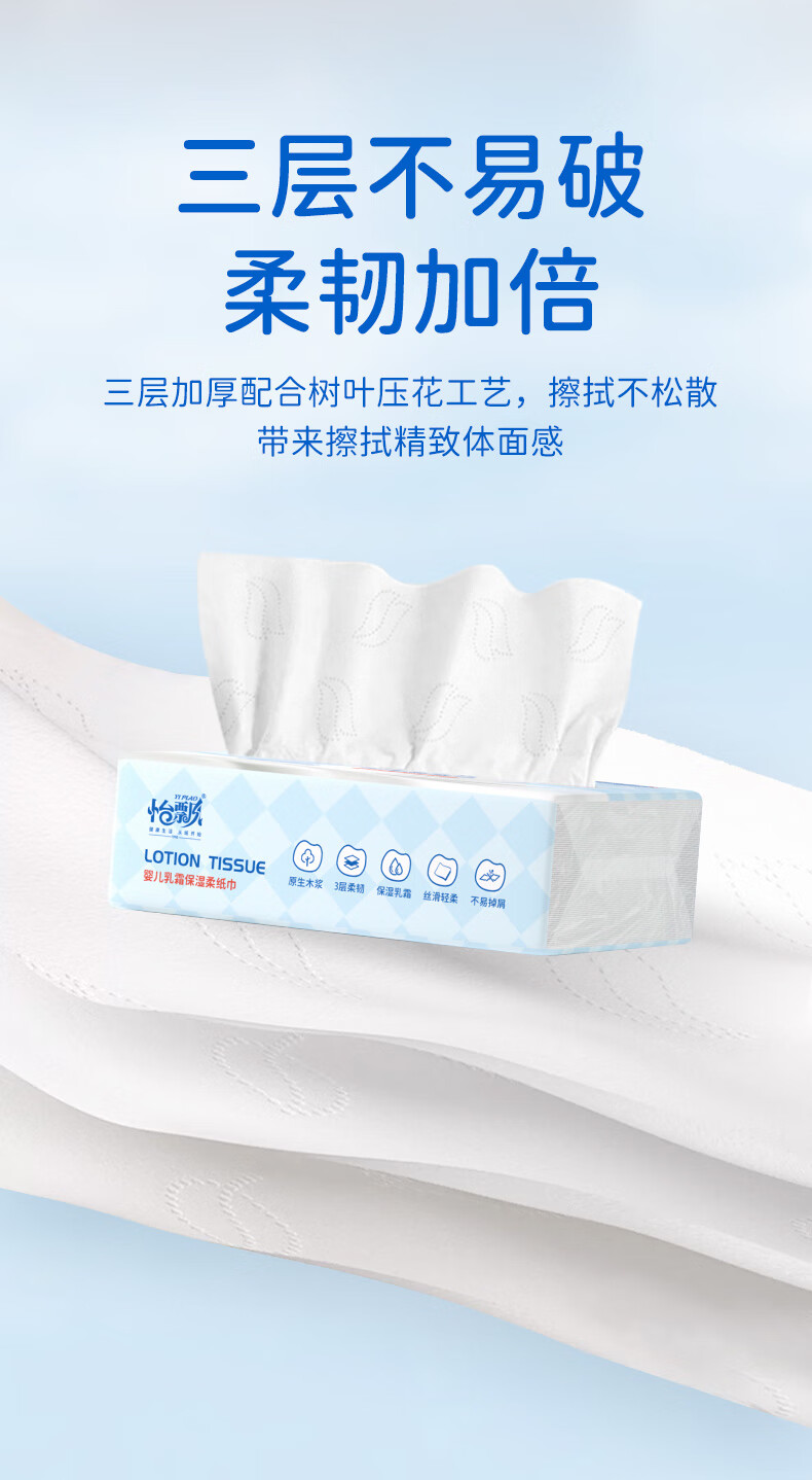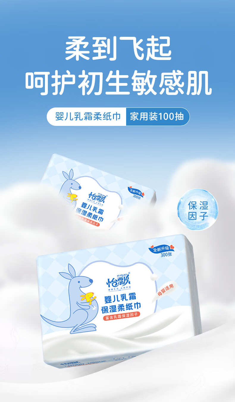 怡飘乳霜柔纸巾云柔巾婴儿抽纸保湿纸母婴适用 乳霜纸 3层 100抽*5包