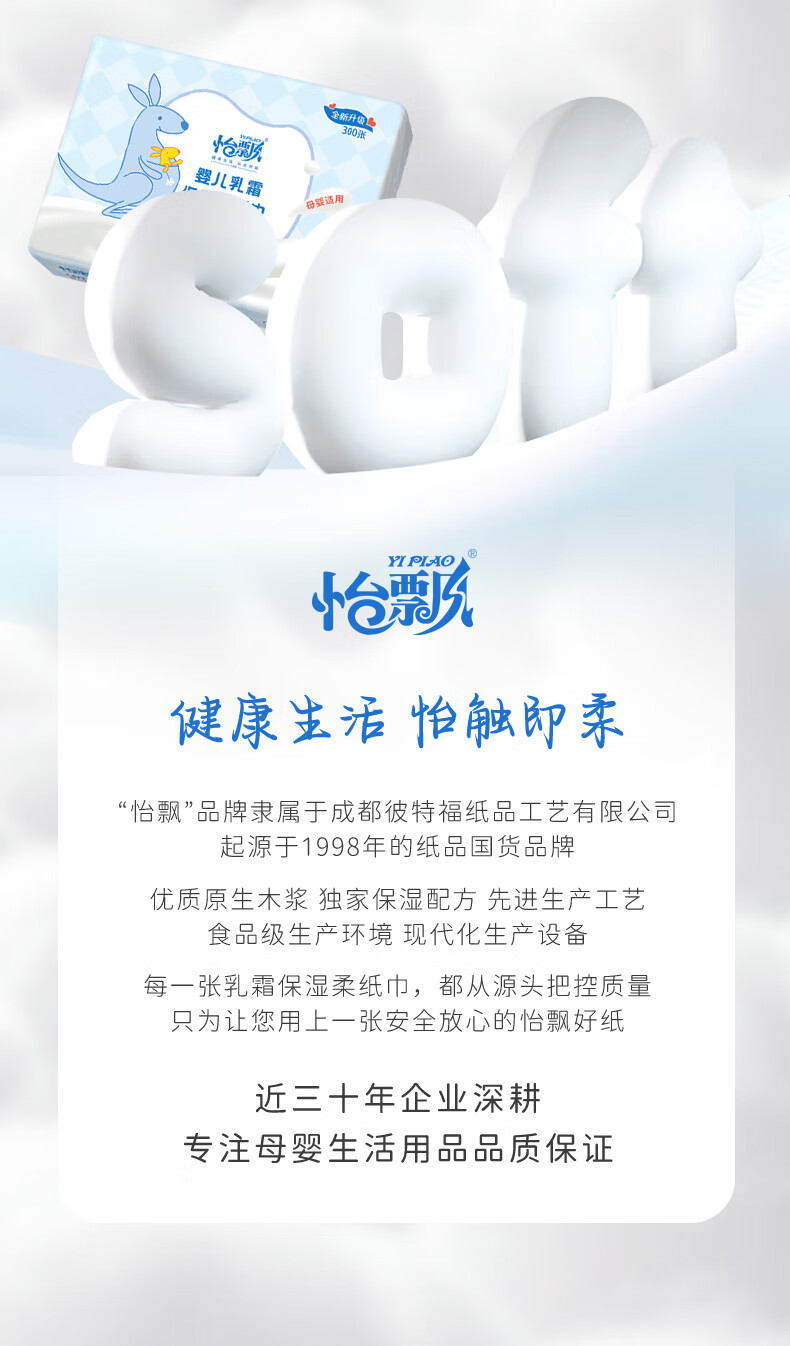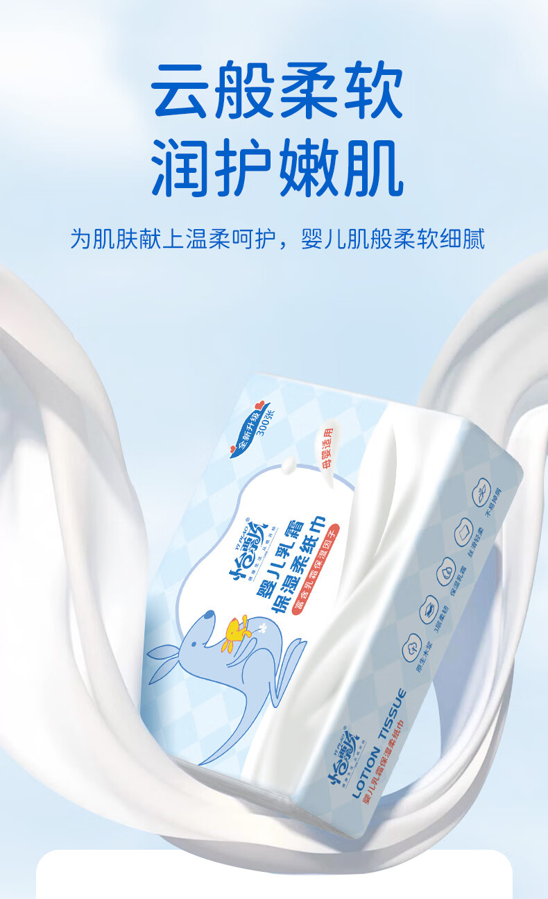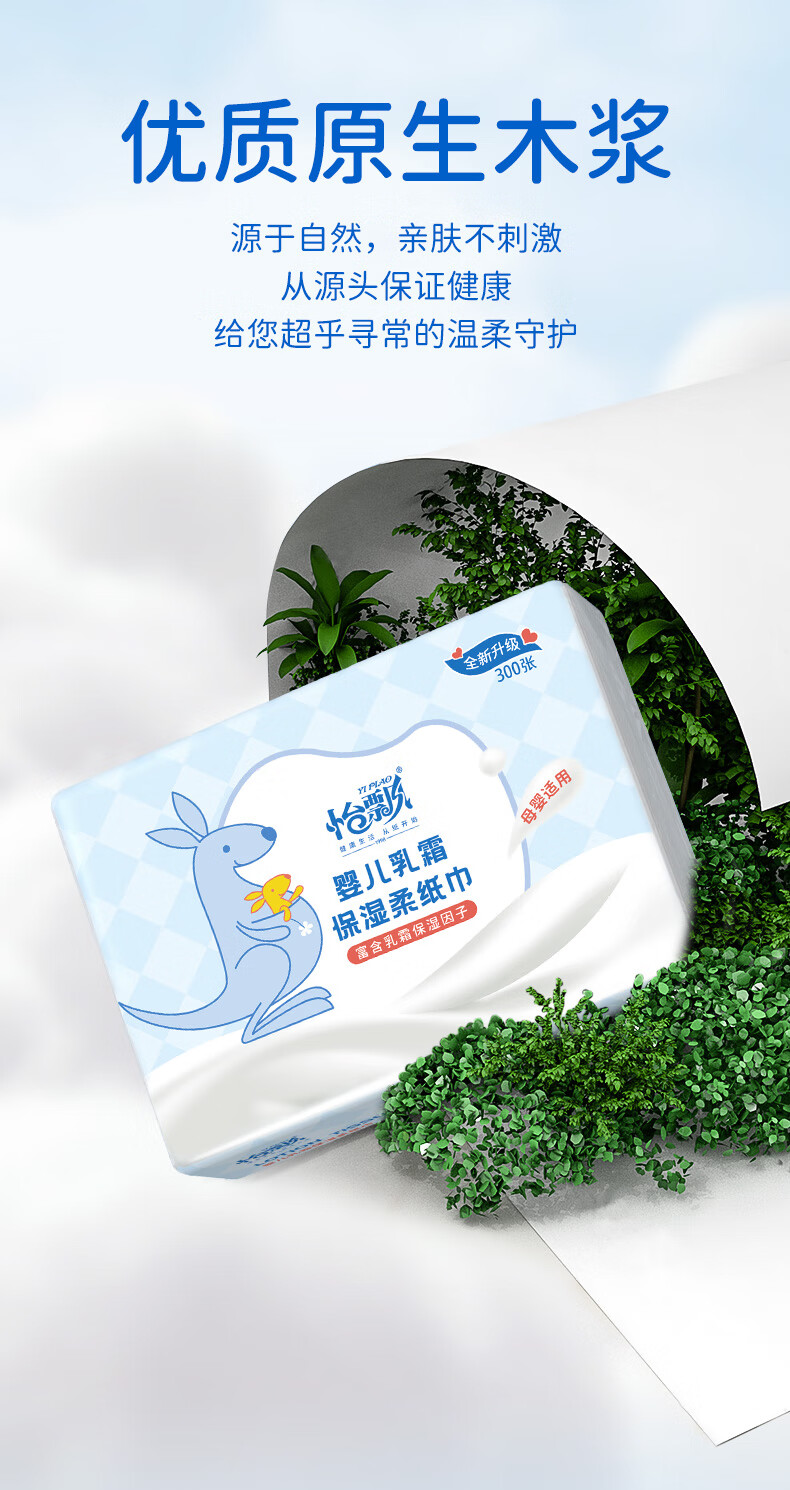 怡飘乳霜柔纸巾云柔巾婴儿抽纸保湿纸母婴适用 乳霜纸 3层 100抽*5包