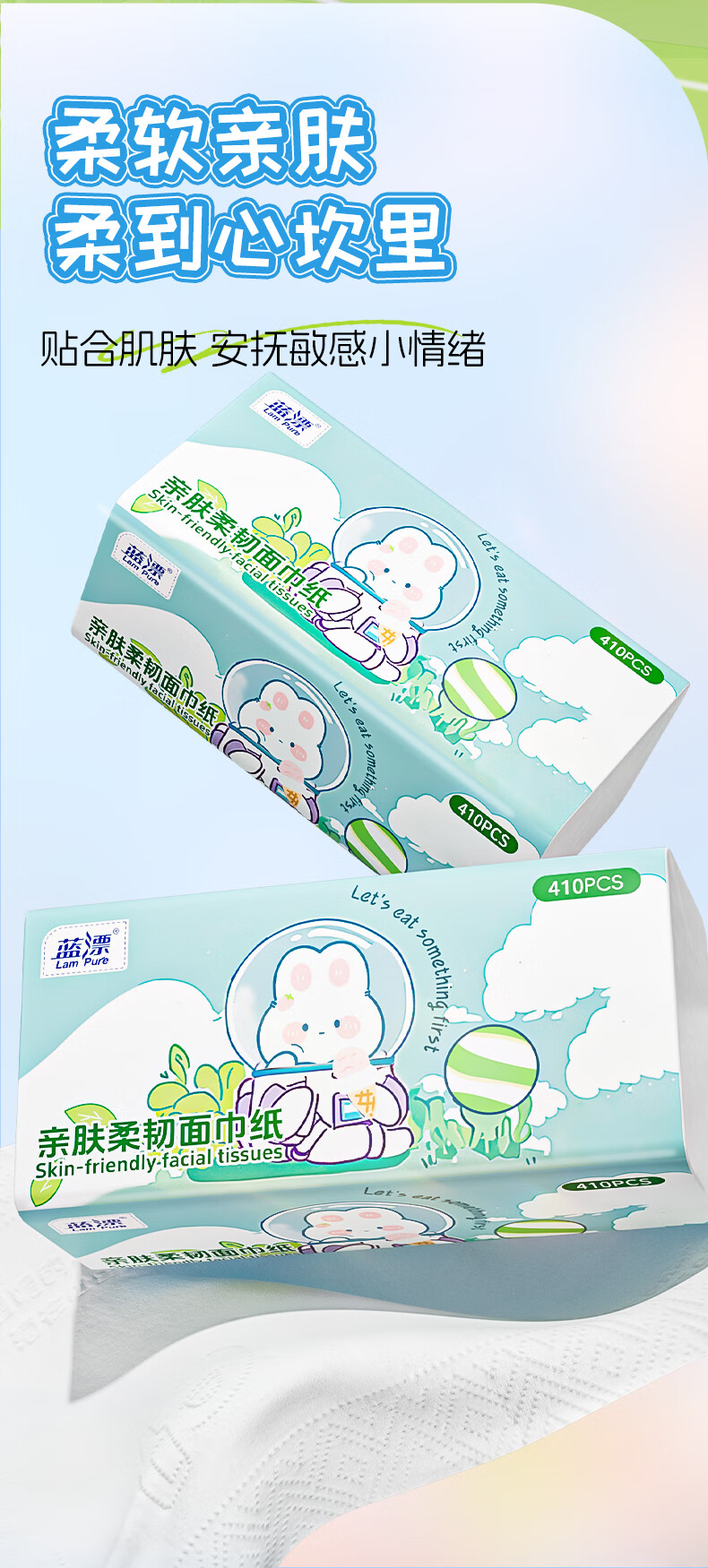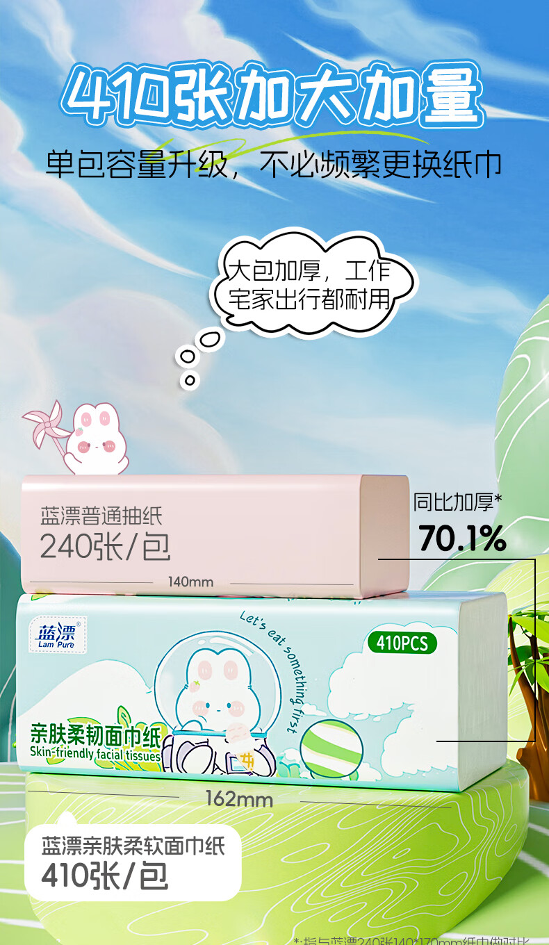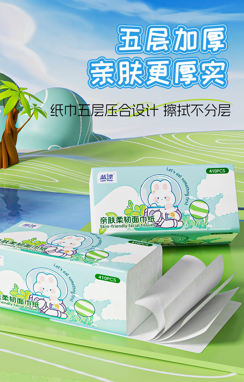 蓝漂大包抽纸纸巾大尺寸餐巾纸面巾纸家用卫生纸原木纸抽纸 5层 410张*6包 【体验装】