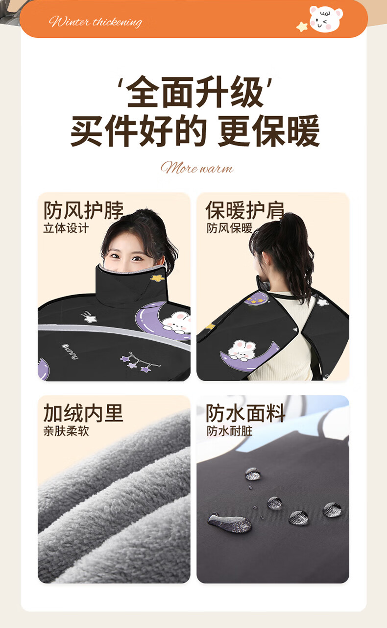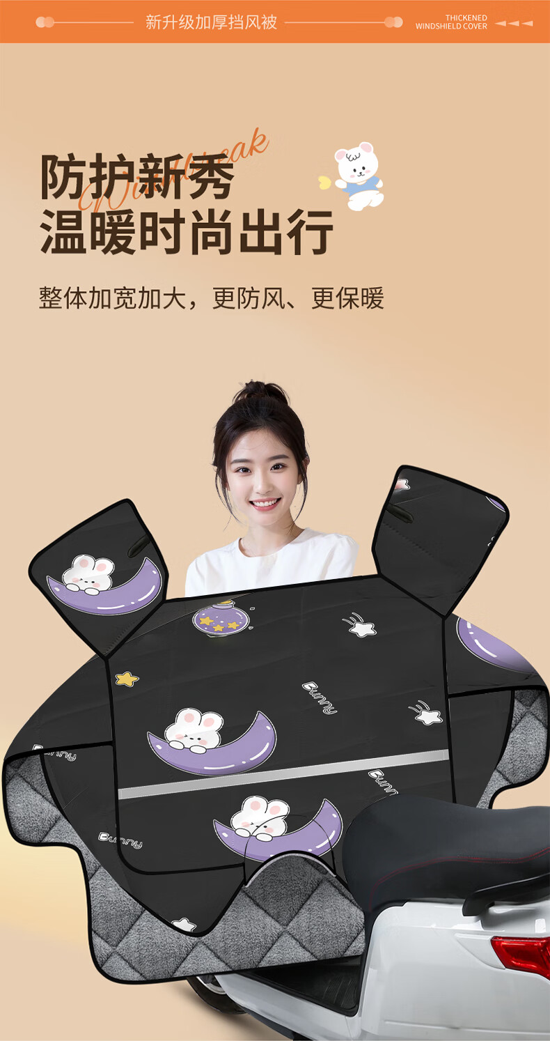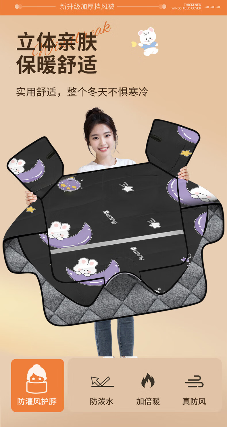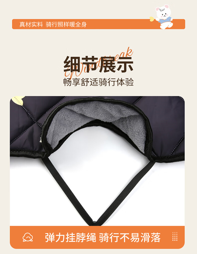 绿源(Luyuan)电动车冬季挡风被加厚电瓶车摩托车保暖加厚挡风被 浅灰-幸运狗【护面护颈】