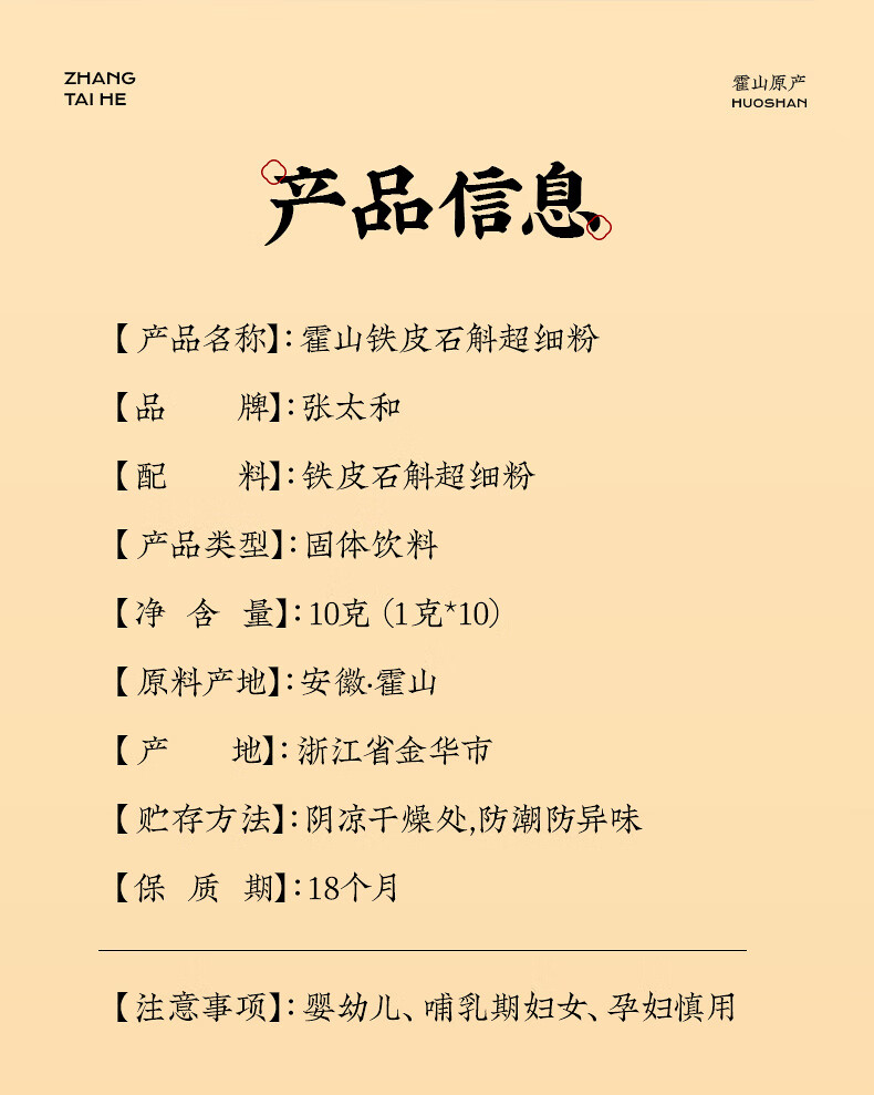 张太和铁皮石斛超细粉 铁皮石斛枫斗 石斛铁皮石斛冻干粉 霍山铁皮石斛超细粉10g*10盒