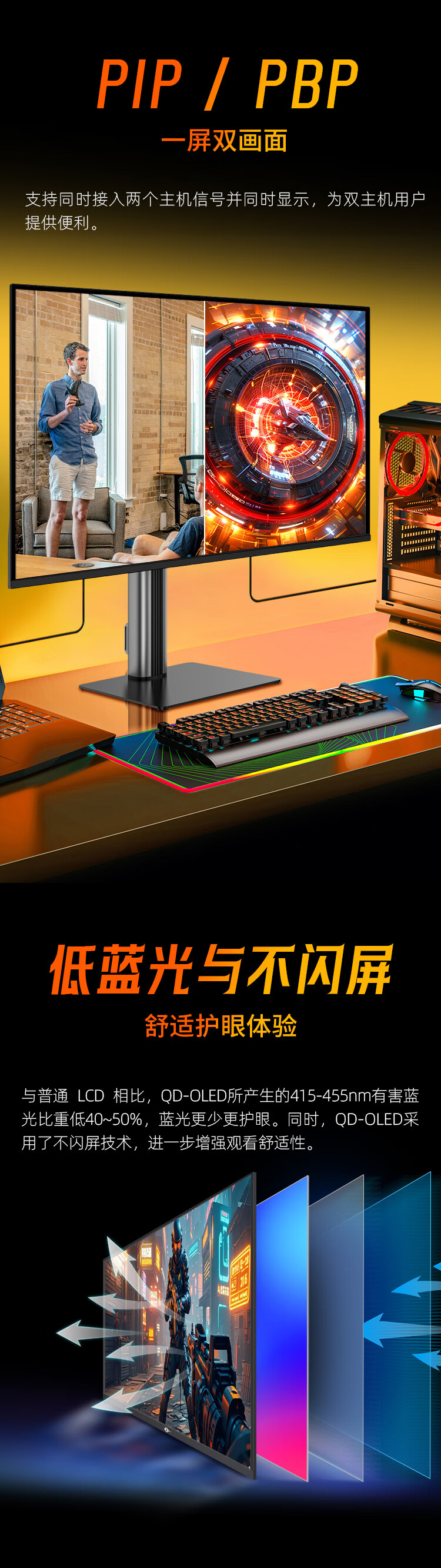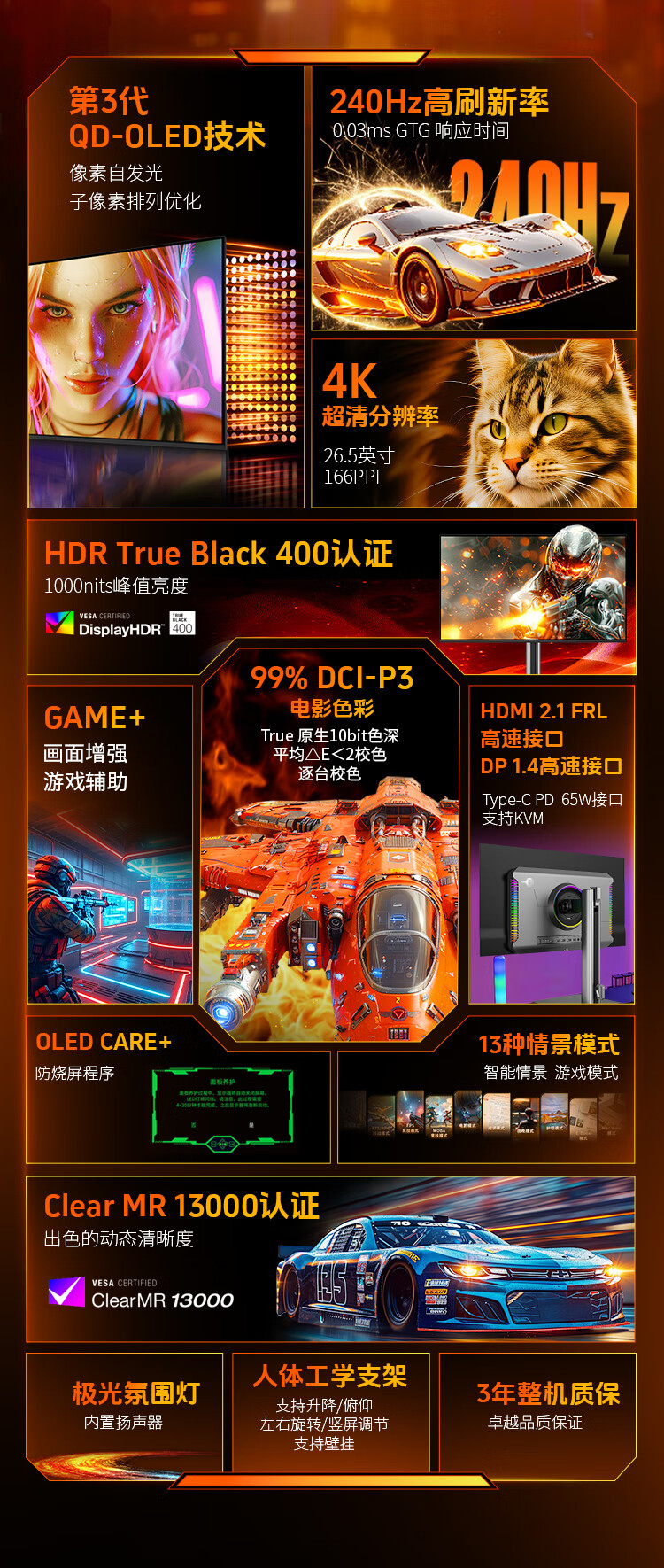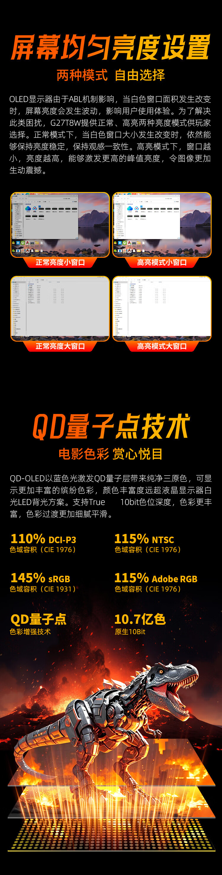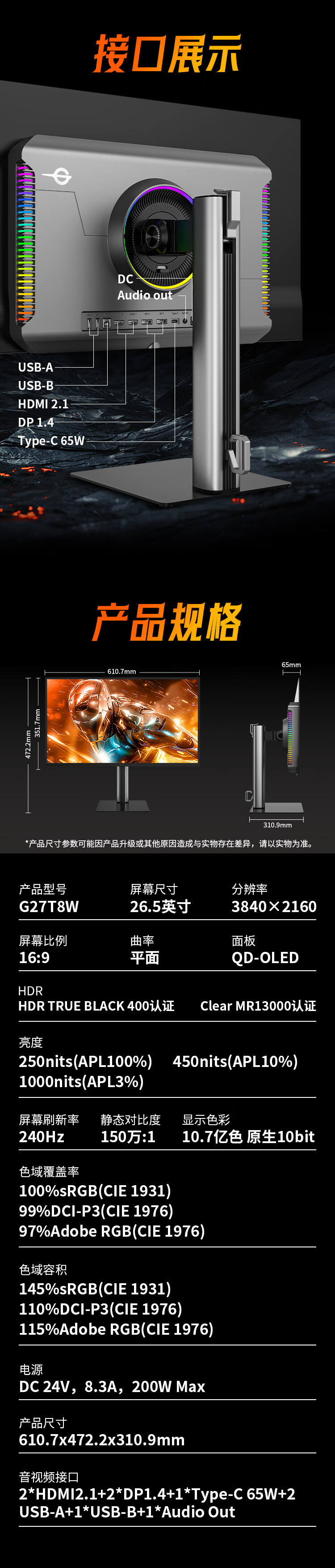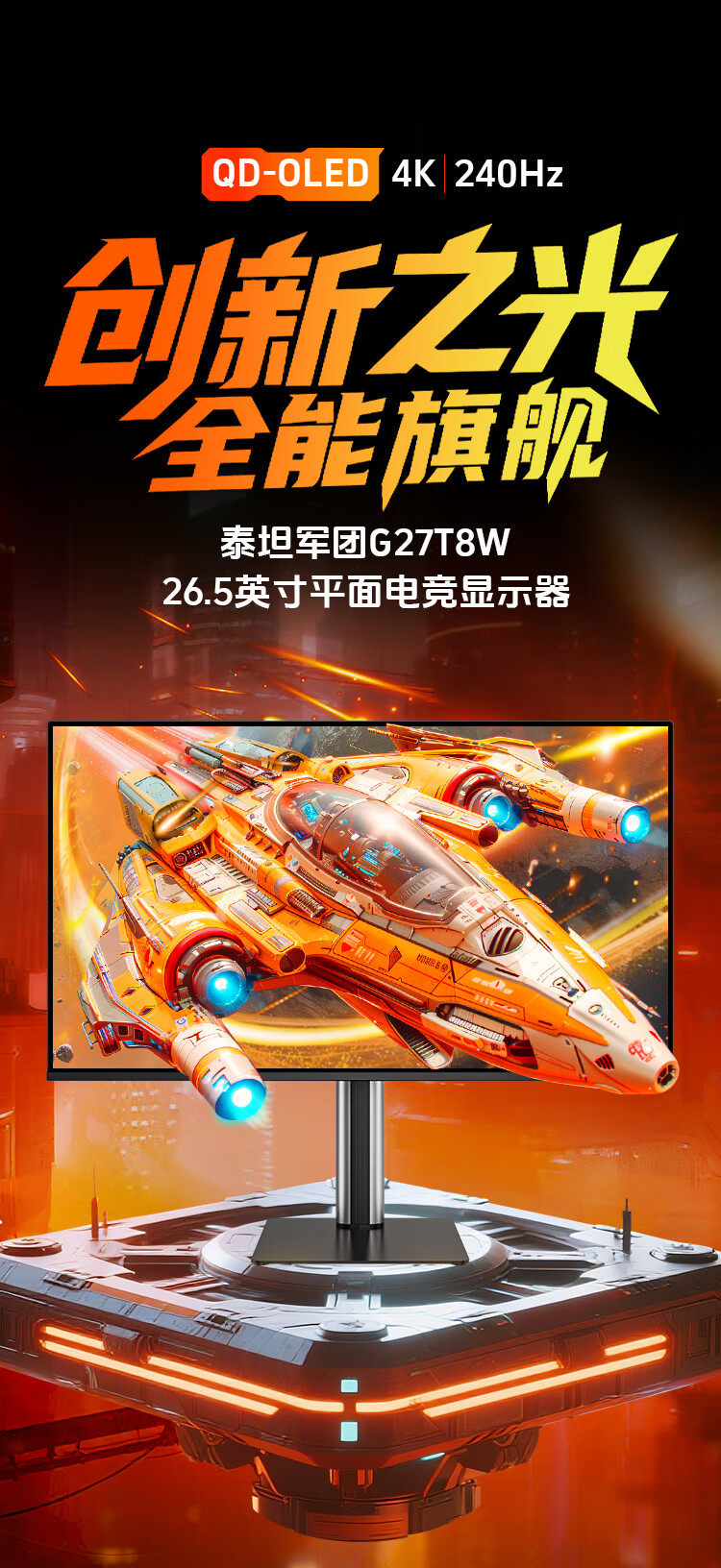 泰坦军团 26.5英寸 QD-OLED显示器 4K 240Hz 0.03ms专业电竞调校 防烧屏防眩光 内置音箱 原生10bit G27T8W
