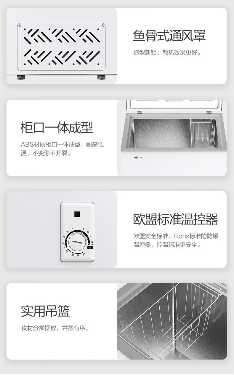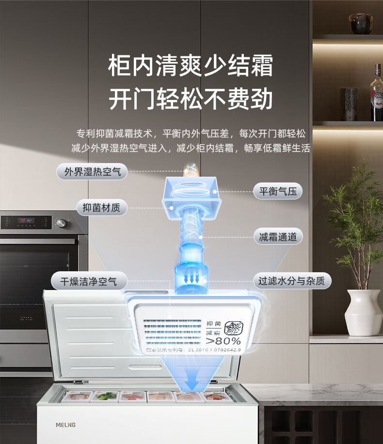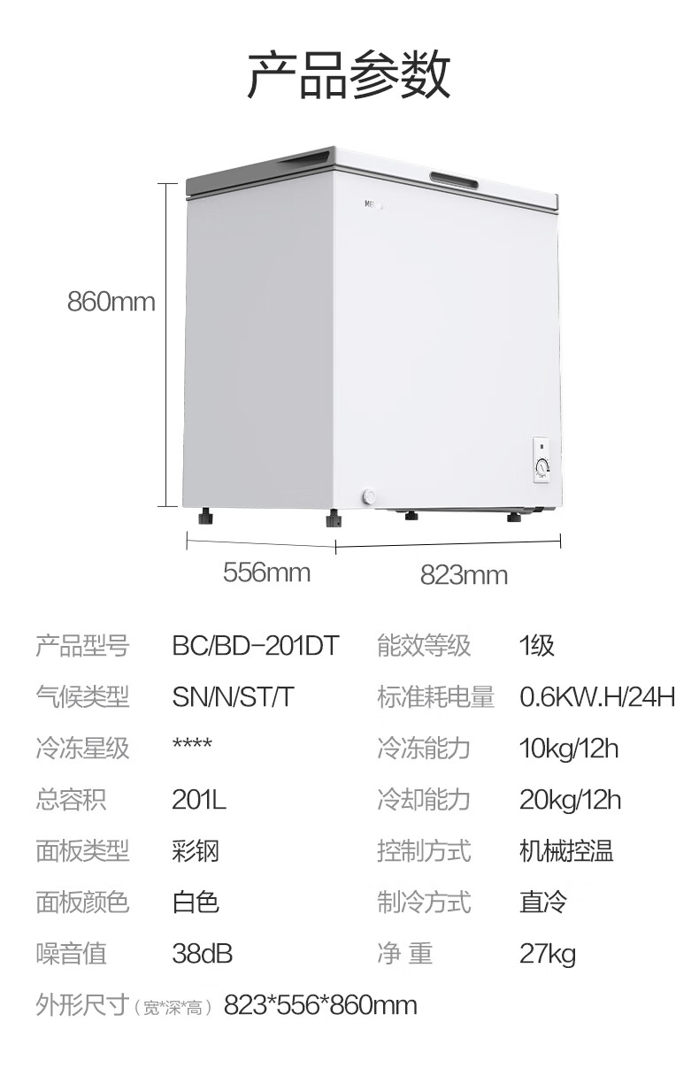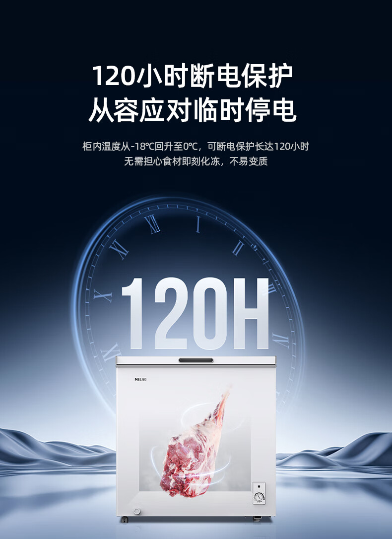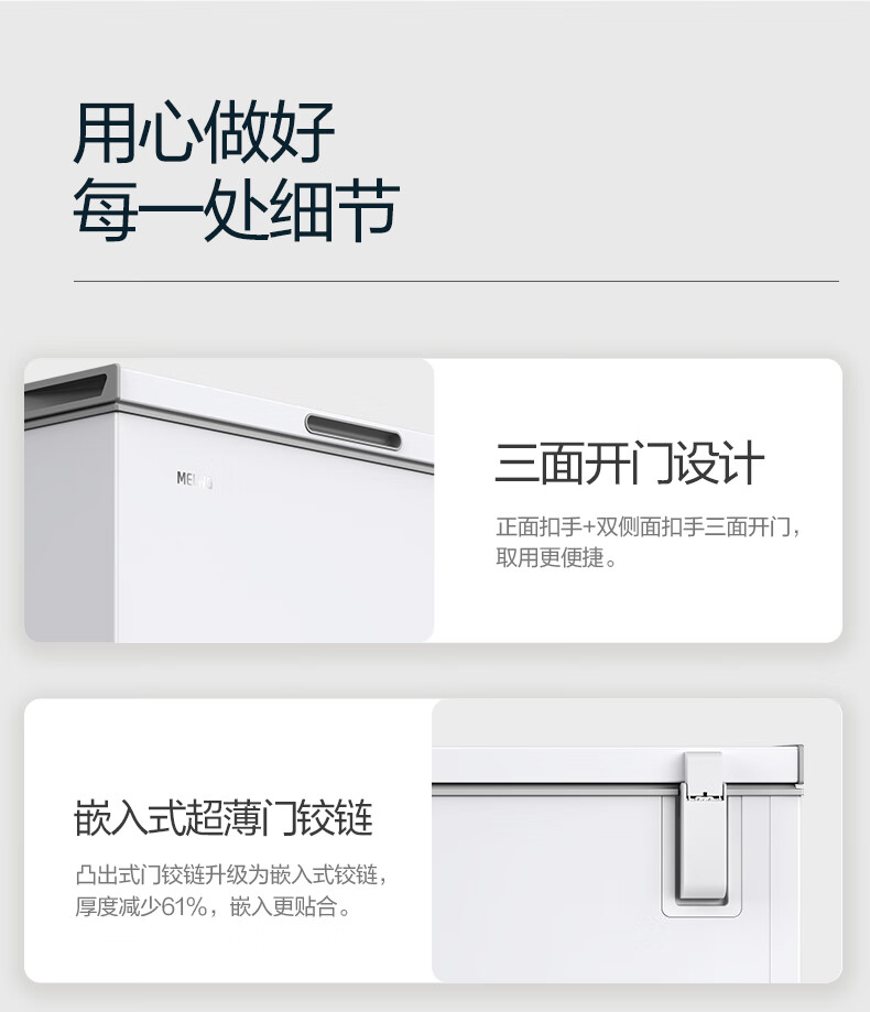 美菱(MeiLing)201升减霜84.1%家用冰柜冷藏冷冻转换冷柜-35°速冻一级能效卧式小冰箱BC/BD-201DT白国家补贴