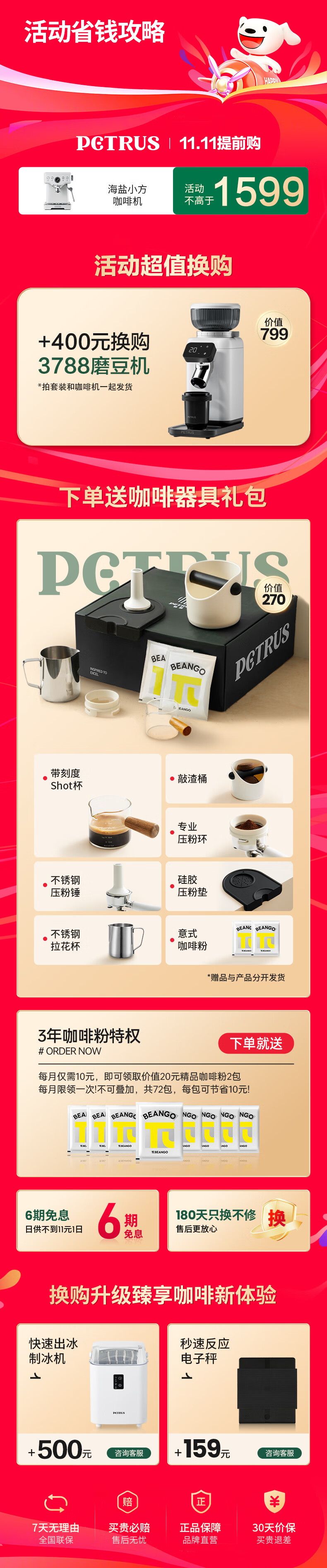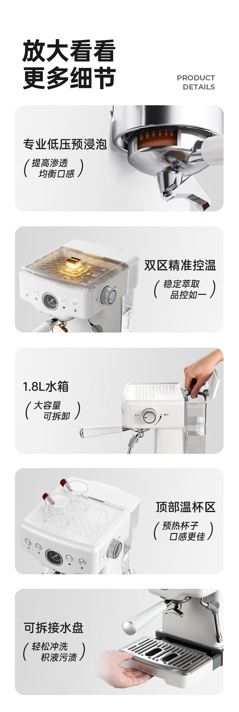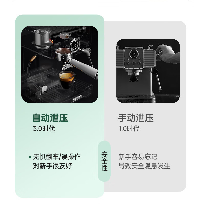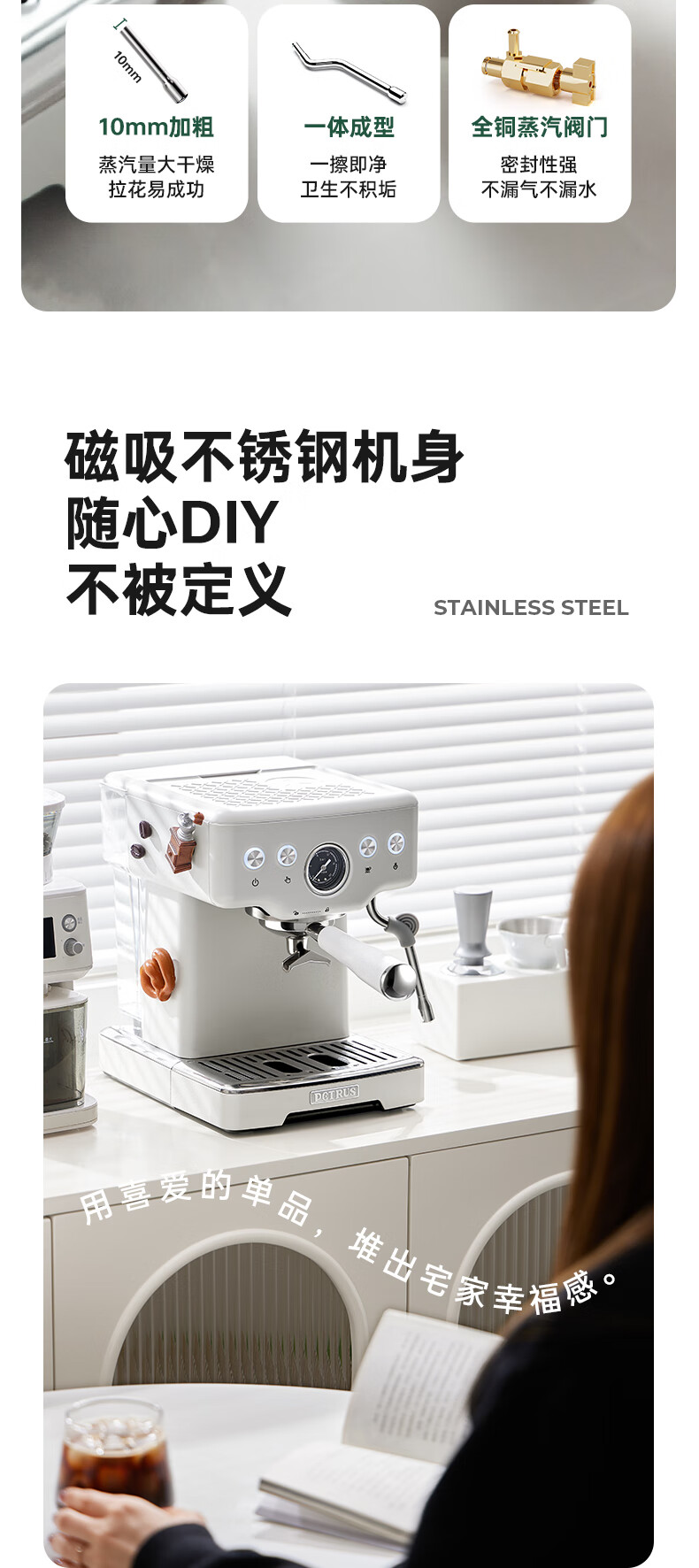 柏翠意式咖啡机浓缩家用小型58mm全半自动咖啡机蒸汽打奶泡精准控温海盐小方 PE3833 节日送礼物 3833+PE3788磨豆机套装