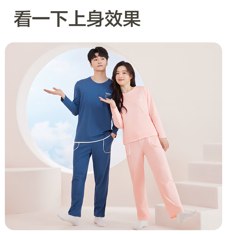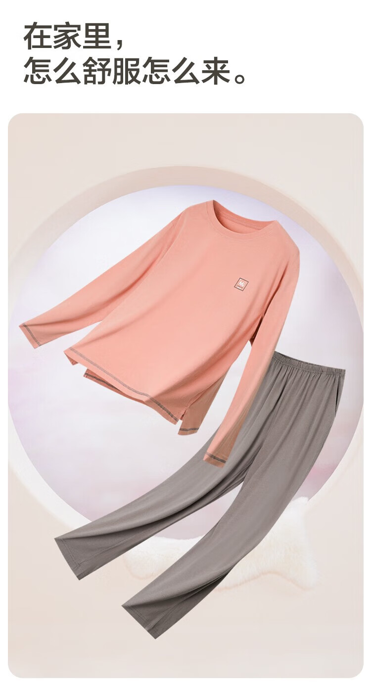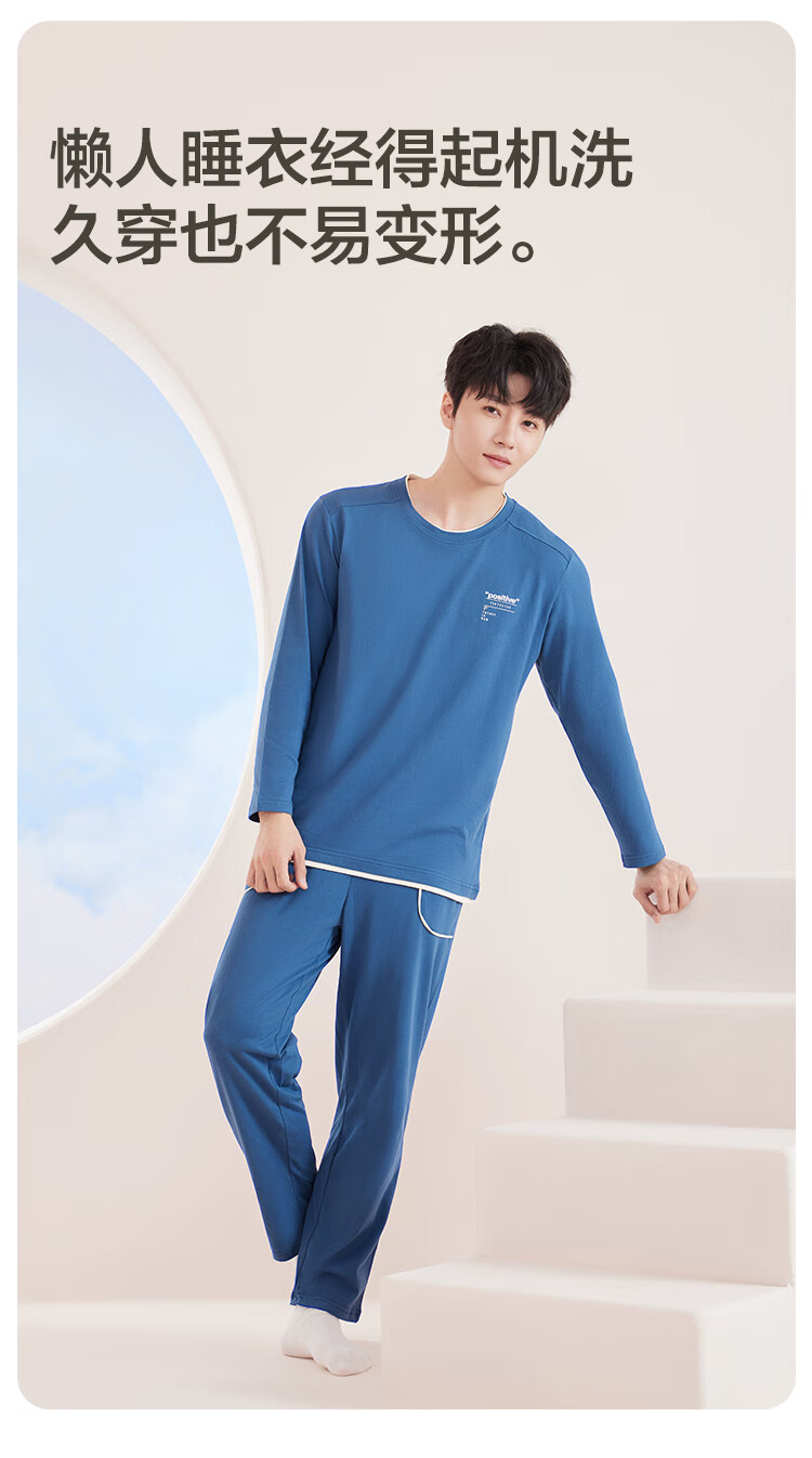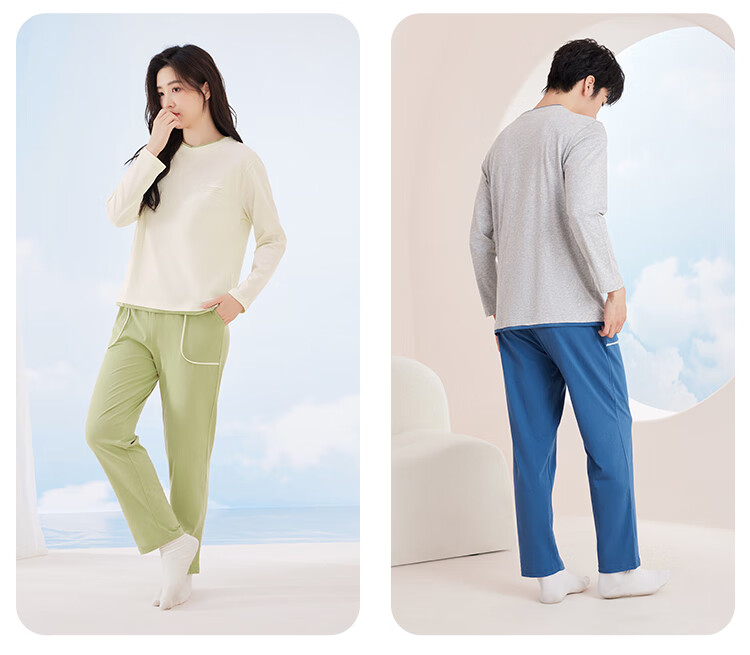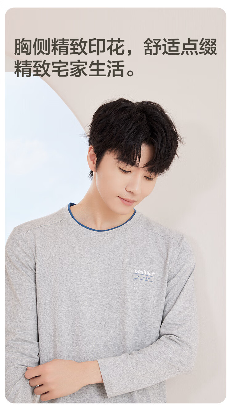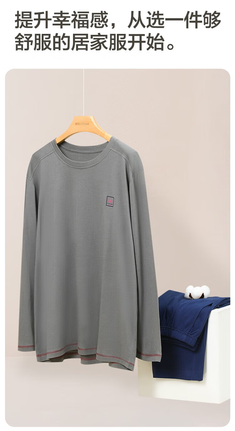 红豆居家(Hodohome)睡衣春秋全棉针织情侣套头柔软男女长袖家居服套装 礁石灰(男) XL 175/96A