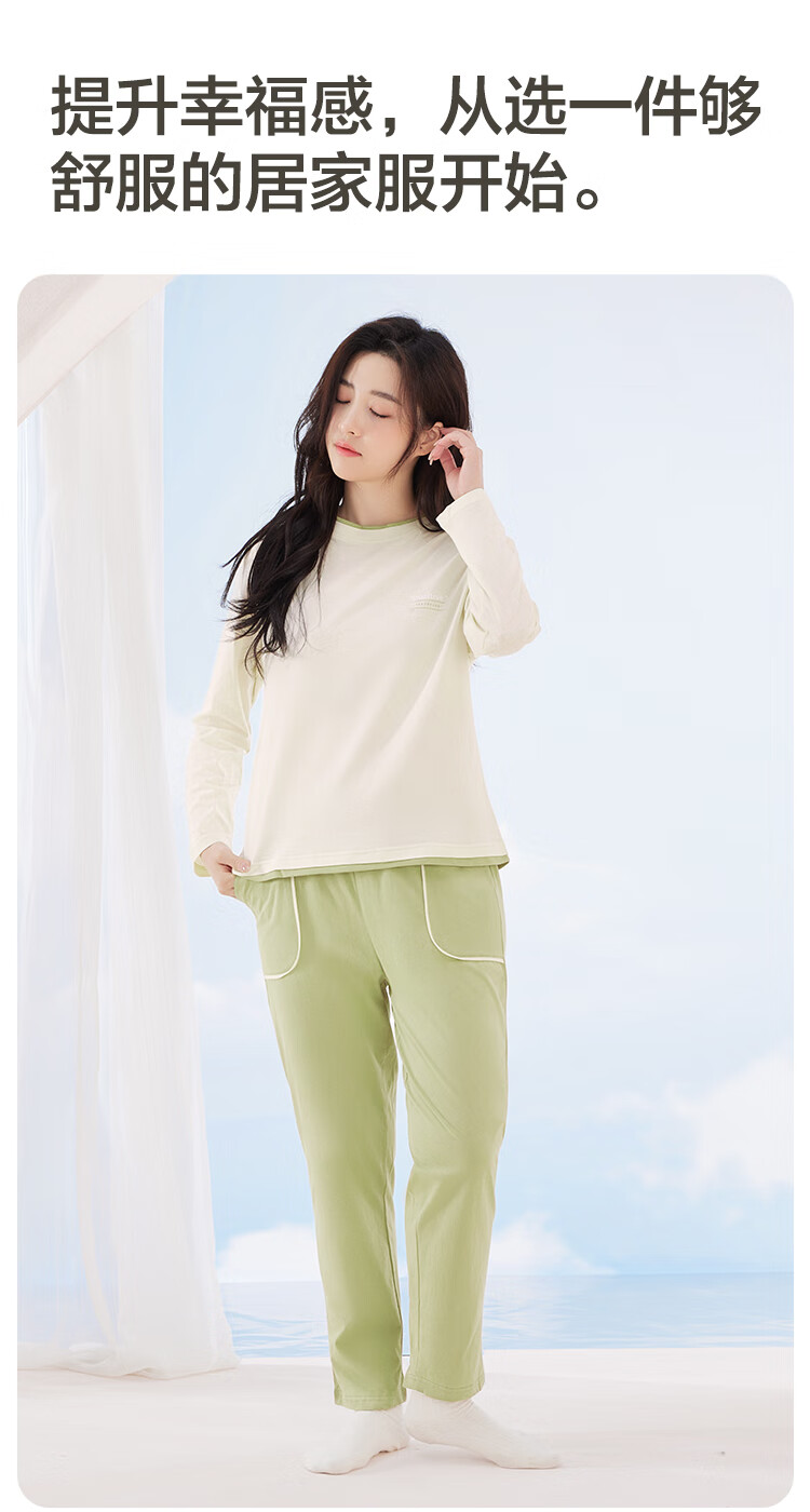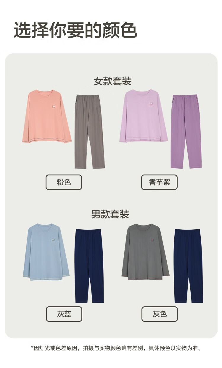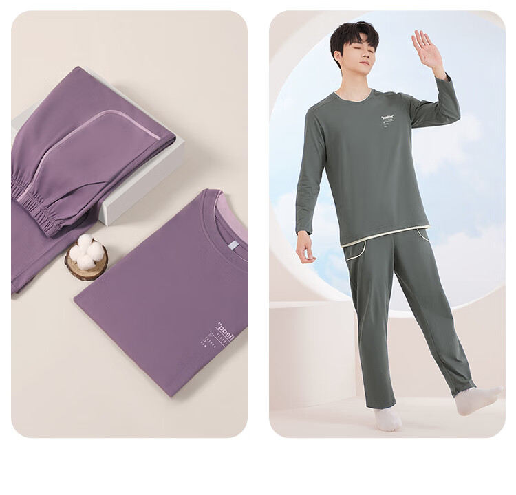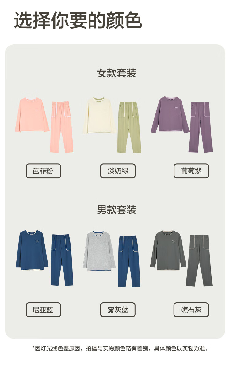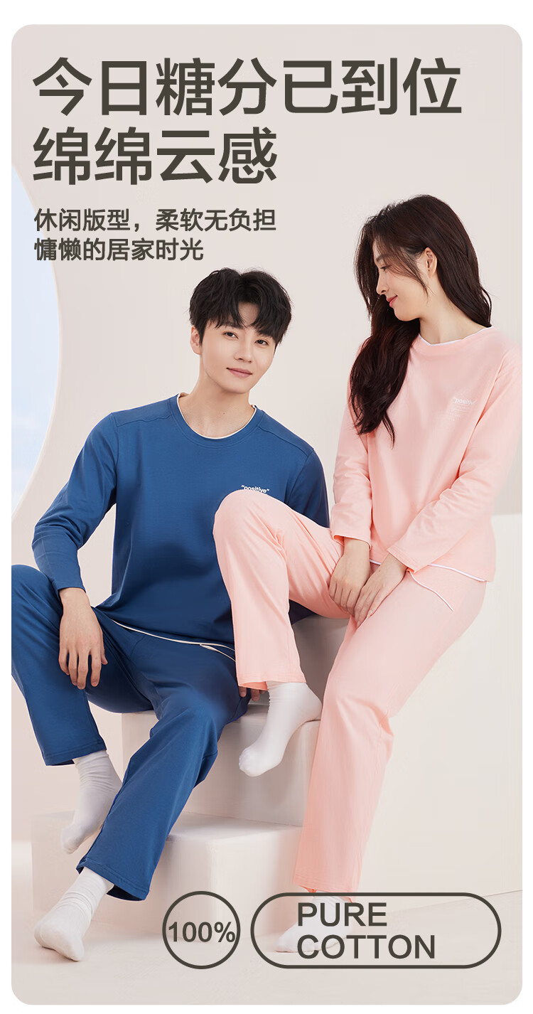 红豆居家(Hodohome)睡衣春秋全棉针织情侣套头柔软男女长袖家居服套装 礁石灰(男) XL 175/96A