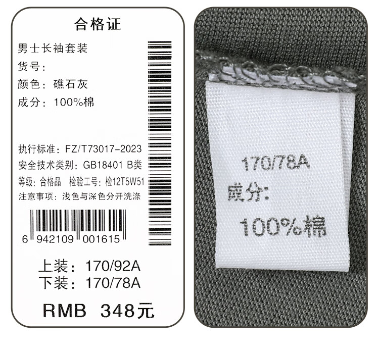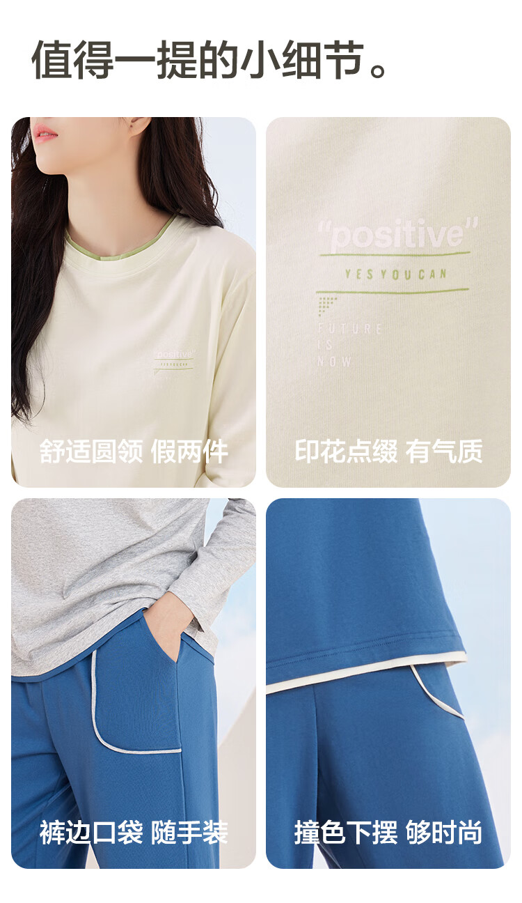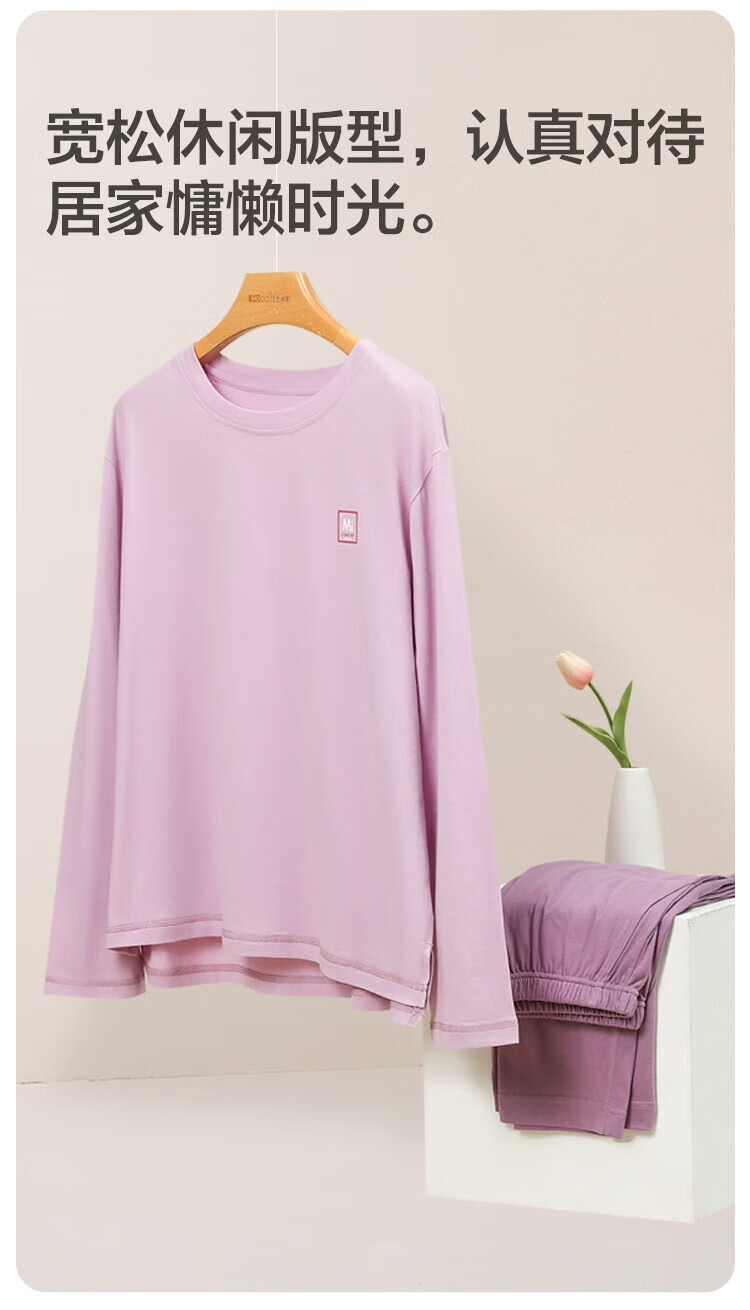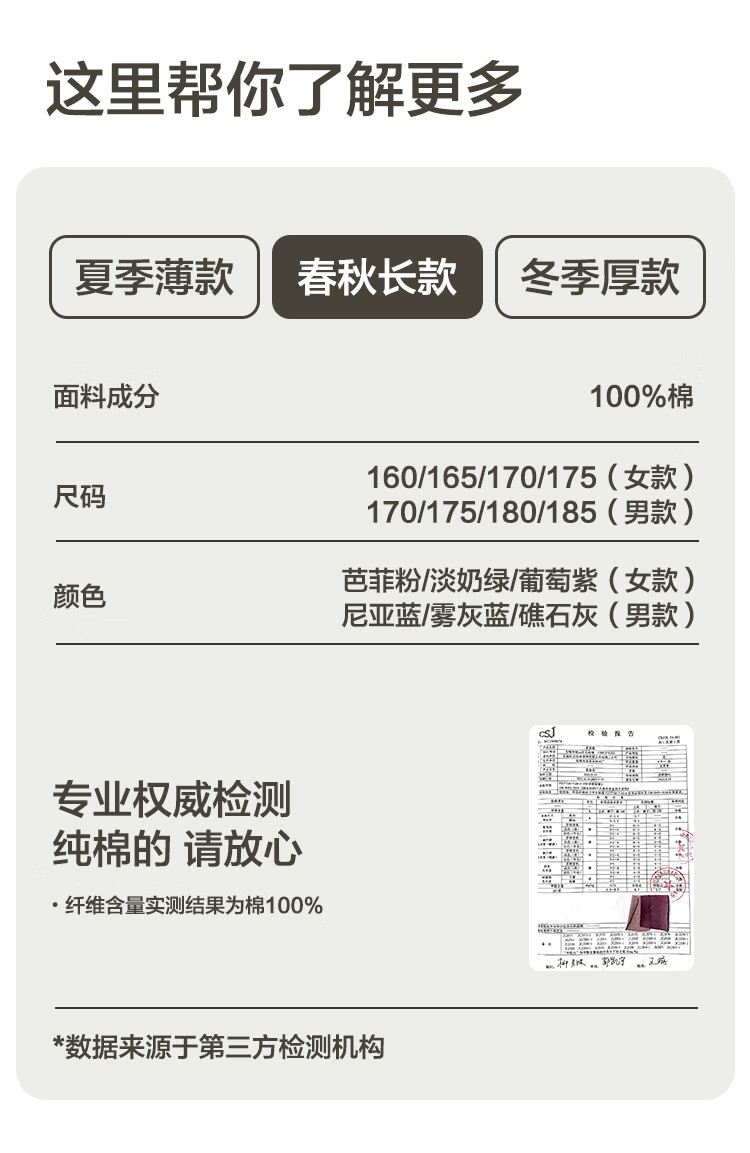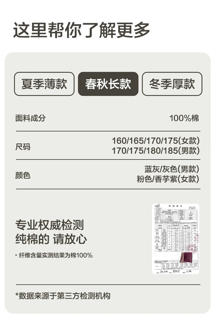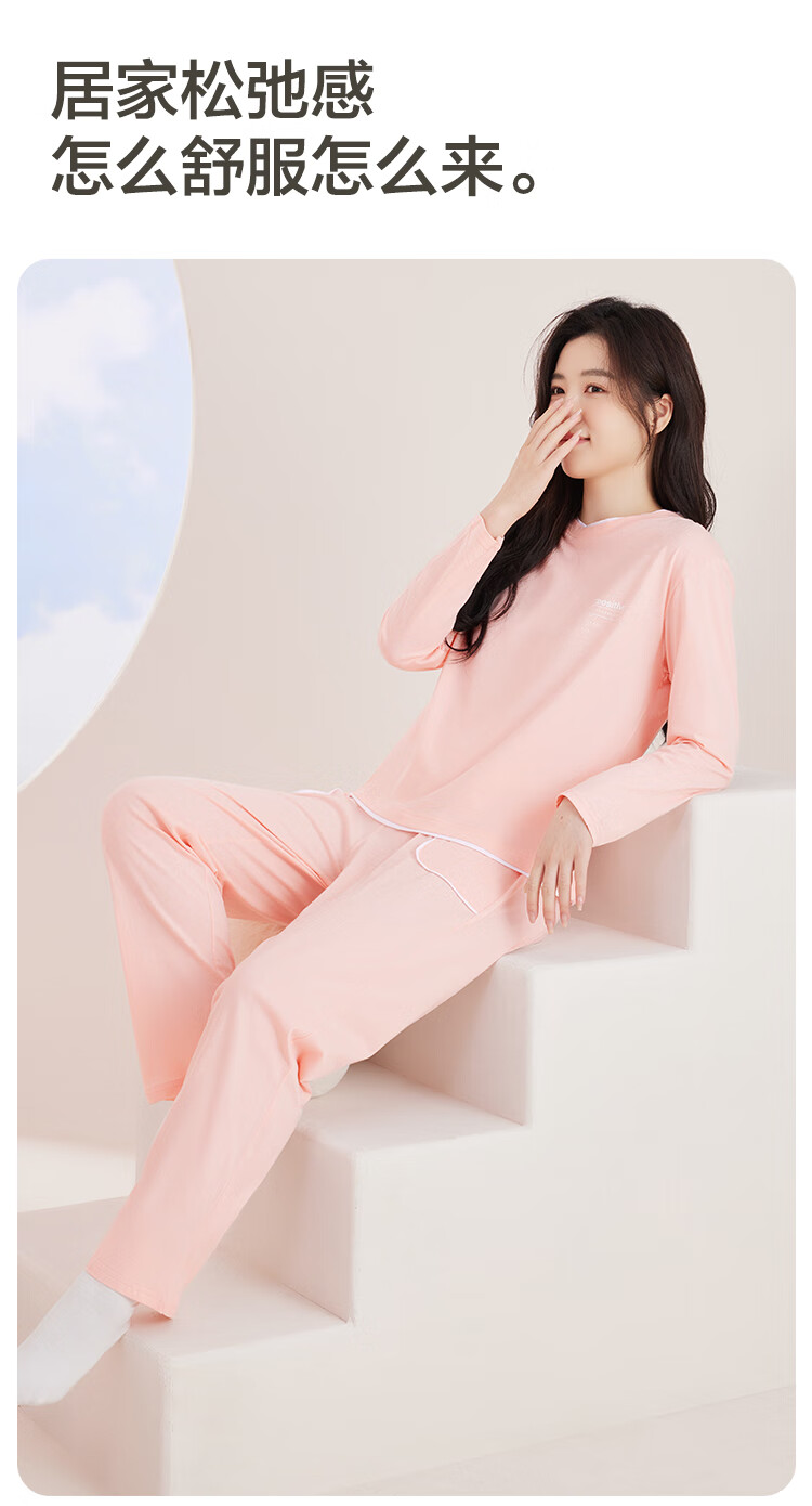 红豆居家(Hodohome)睡衣春秋全棉针织情侣套头柔软男女长袖家居服套装 礁石灰(男) XL 175/96A