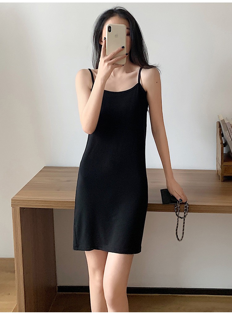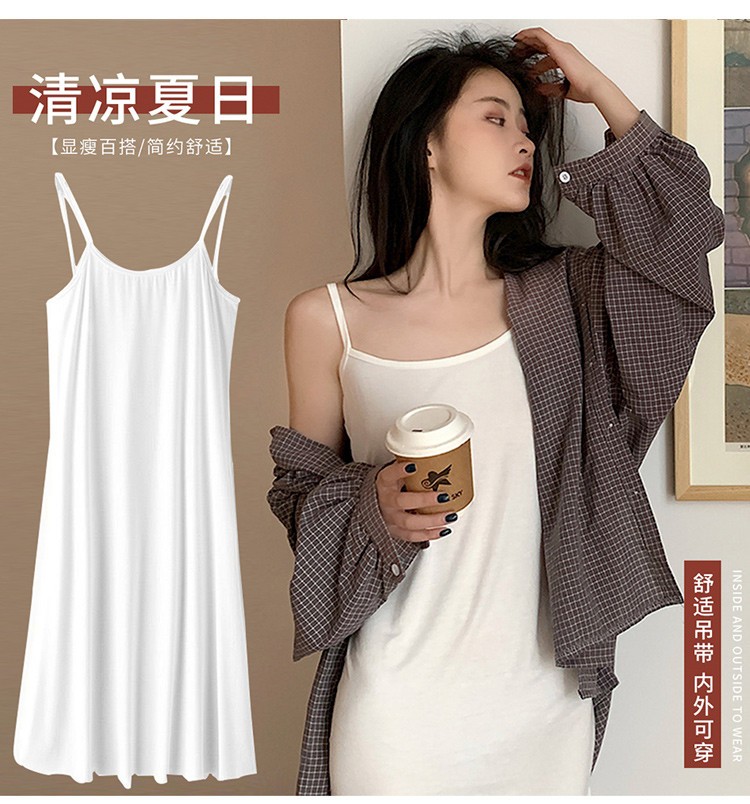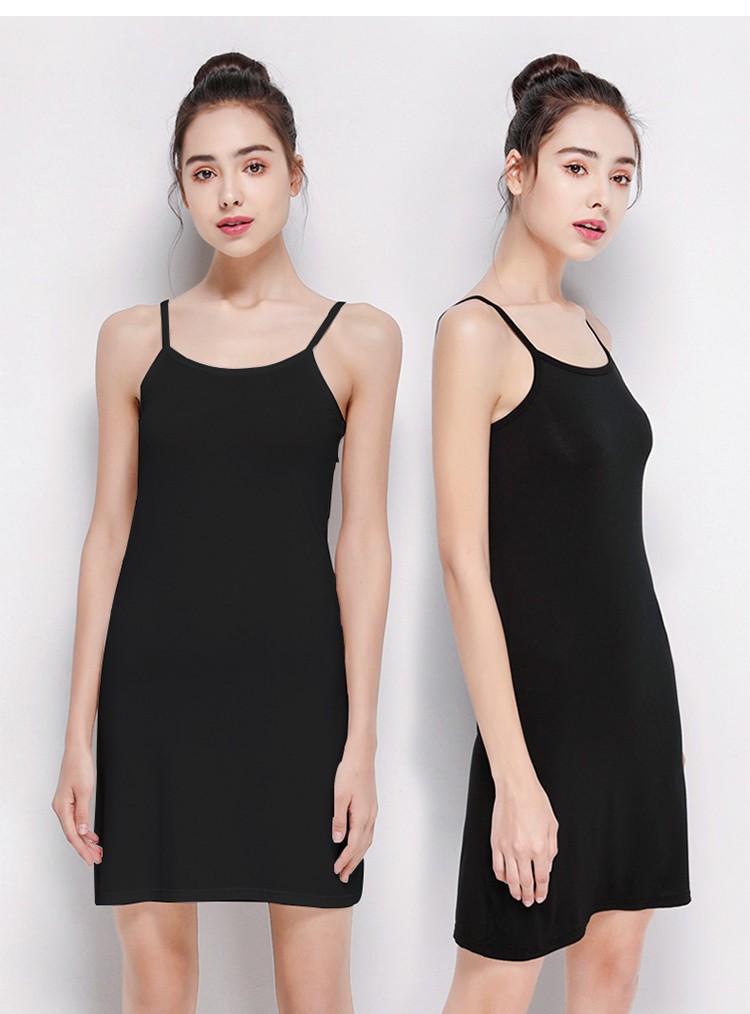 莫代尔睡裙可外穿吊带裙女内搭中长款宽松无袖背心裙 黑色 均码