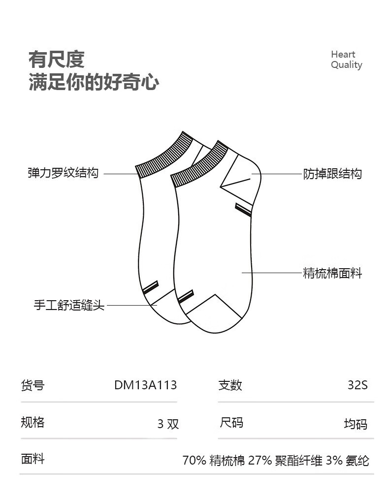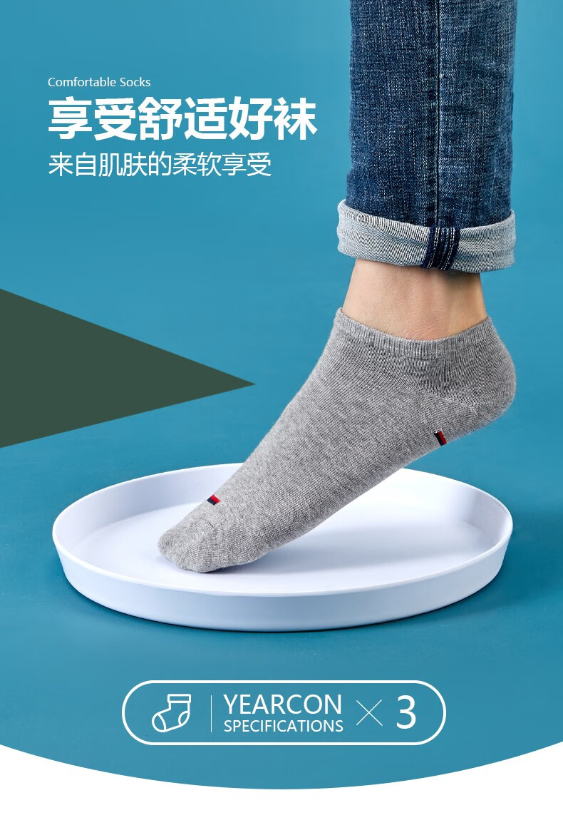 意尔康男士袜子春秋季袜子男棉袜吸汗男士短袜运动袜篮球袜百搭休闲袜 款式一【3双装-7A抗菌】 黑色*1 白色*2 均码 常规款均码38-44