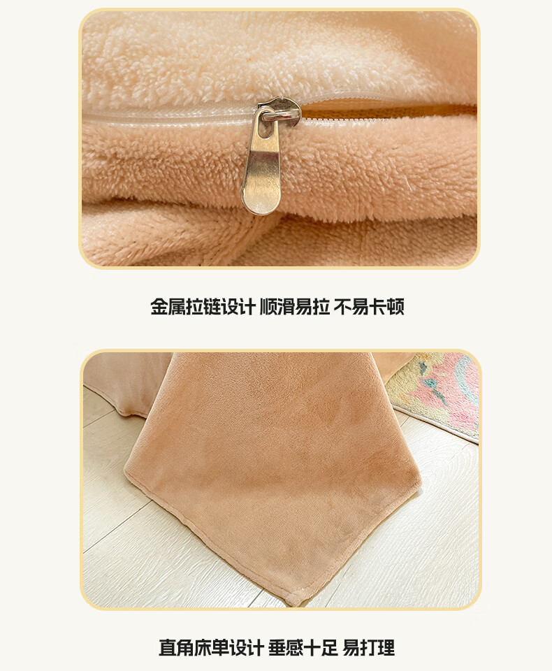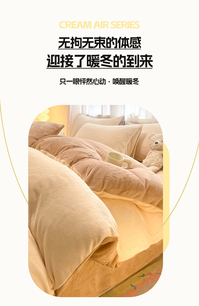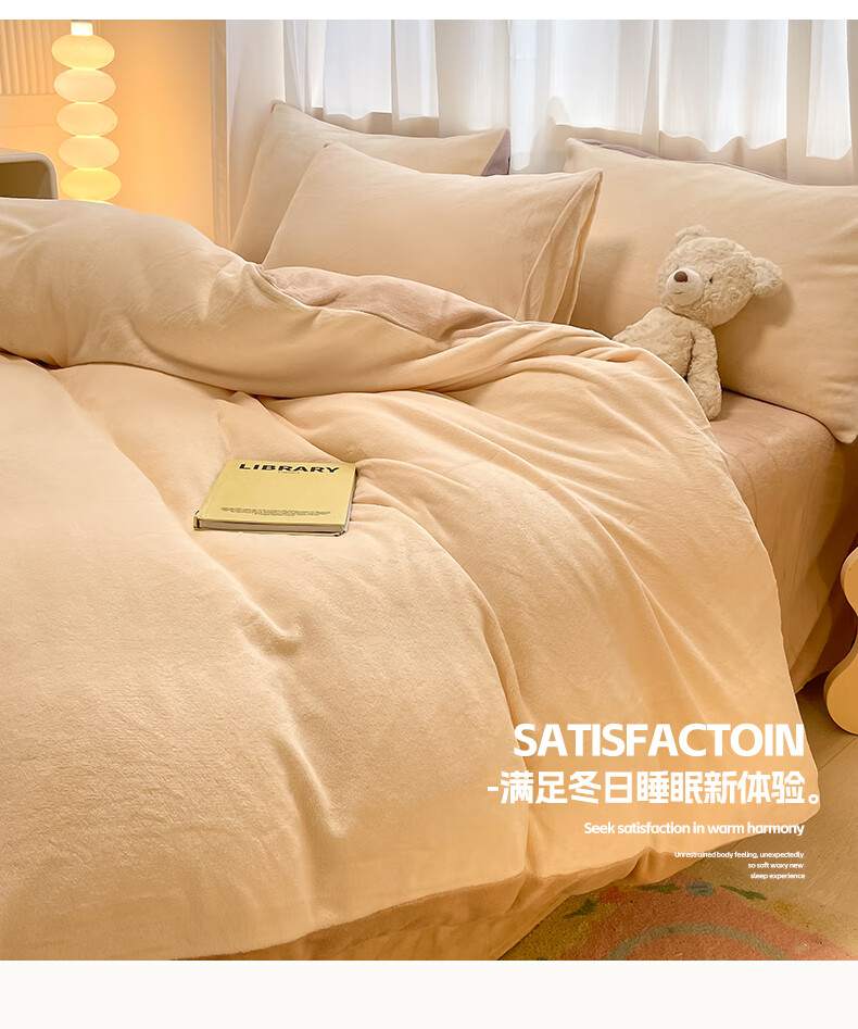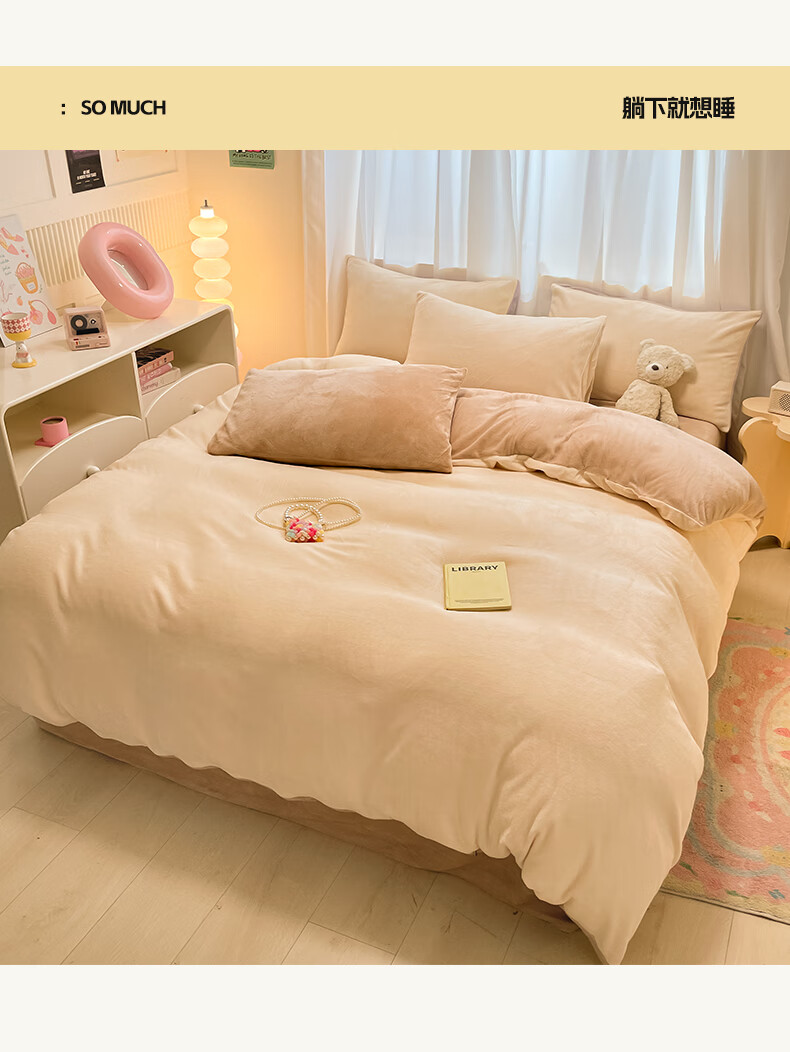 猫人(MiiOW)纯色牛奶绒四件套 冬季加厚珊瑚绒床单被套罩床笠款三件套 香甜芋泥 1.8 床笠款 四件套(被套200*230cm)