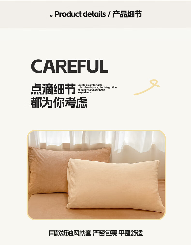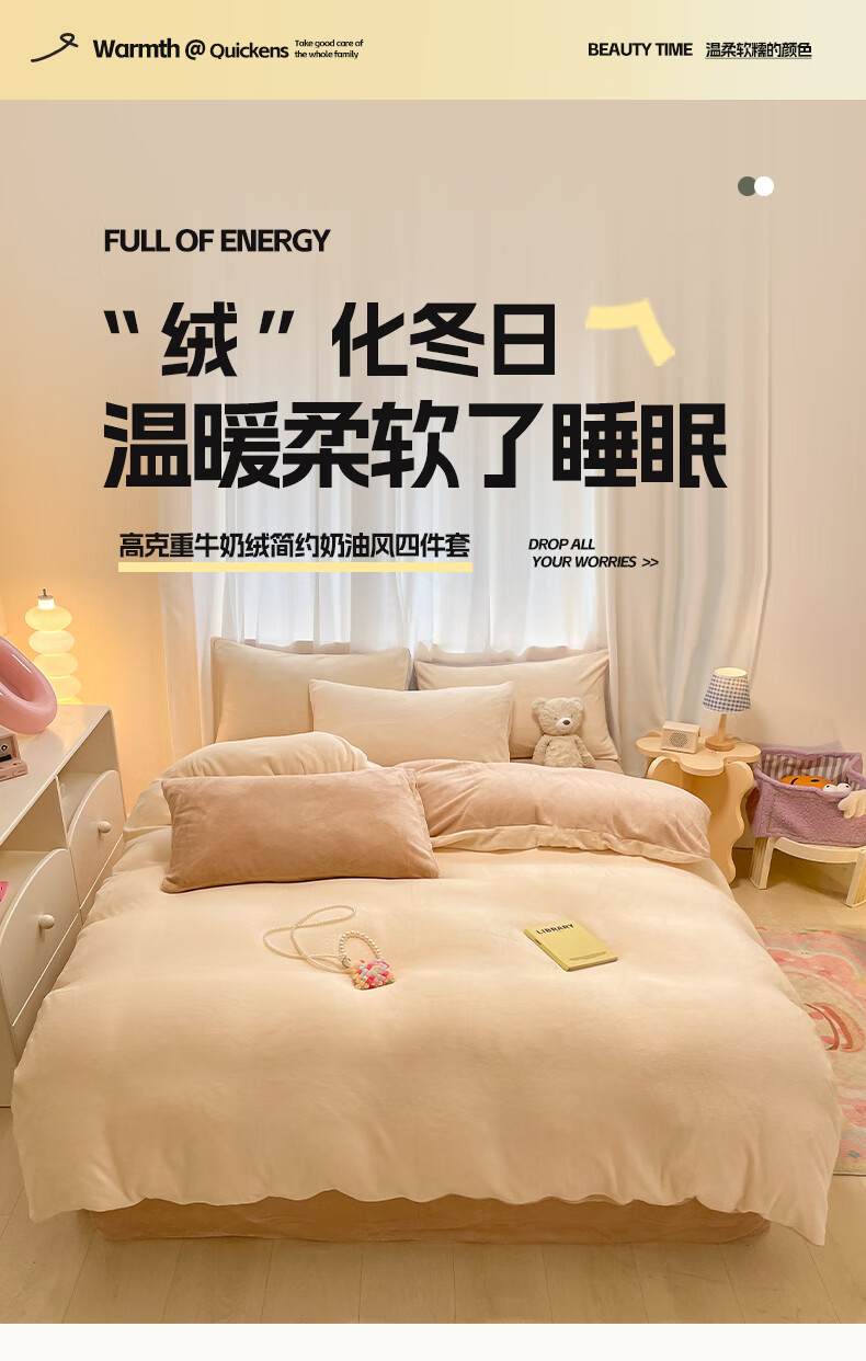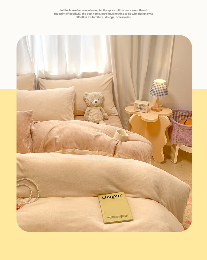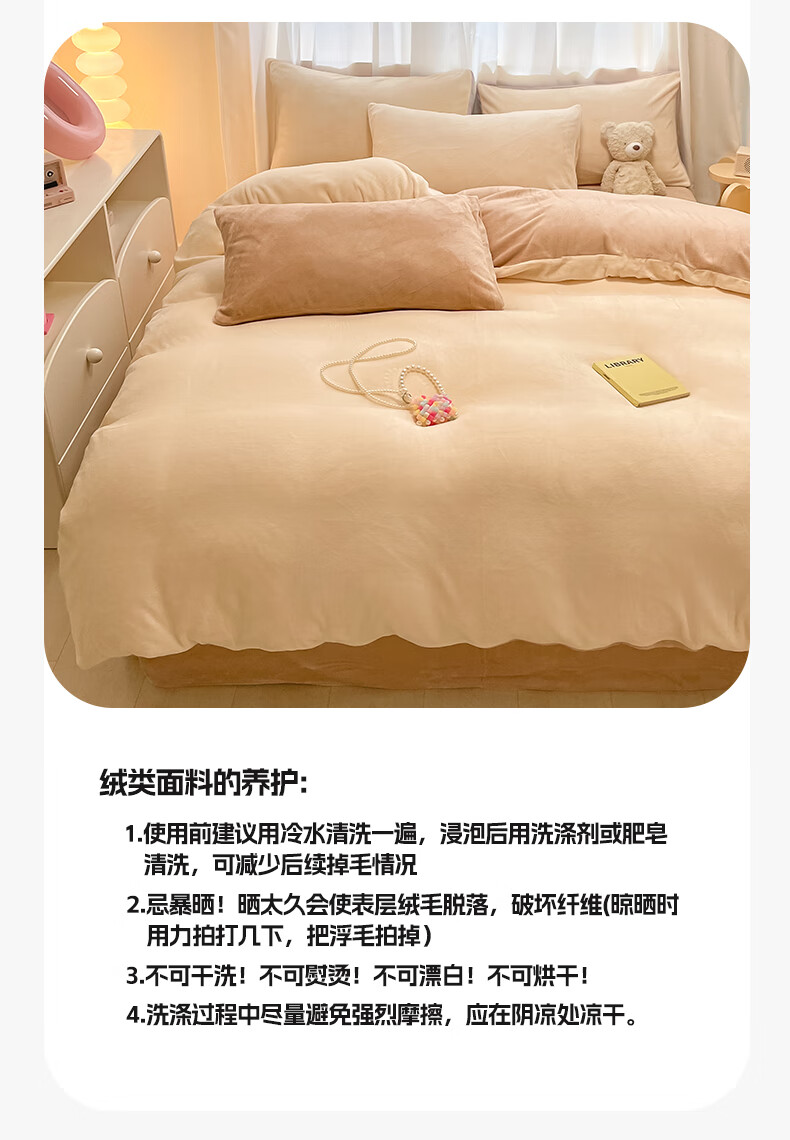 猫人(MiiOW)纯色牛奶绒四件套 冬季加厚珊瑚绒床单被套罩床笠款三件套 香甜芋泥 1.8 床笠款 四件套(被套200*230cm)