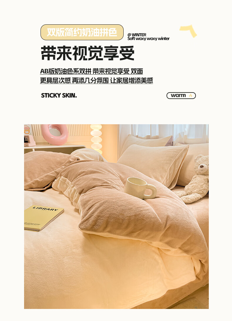 无印良品兔毛绒床上用品四件套秋冬牛奶绒2025新款高端轻奢床单被套三件套 罗拉-奶白【加厚保暖舒适裸睡】 1.5/1.8m 床单款 四件/被套200*230