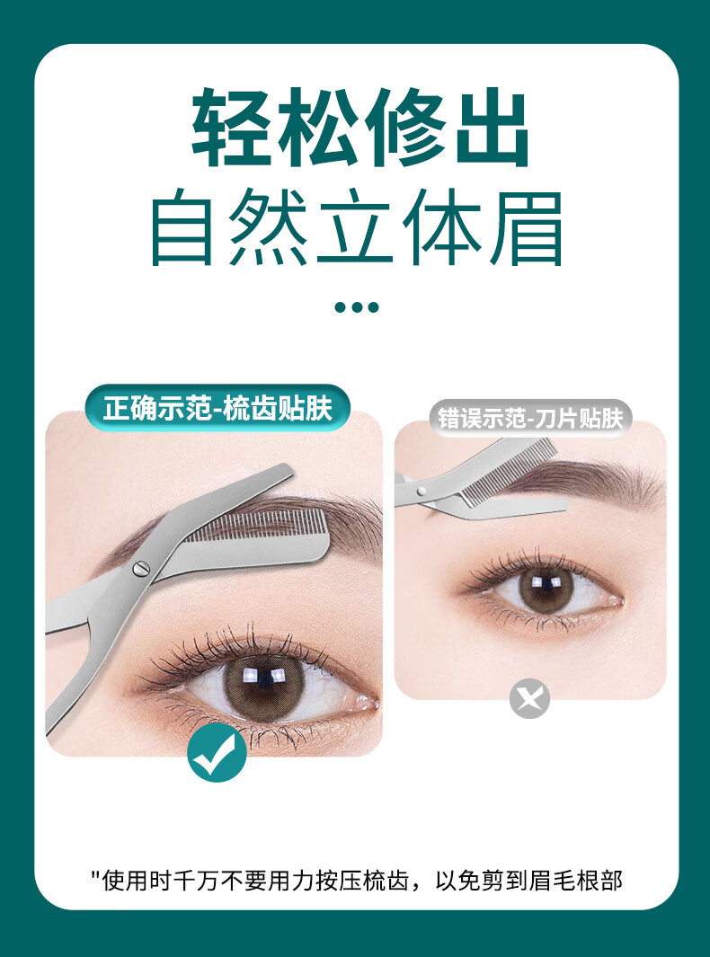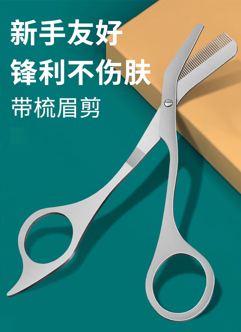 AILUKI日本修眉毛剪刀带眉梳女士专用安全型刮眉毛修理器男士修眉刀套装 带梳眉剪