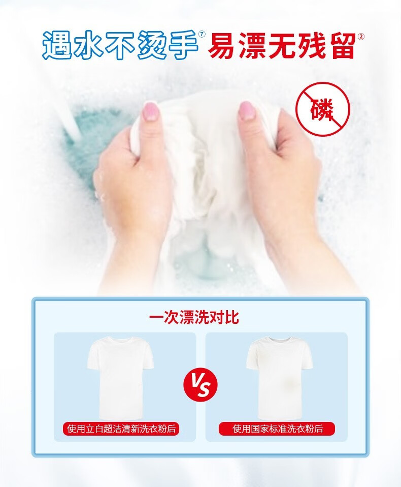 立白超洁清新洗衣粉去污去渍3倍洁净力低泡易漂开学季学生校服可用 超洁245*1