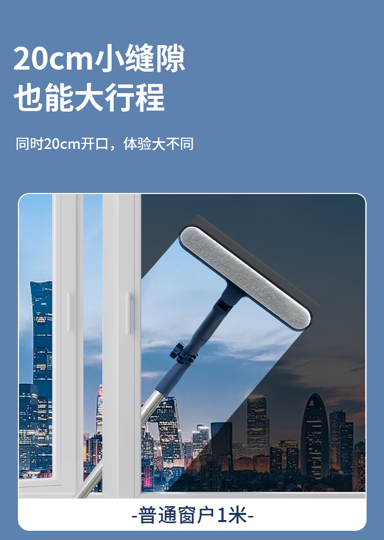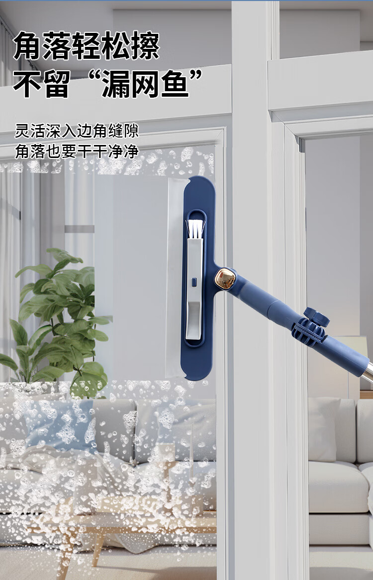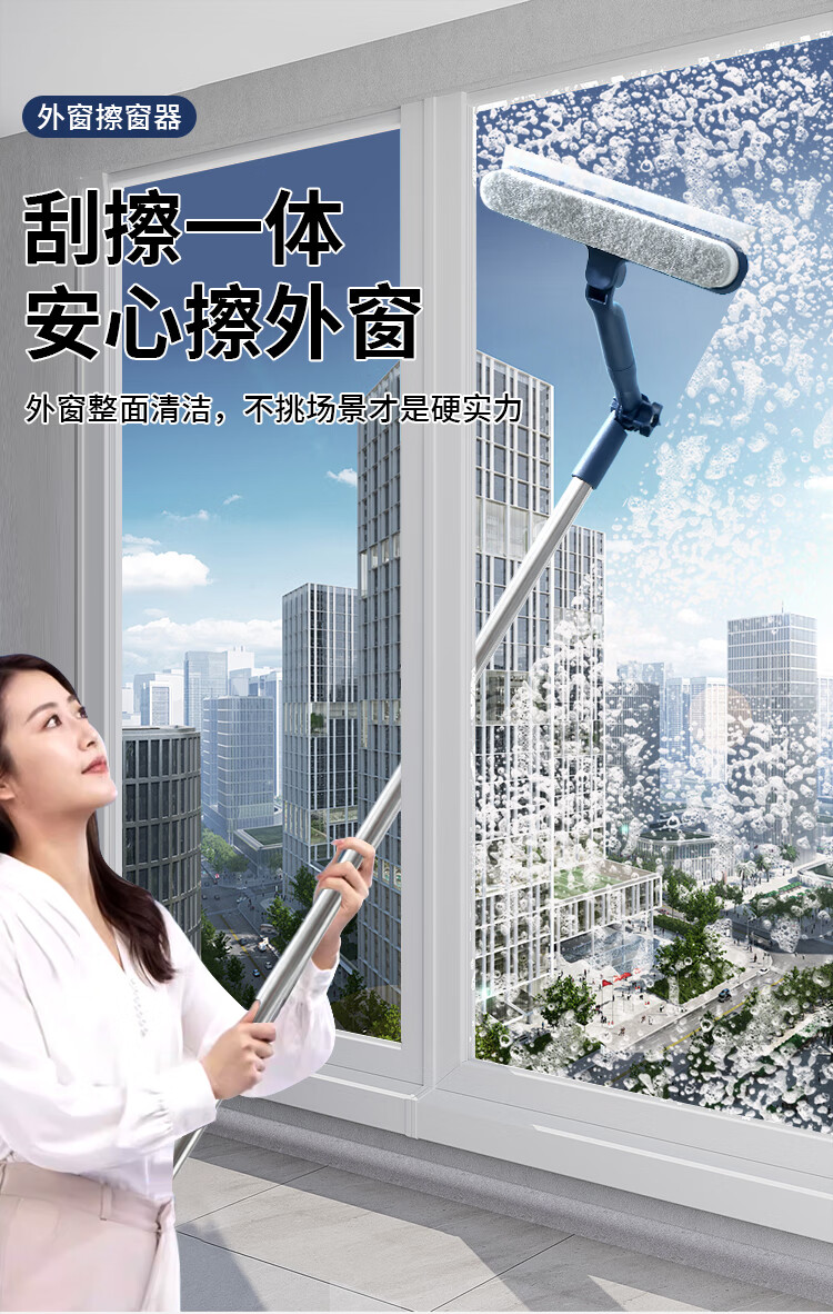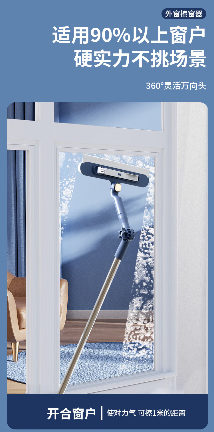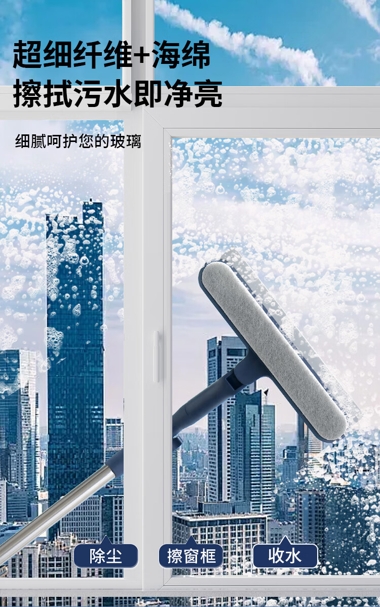 WCZ德国擦玻璃神器家用高层窗外专用玻璃清洁刮水器保洁专用工具2025 新升级可拆卸海绵头蓝色加缝隙刷