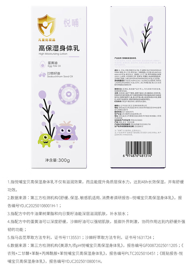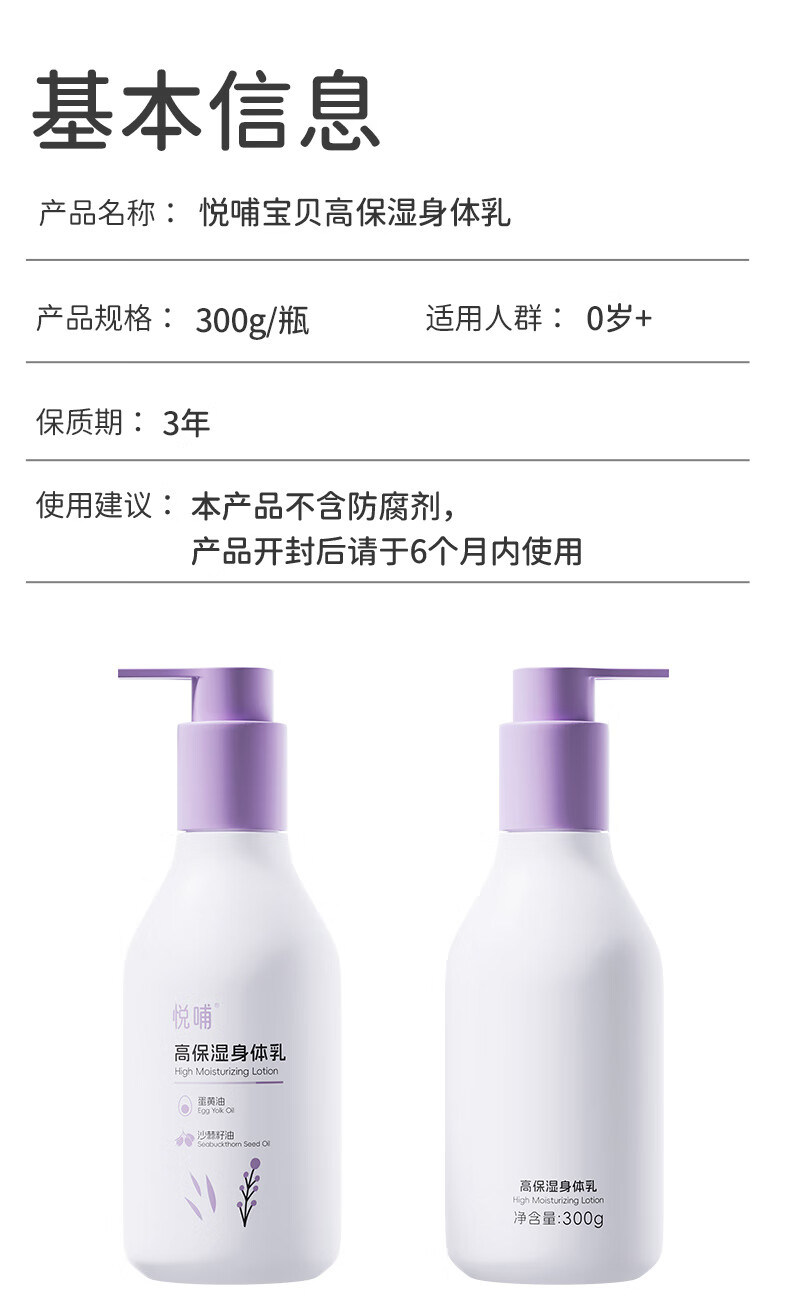 悦哺宝宝润肤身体乳 婴儿滋润保湿乳儿童干燥肌舒缓精华乳 新生儿可用 【升级款】身体乳 300g