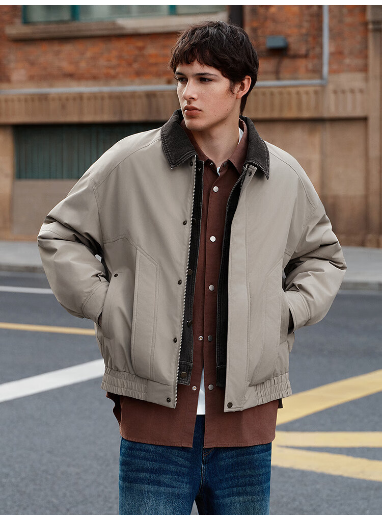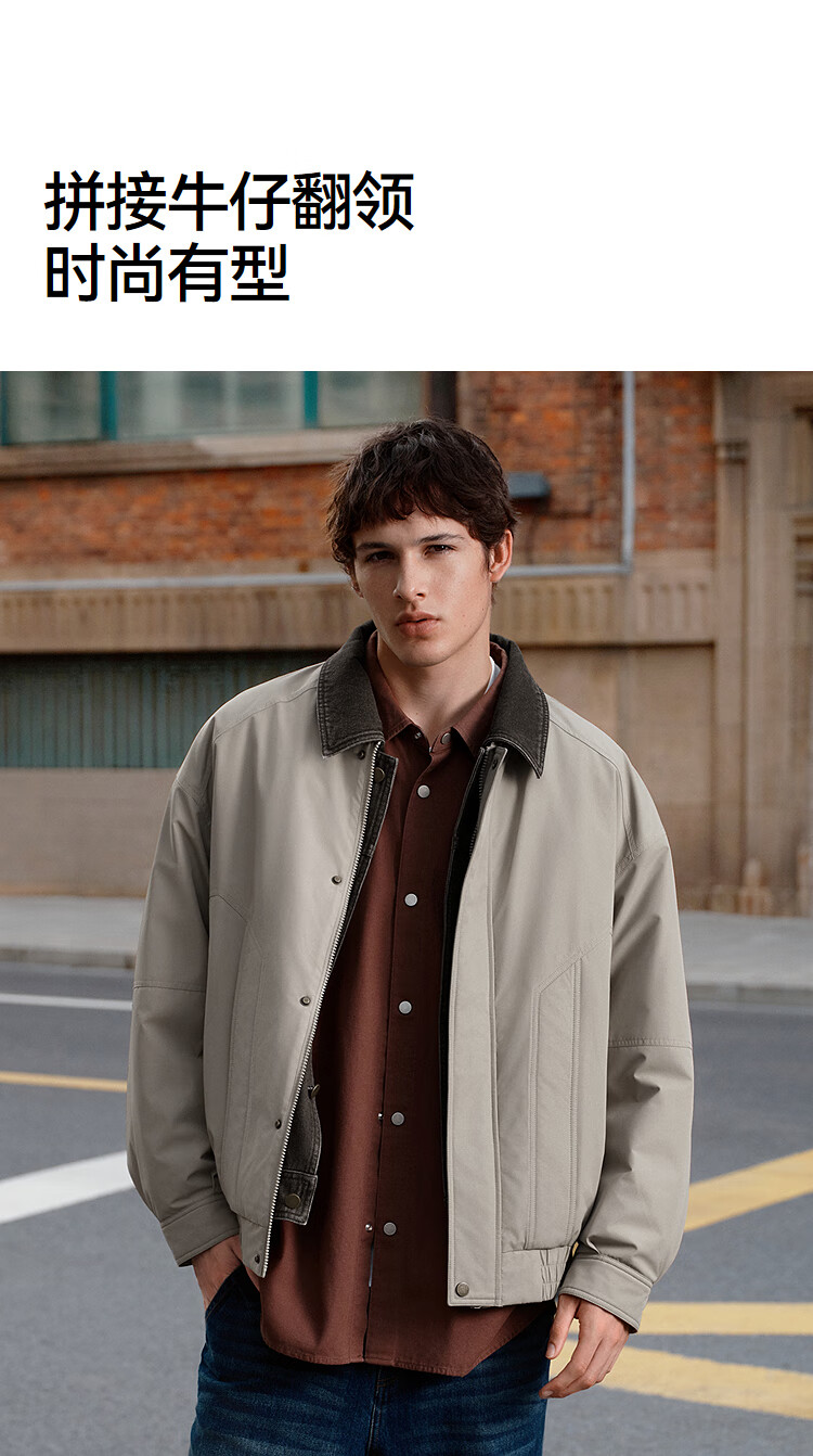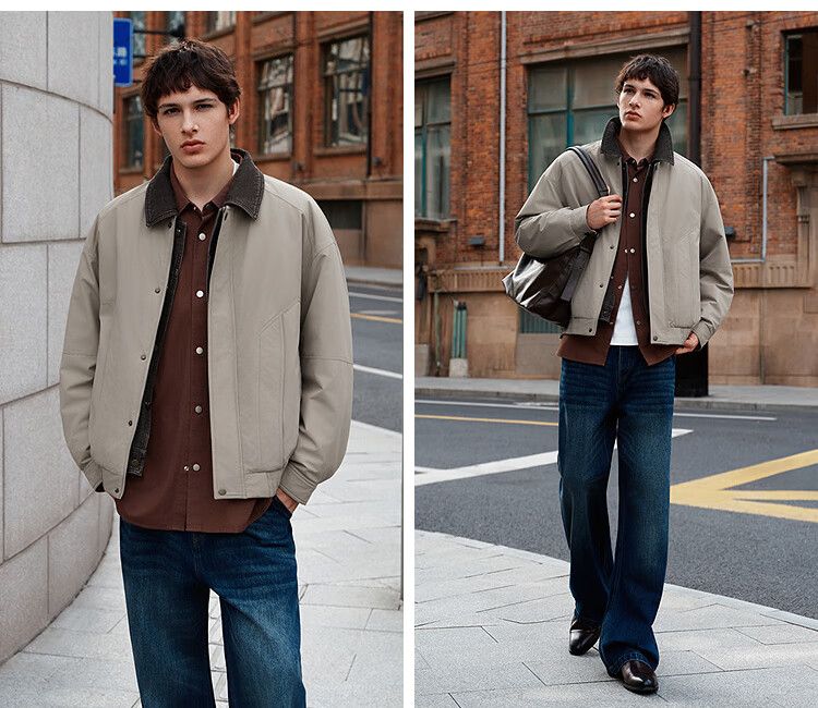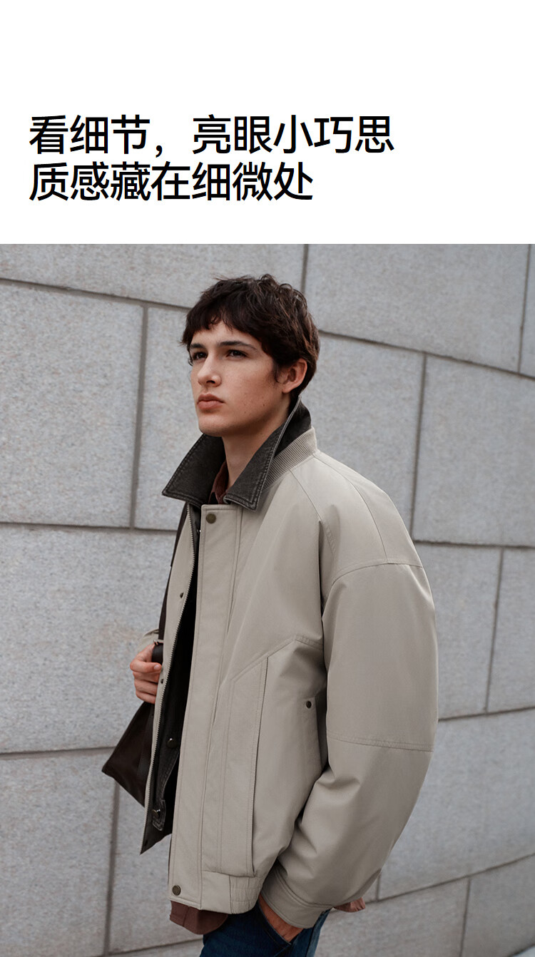 森马(Semir)棉服男假两件飞行员外套拼接牛仔翻领棉衣冬2025新款oversize 浅驼50029 L