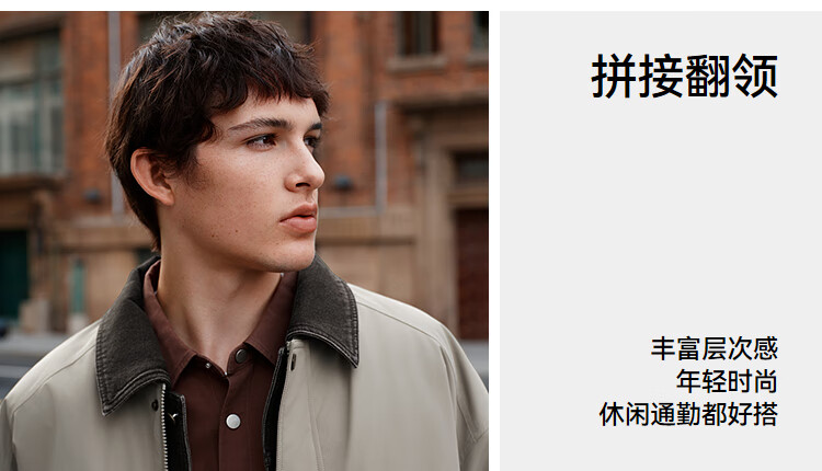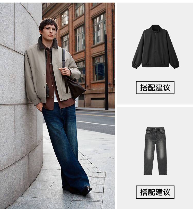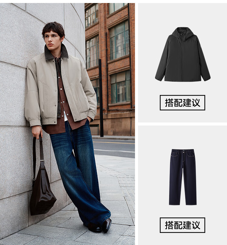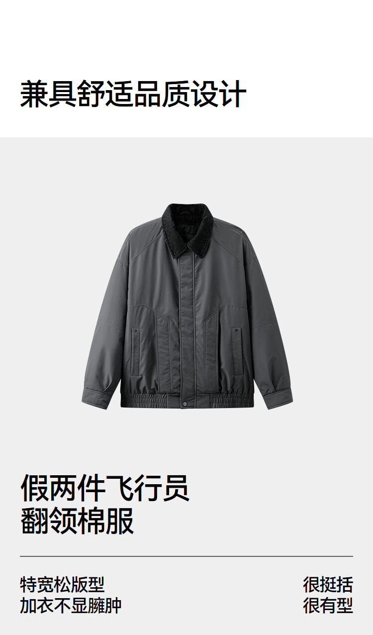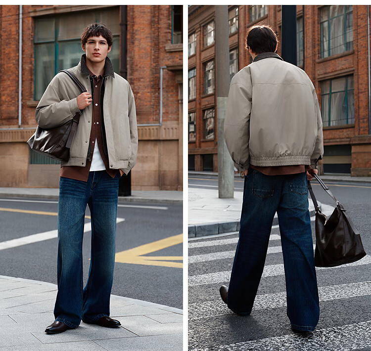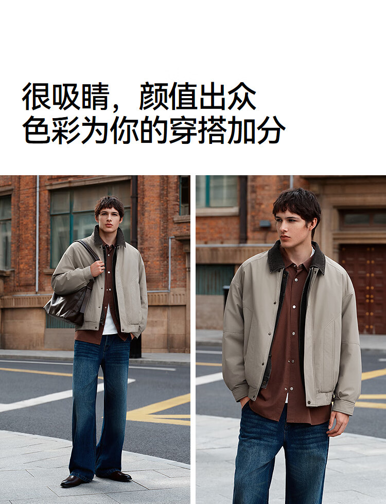 森马(Semir)棉服男假两件飞行员外套拼接牛仔翻领棉衣冬2025新款oversize 浅驼50029 L