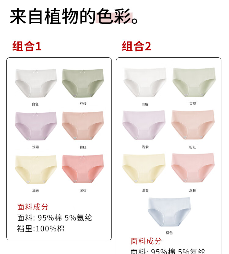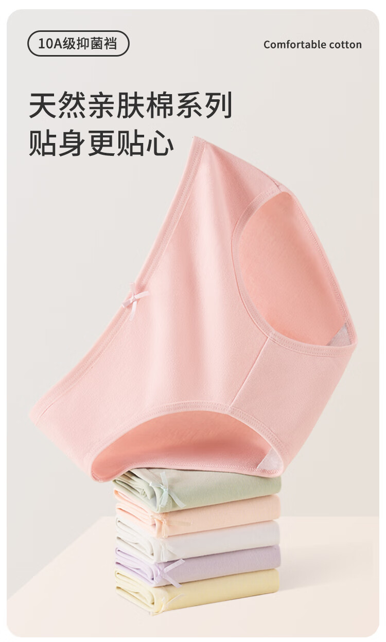 浪莎女士内裤女纯棉10A抑菌裆舒适透气中腰大码少女三角裤短裤头6条装