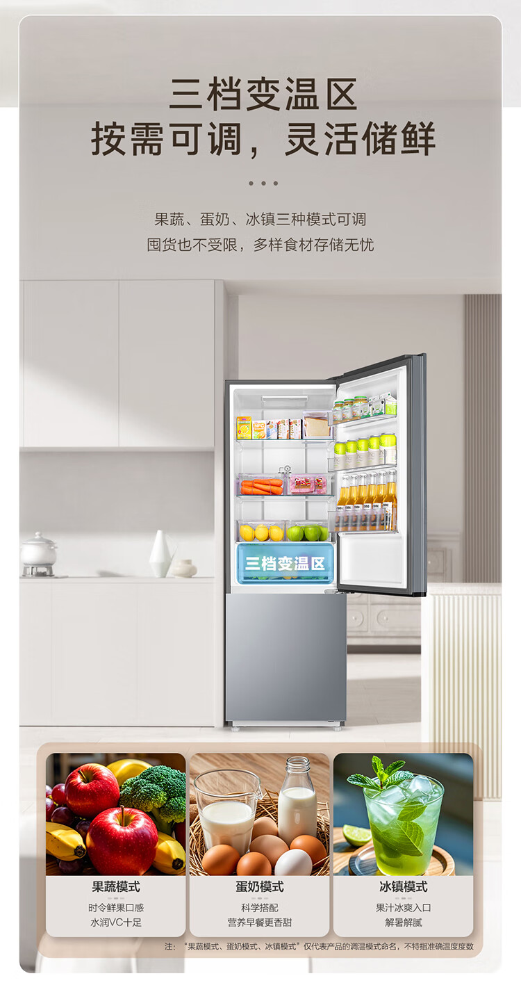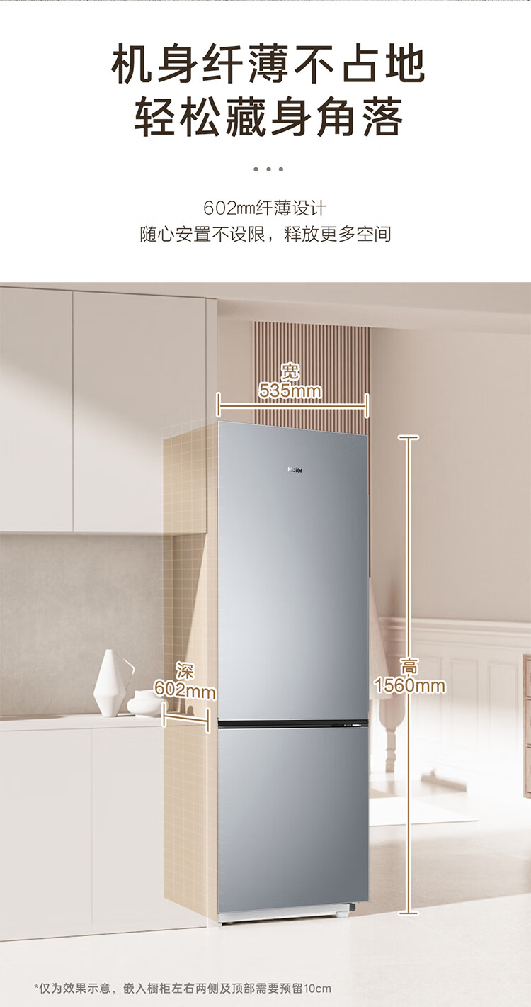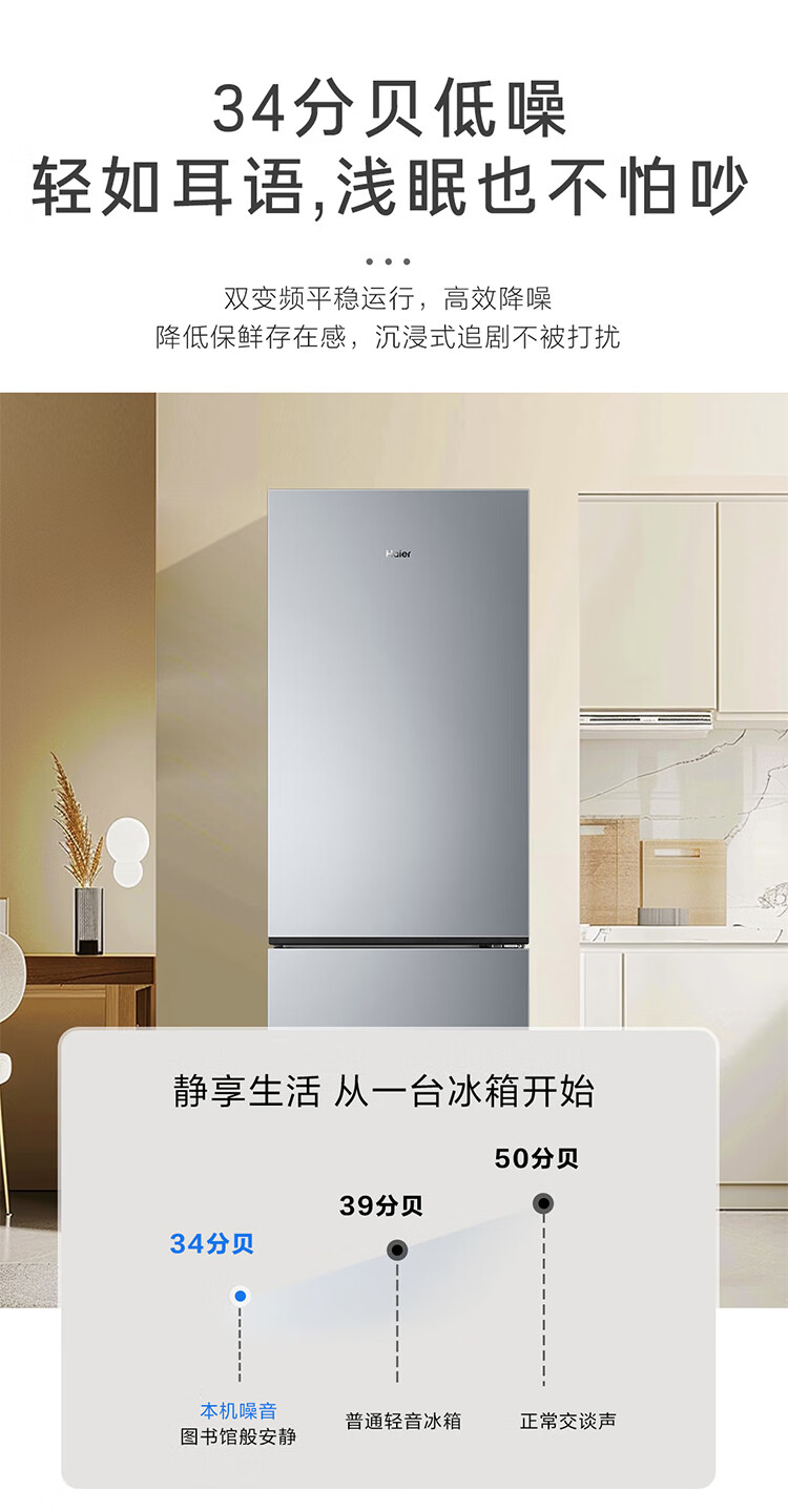 海尔(Haier)冰箱243升双开门两门风冷无霜一级能效小型宿舍公寓租房三档变温双变频节能家用电冰箱 小型两门+三档变温+健康黑金净化