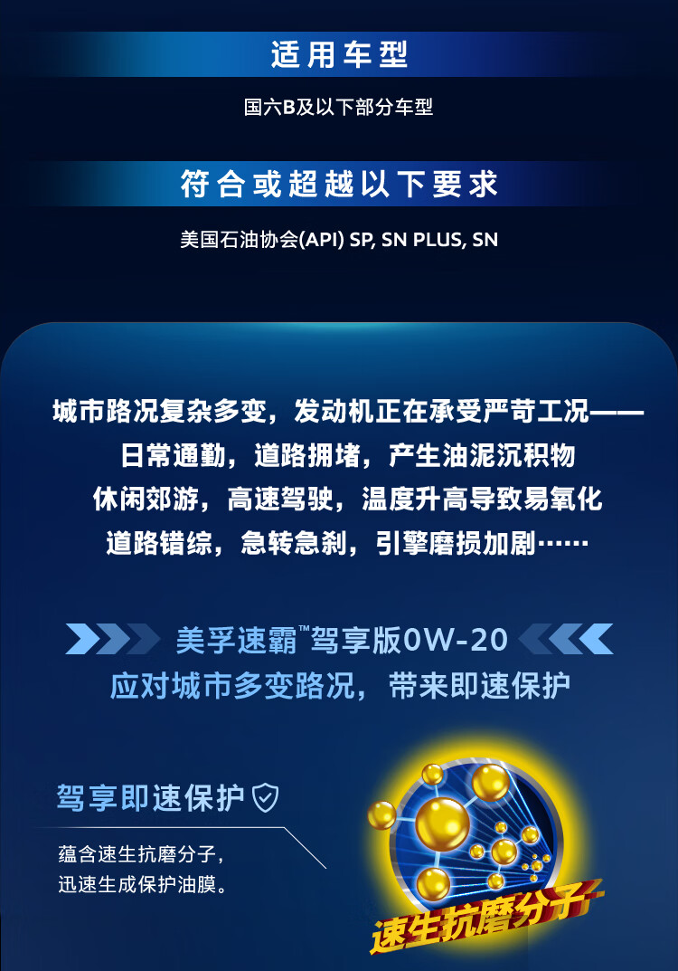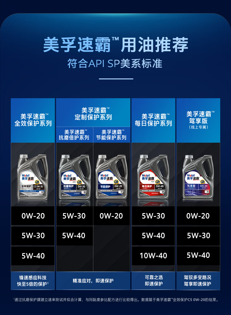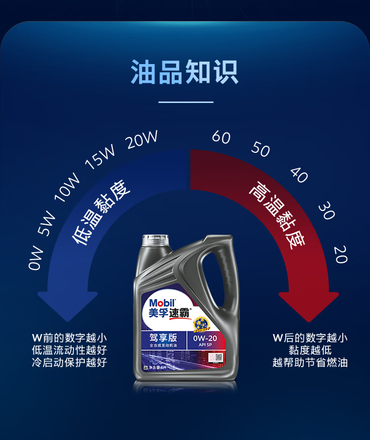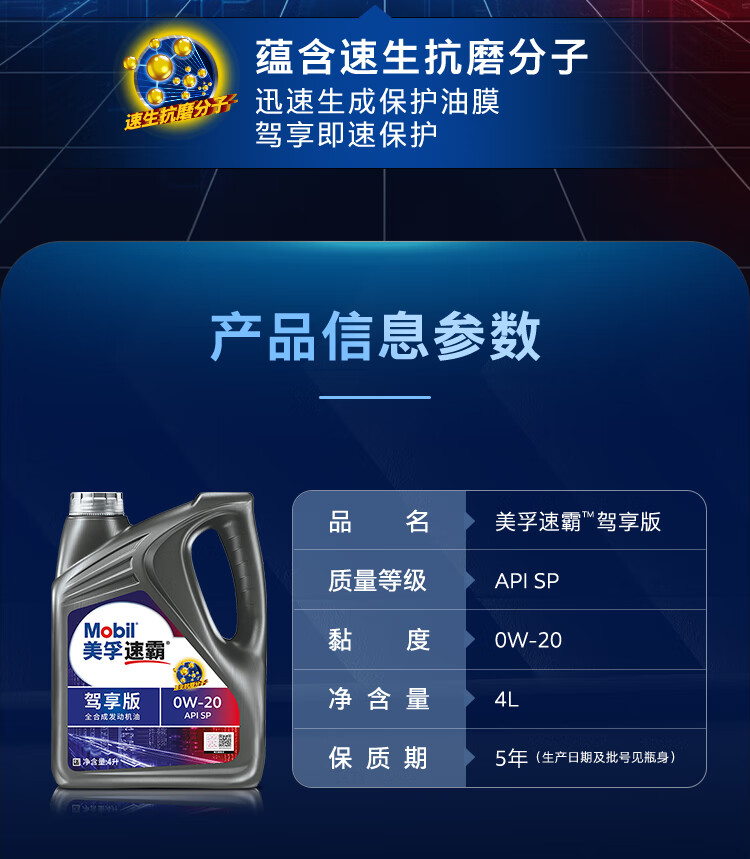 美孚(Mobil)美孚速霸驾享版 (速霸2000升级) 0W-20 SP 4L 线上专属款 汽车保