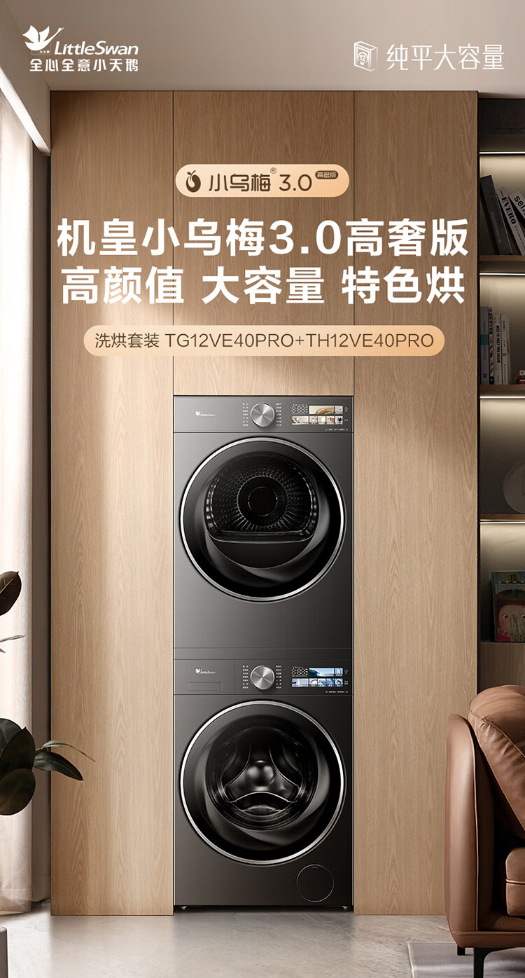 小天鹅(LittleSwan)洗烘套装 12KG滚筒洗衣机全自动+12KG变频热泵烘干机家用【小乌梅3.0高奢】VE40PRO+40PRO国家补贴