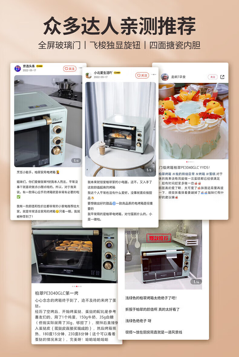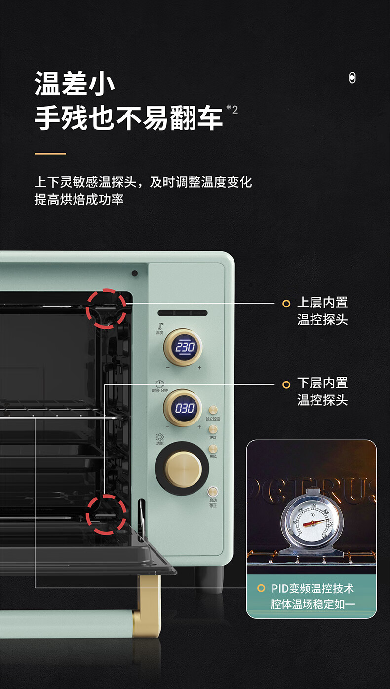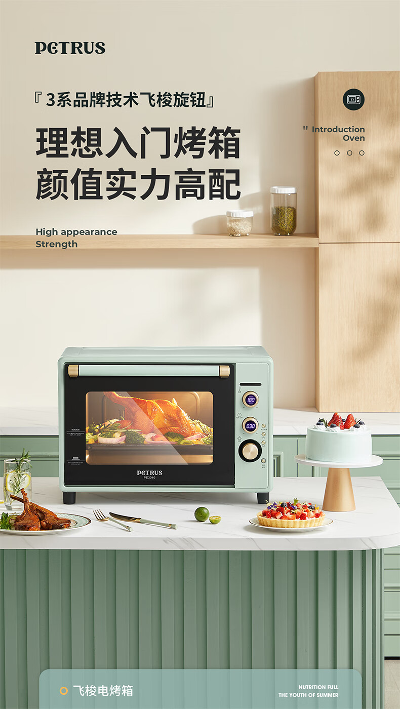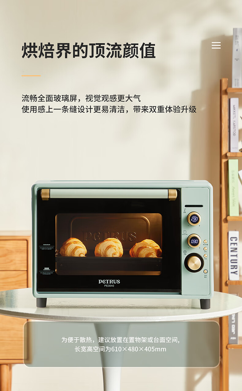 柏翠(petrus) 电烤箱家用40升烘焙多功能全自动搪瓷内胆独立调温智能烘烤 PE3040GL 节日礼物 3040GLC浅绿色 40L ( 咨询有大惊喜 )