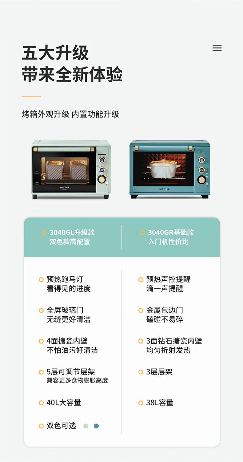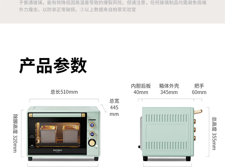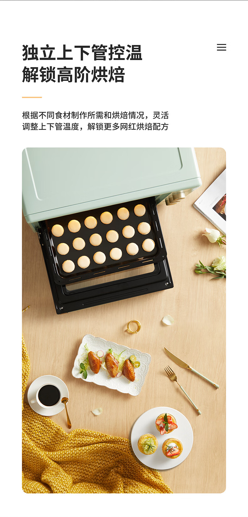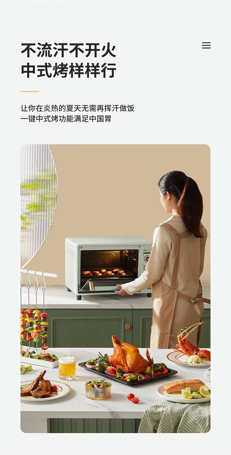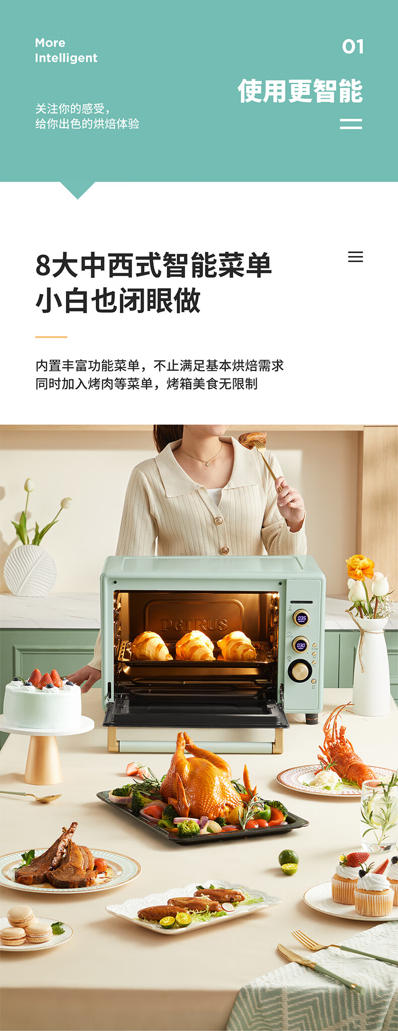 柏翠(petrus) 电烤箱家用40升烘焙多功能全自动搪瓷内胆独立调温智能烘烤 PE3040GL 节日礼物 3040GLC浅绿色 40L ( 咨询有大惊喜 )