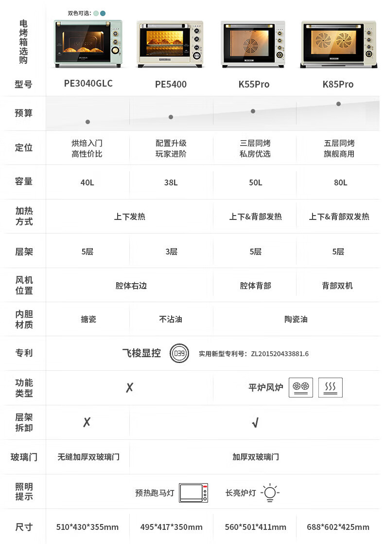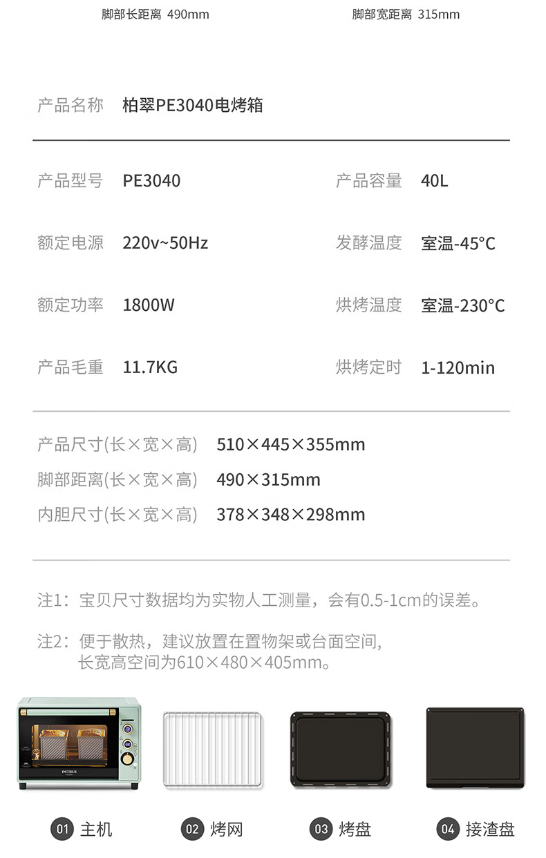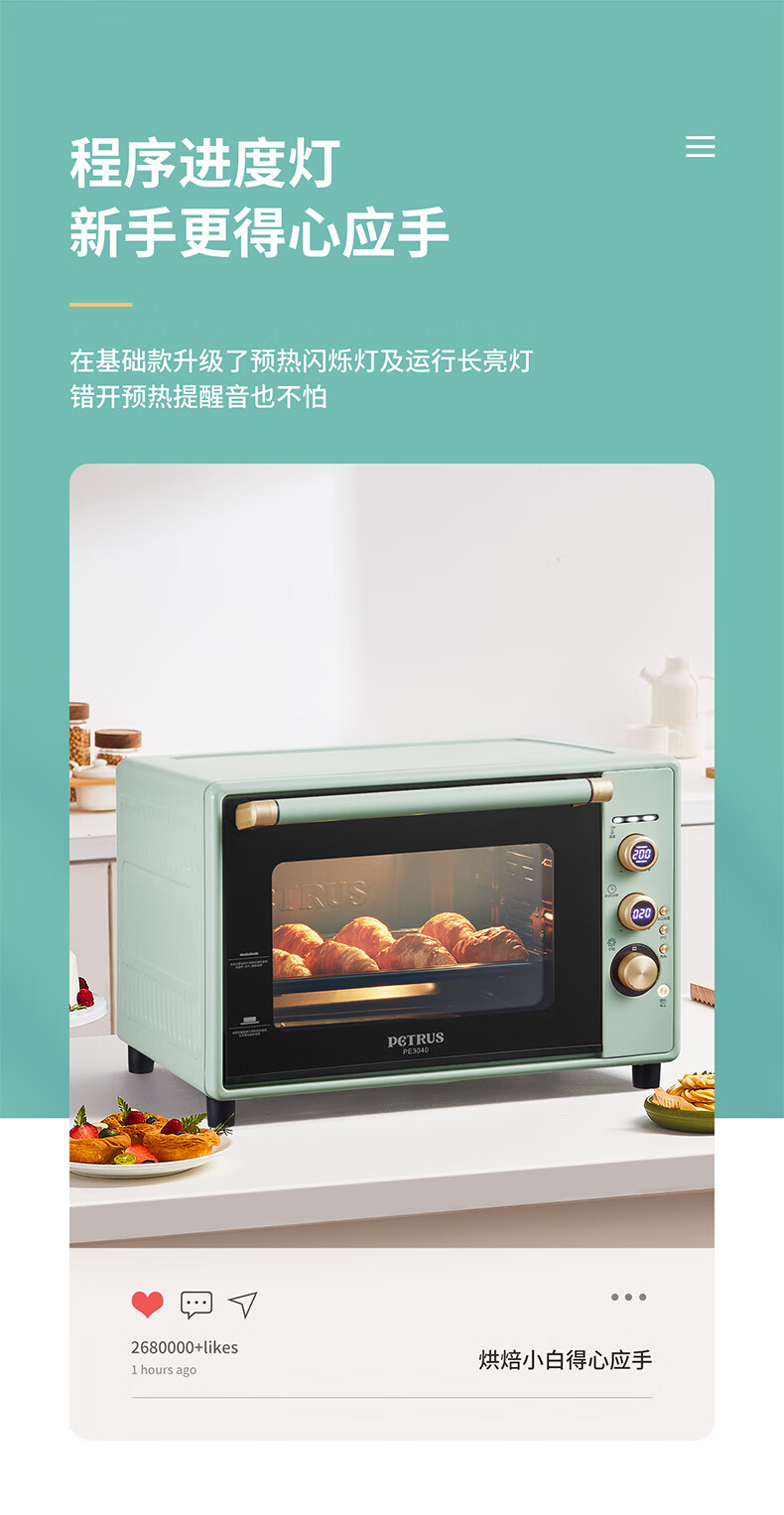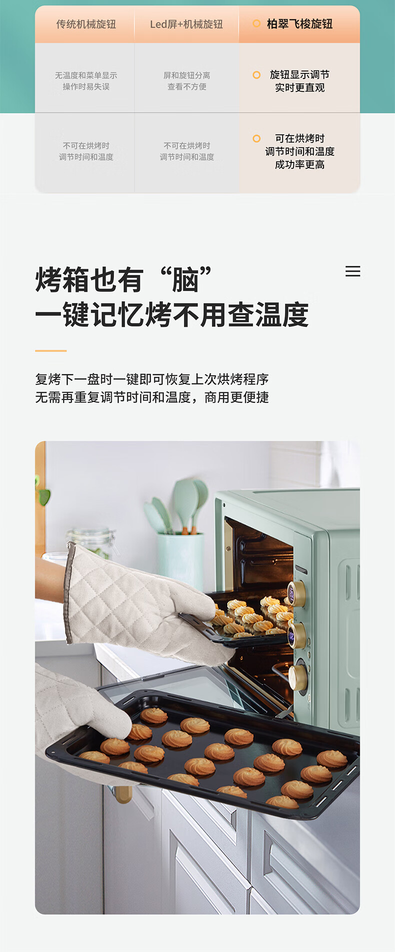柏翠(petrus) 电烤箱家用40升烘焙多功能全自动搪瓷内胆独立调温智能烘烤 PE3040GL 节日礼物 3040GLC浅绿色 40L ( 咨询有大惊喜 )
