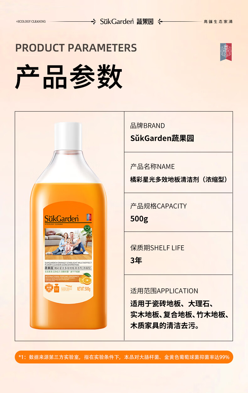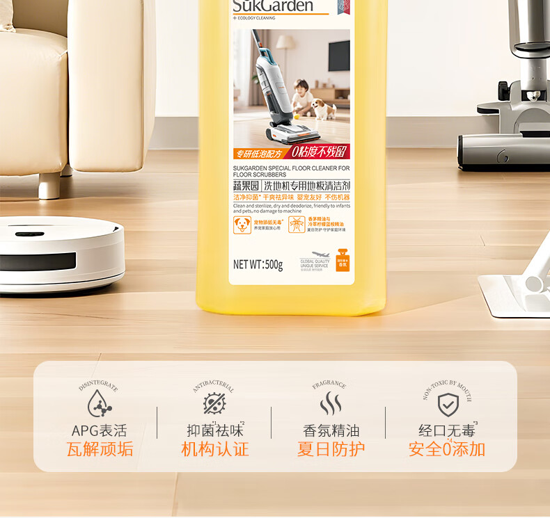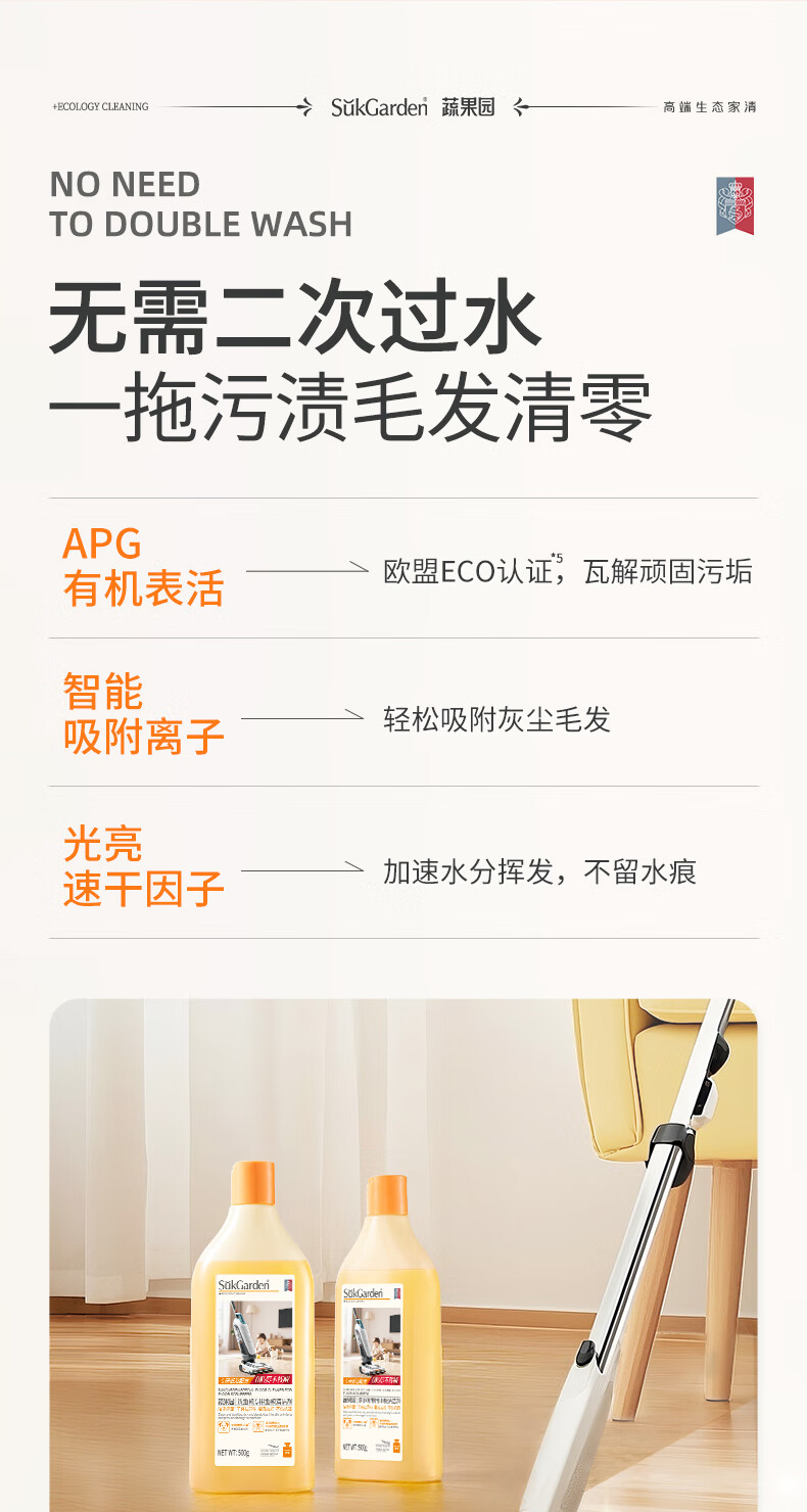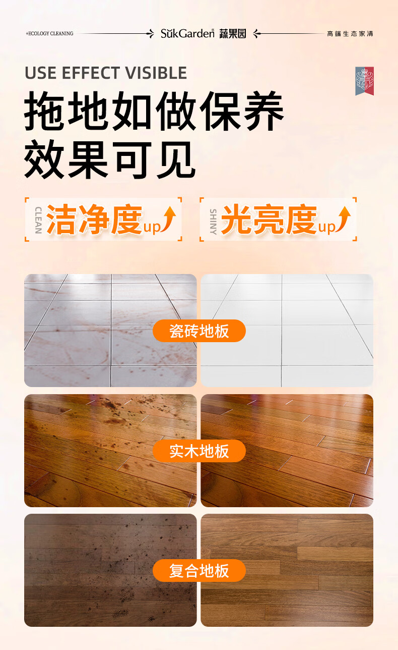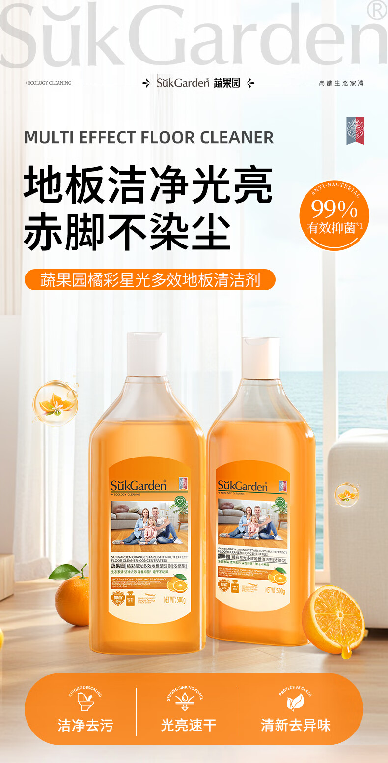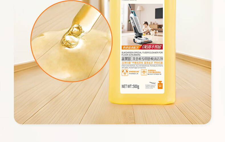蔬果园多效地板清洁剂 拖地清洁剂强力去污抑菌速干 瓷砖地砖木板清洁剂 【实惠装】地板清洁剂500g*3瓶