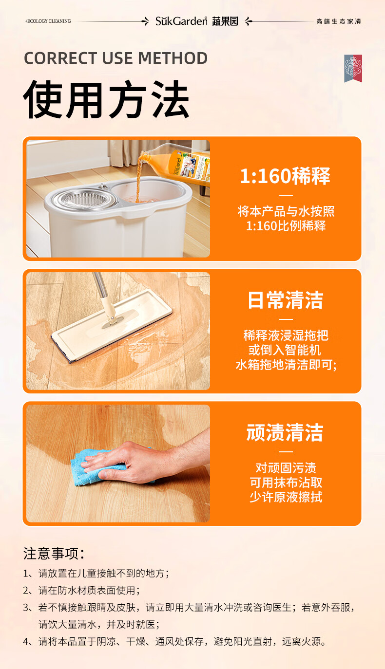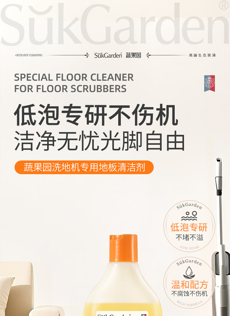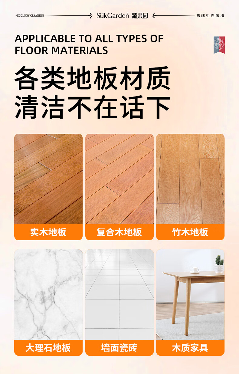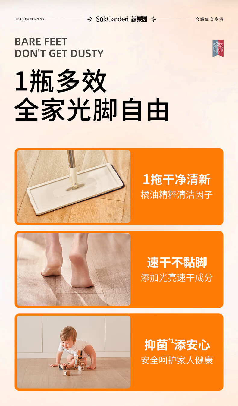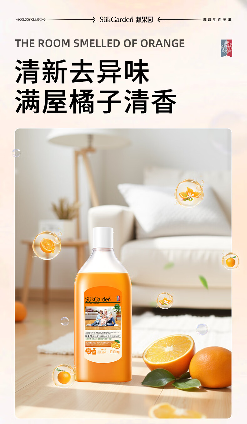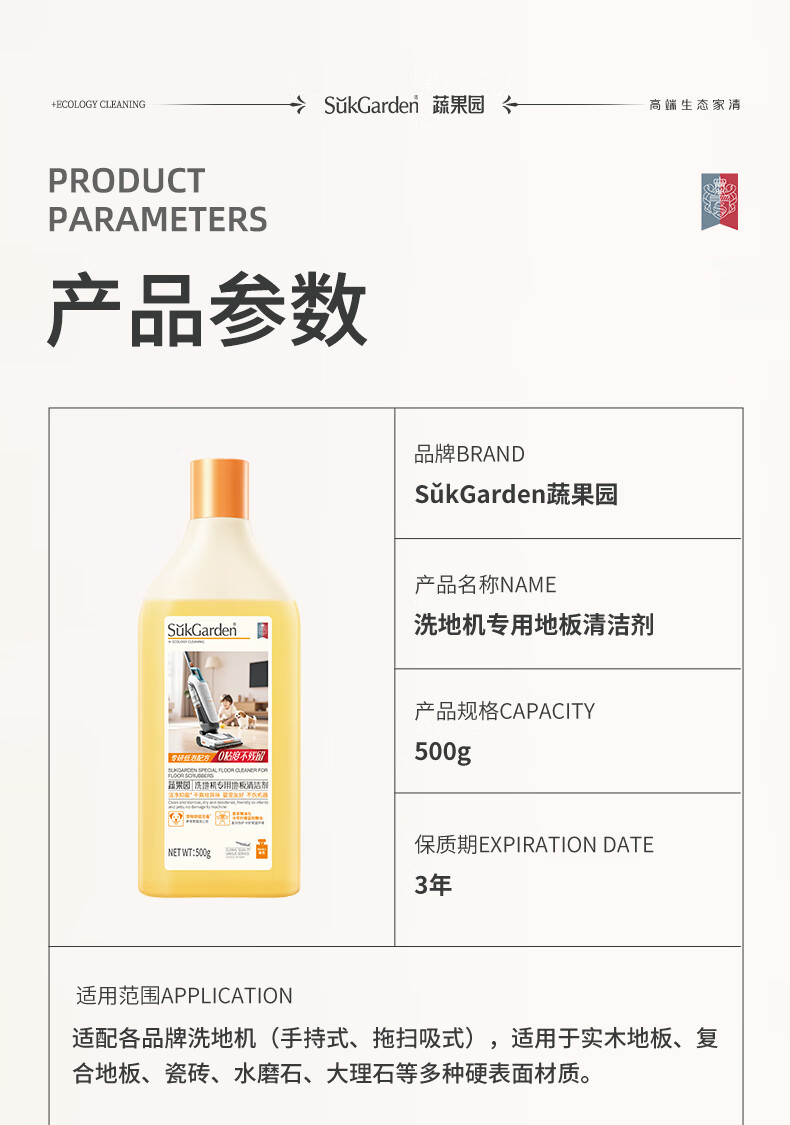 蔬果园多效地板清洁剂 拖地清洁剂强力去污抑菌速干 瓷砖地砖木板清洁剂 【实惠装】地板清洁剂500g*3瓶