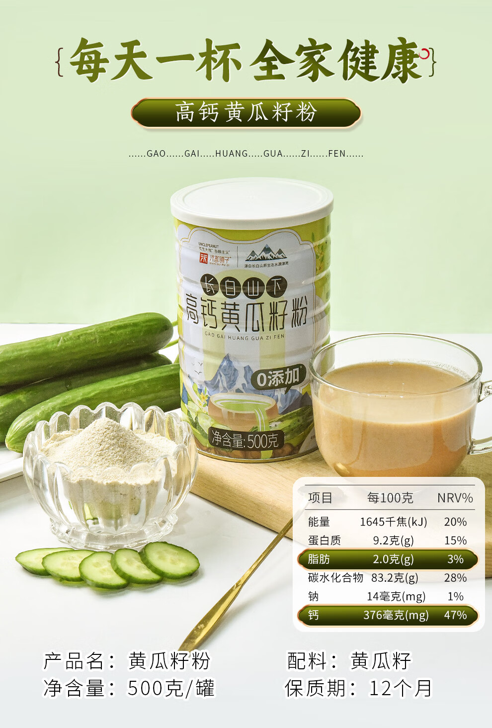 汴都铺子黄瓜籽粉京高钙东中老年壮骨自即食营早餐骨折补钙营养代餐纯原粉 黄瓜籽粉500g*1罐