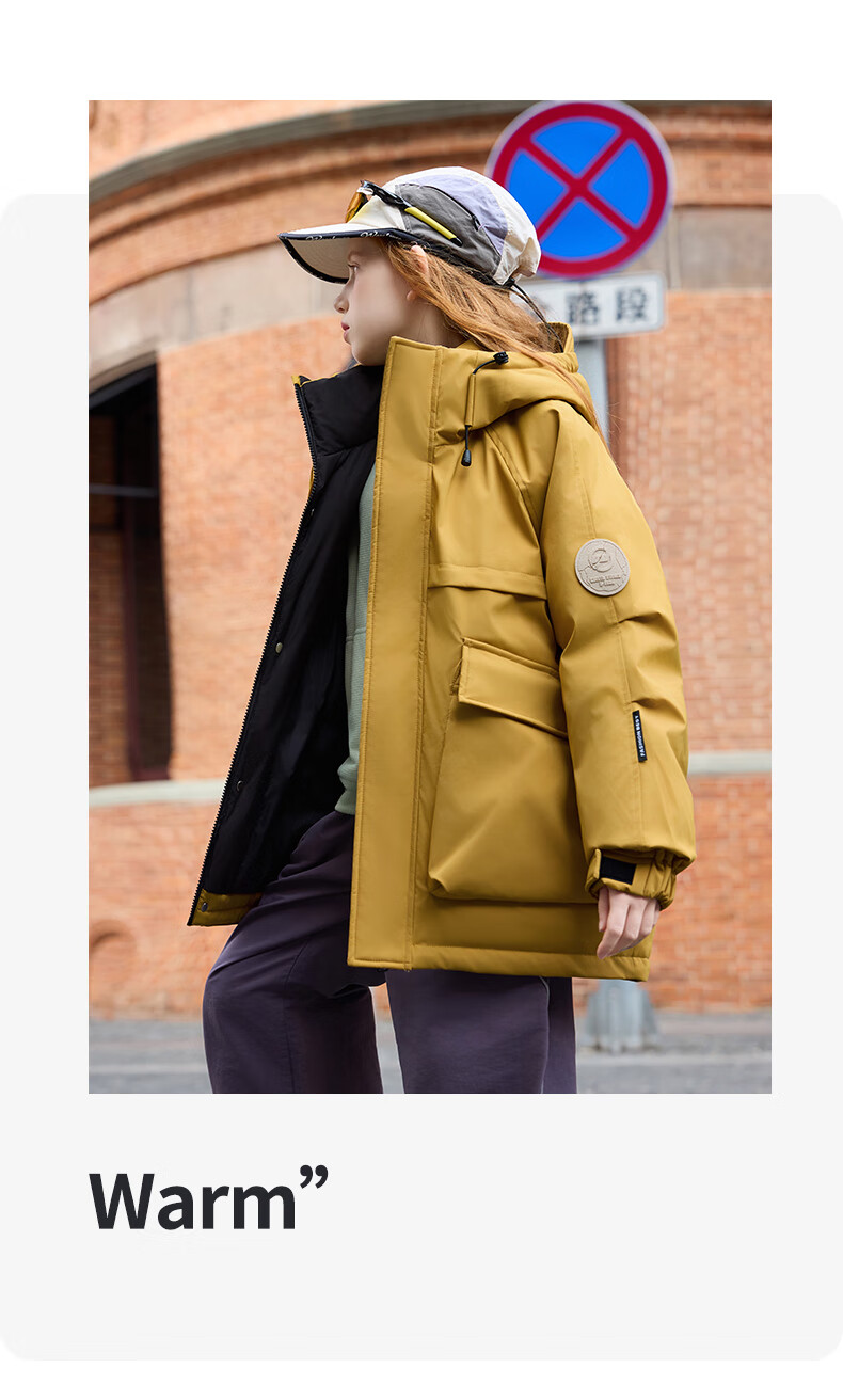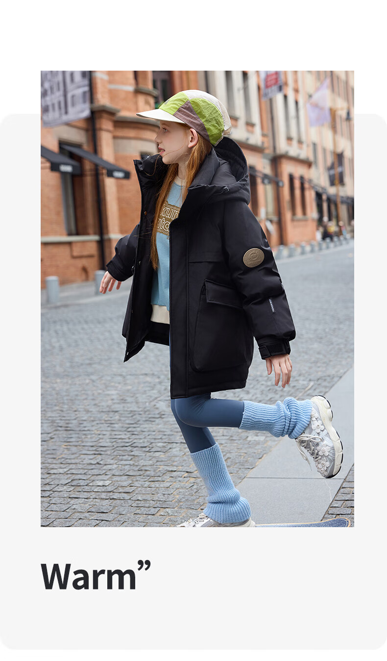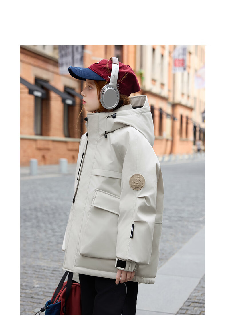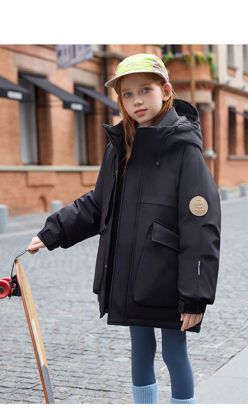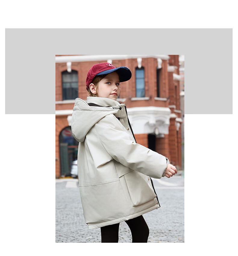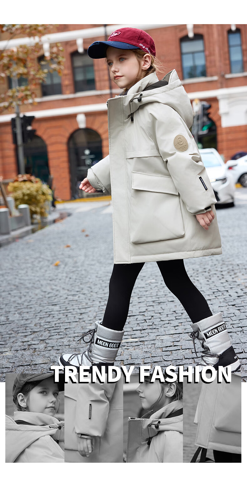 ABC KAIA儿童羽绒服男童中大童中长款白鸭绒2025新款女童加厚洋气冬装外套 川月白(女童) 120