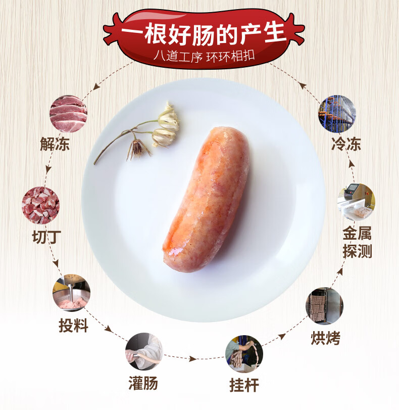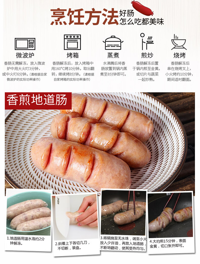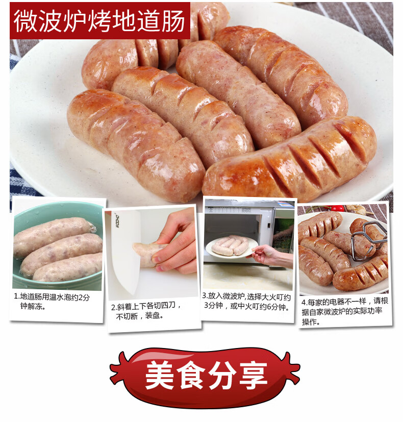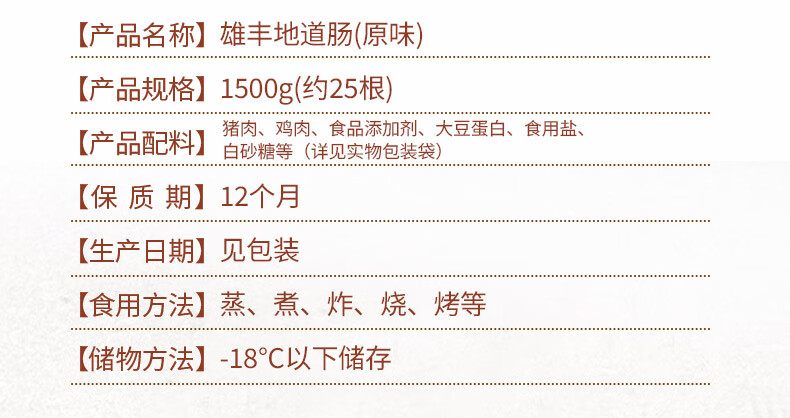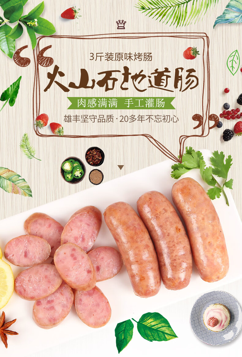 雄丰原味火山石烤肠(3斤/袋)热狗香肠猪肉台式早餐食品肠烧烤批发