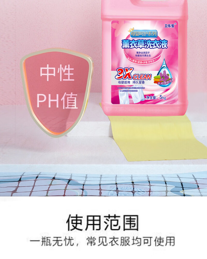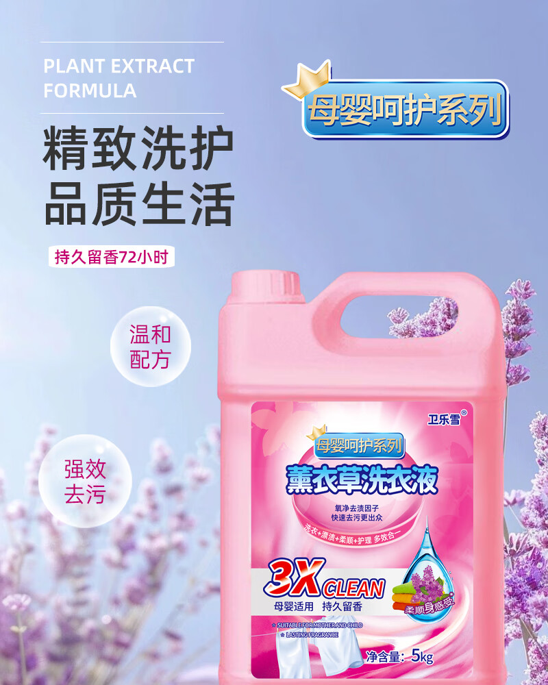 卫乐雪商超款洗衣液10斤薰衣草香味洗衣液去污抑菌深层护色 桶装10斤母婴净渍装